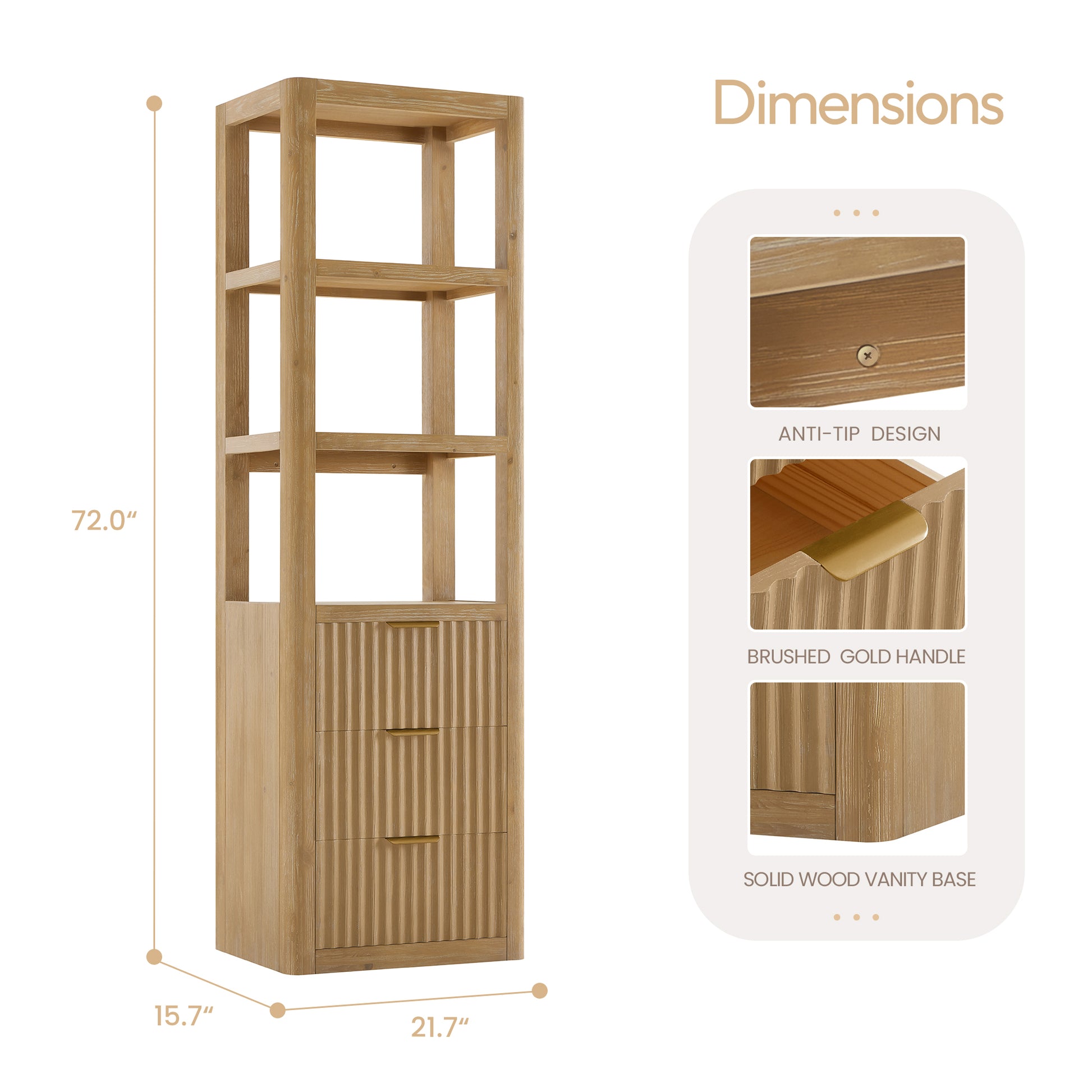 Vinnova, Cádiz 22in. Grey Storage Cabinet with 3 Drawers 3 Shelves for Bathroom and Living Room