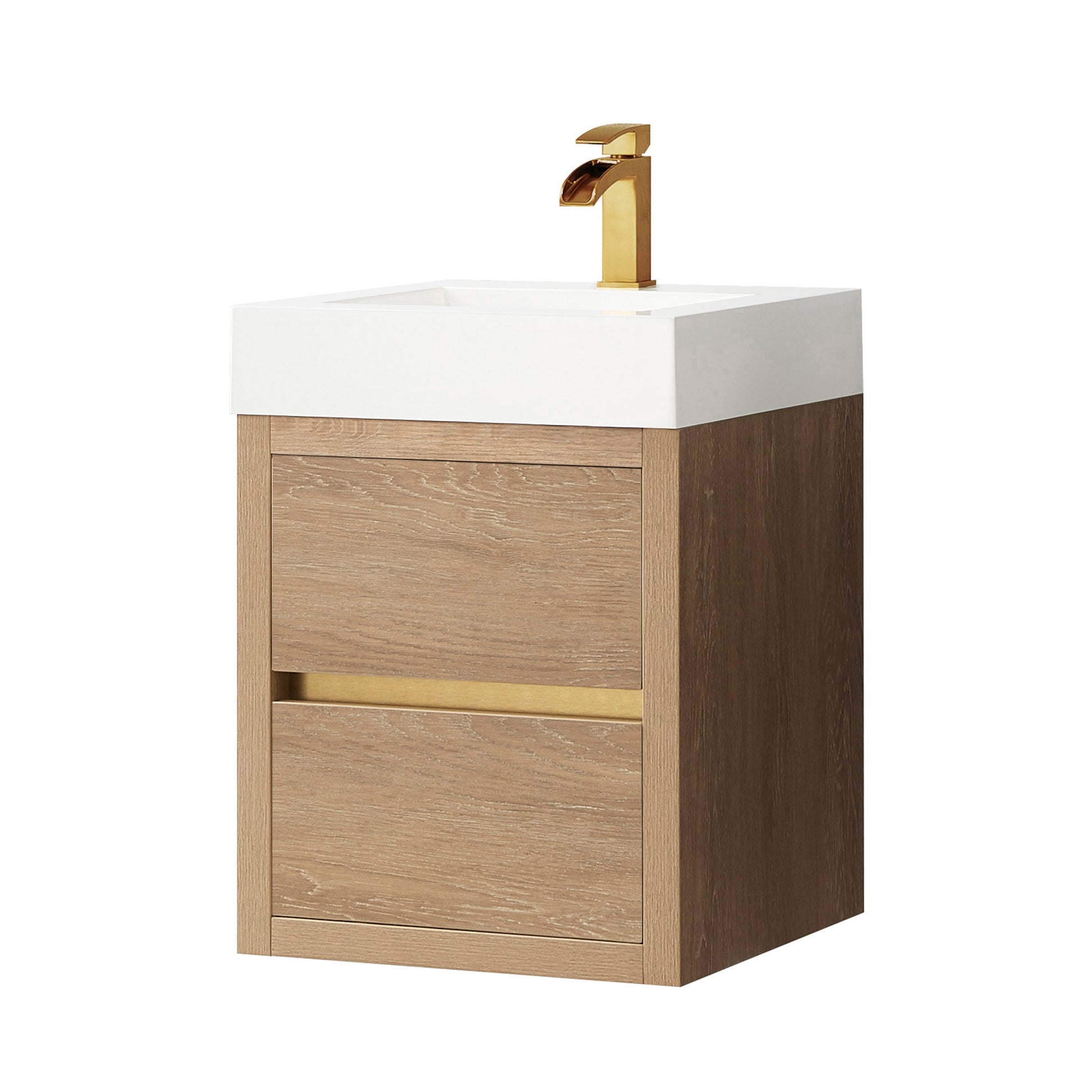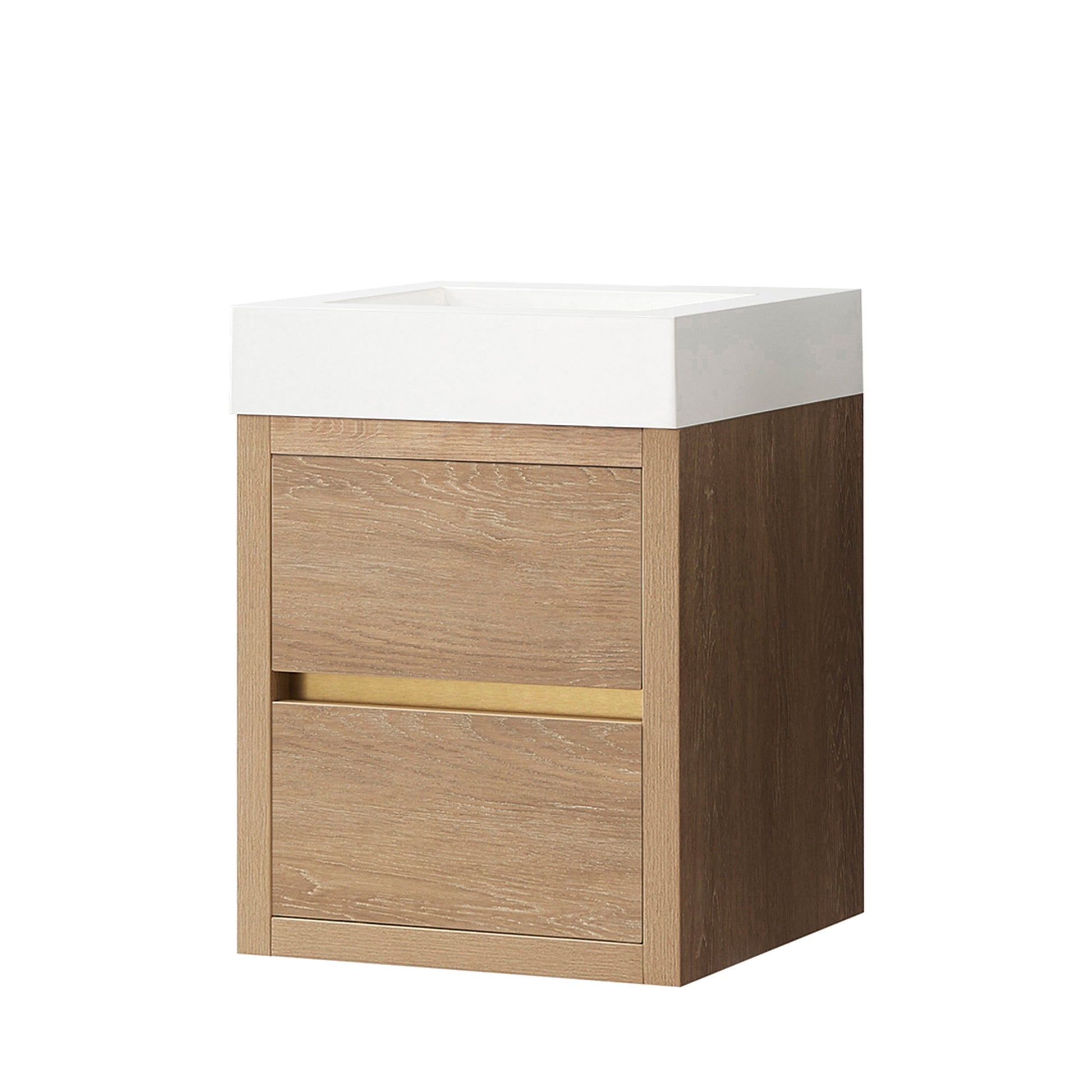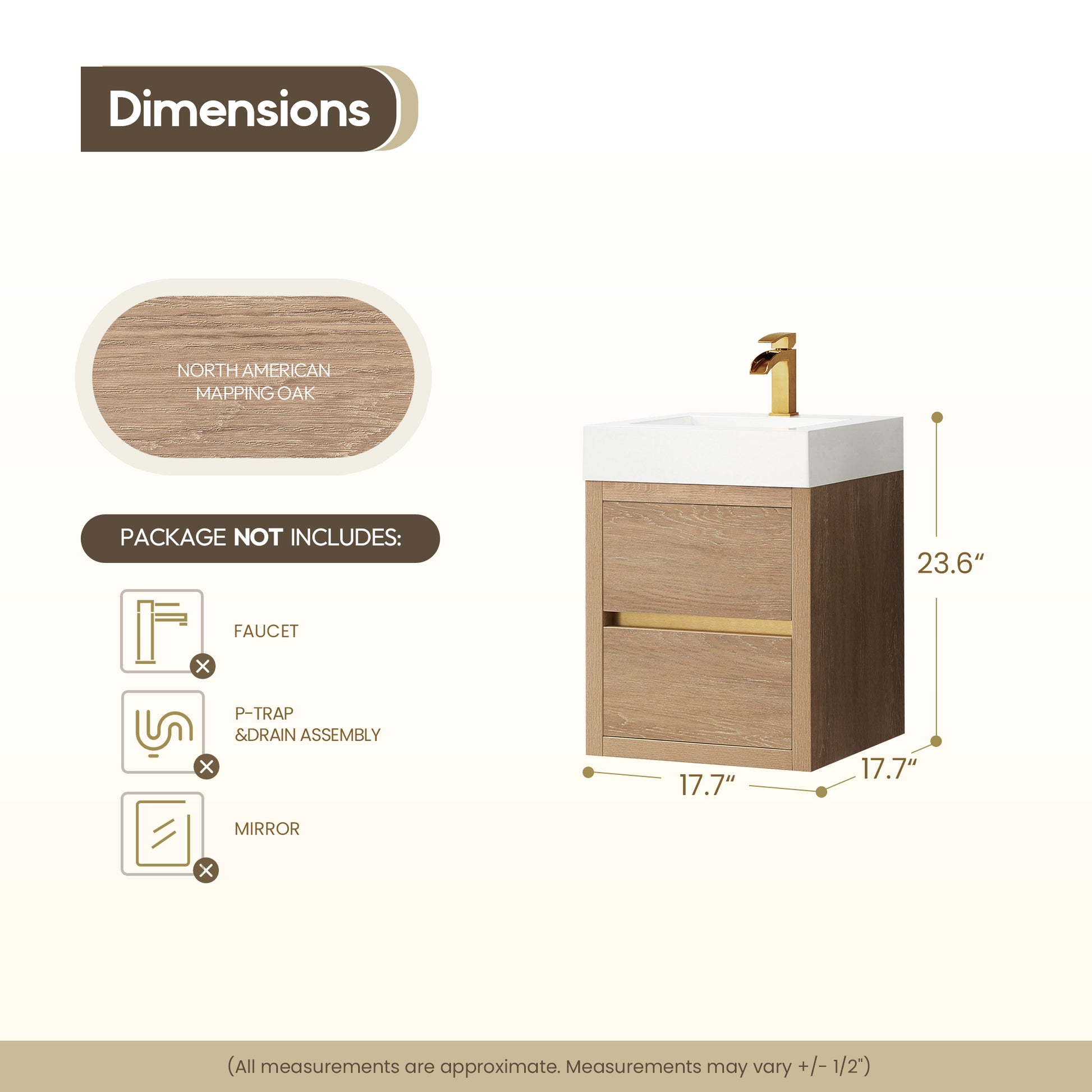 Vinnova, Palencia 18" Single Sink Wall-Mount Bath Vanity in North American Oak with White Composite Integral Square Sink Top