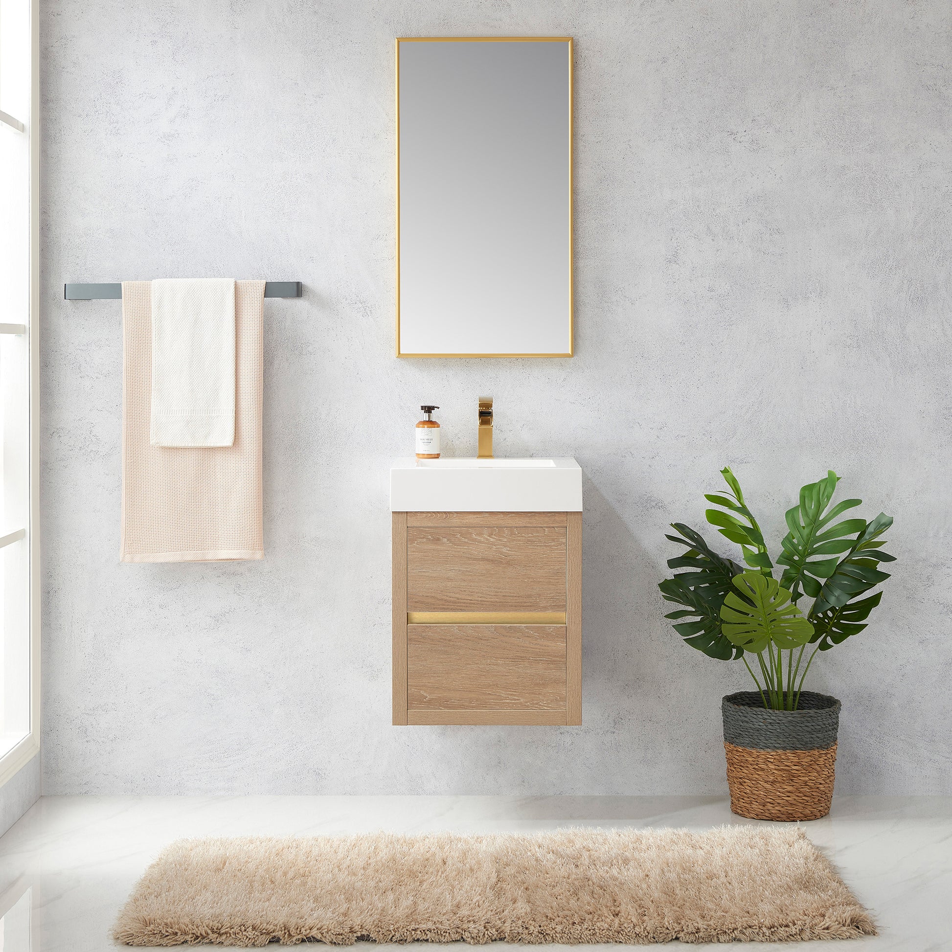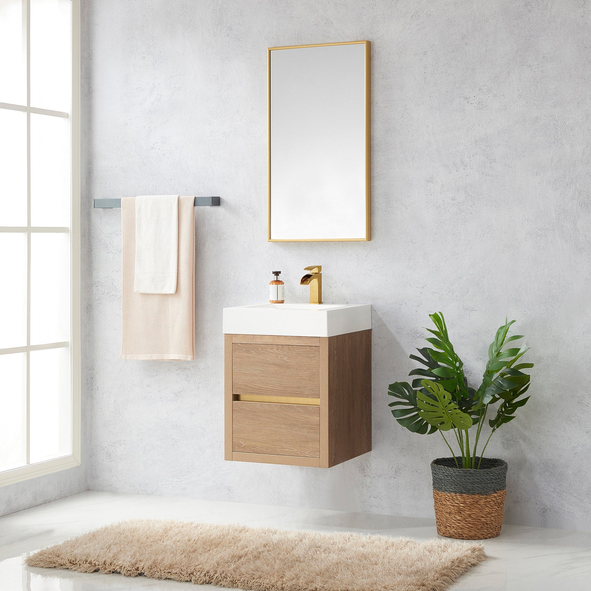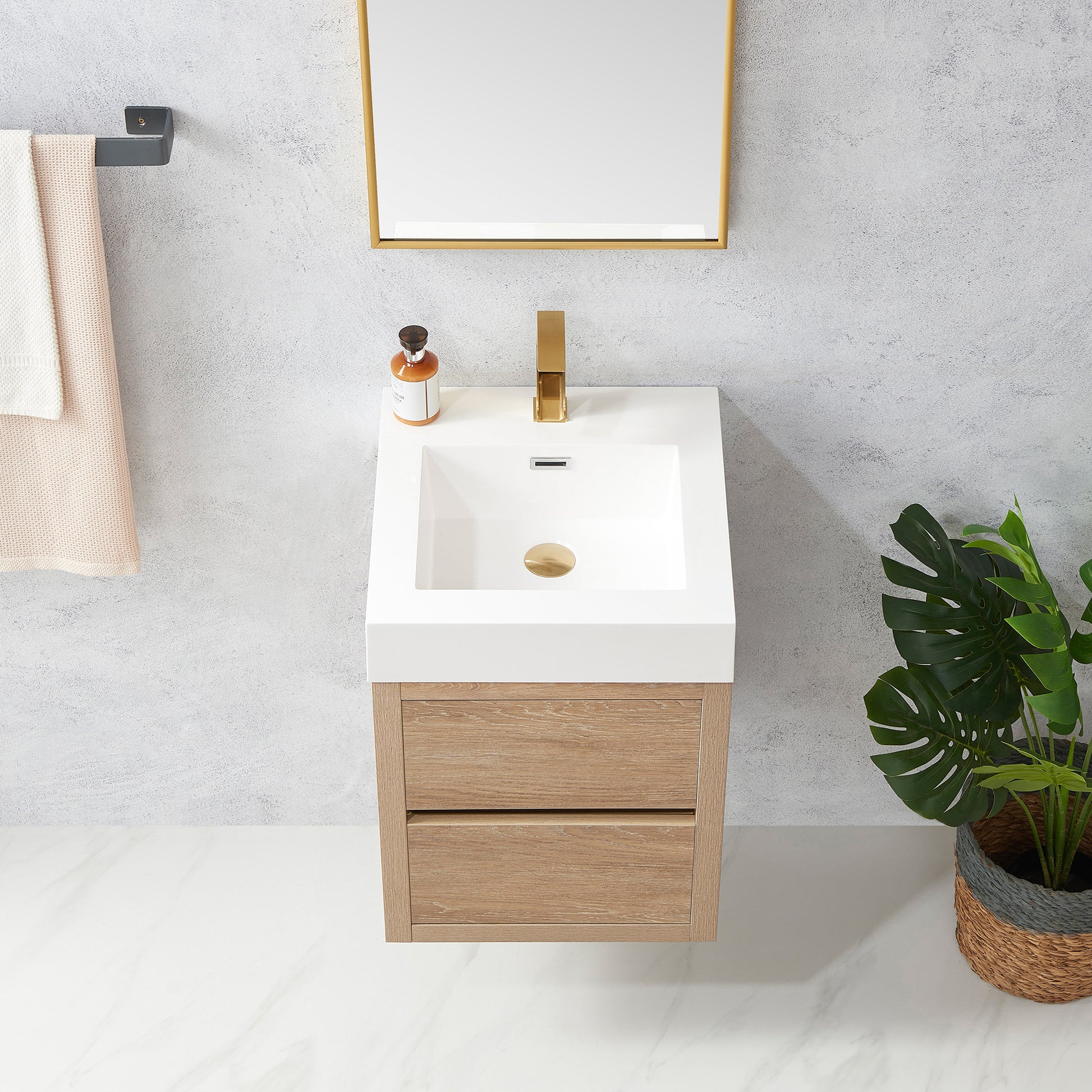 Vinnova, Palencia 18" Single Sink Wall-Mount Bath Vanity in North American Oak with White Composite Integral Square Sink Top