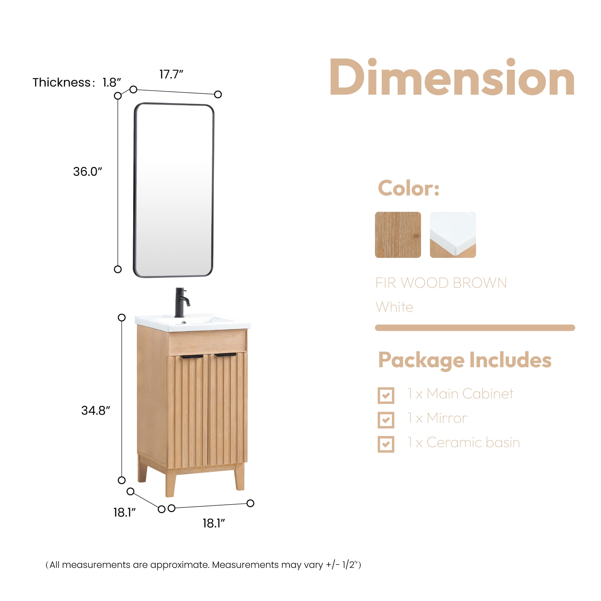 Upgrade your bathroom with the Palos 18 Free-standing Single Bath Vanity in Fir Wood Brown with Drop-In White Ceramic Basin Top and Mirror today!