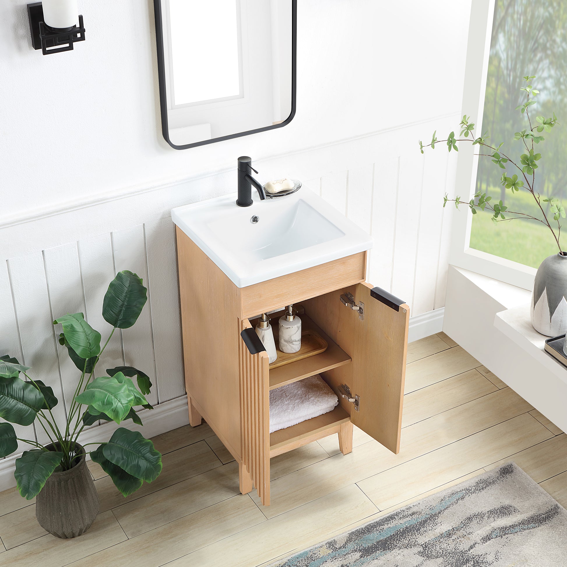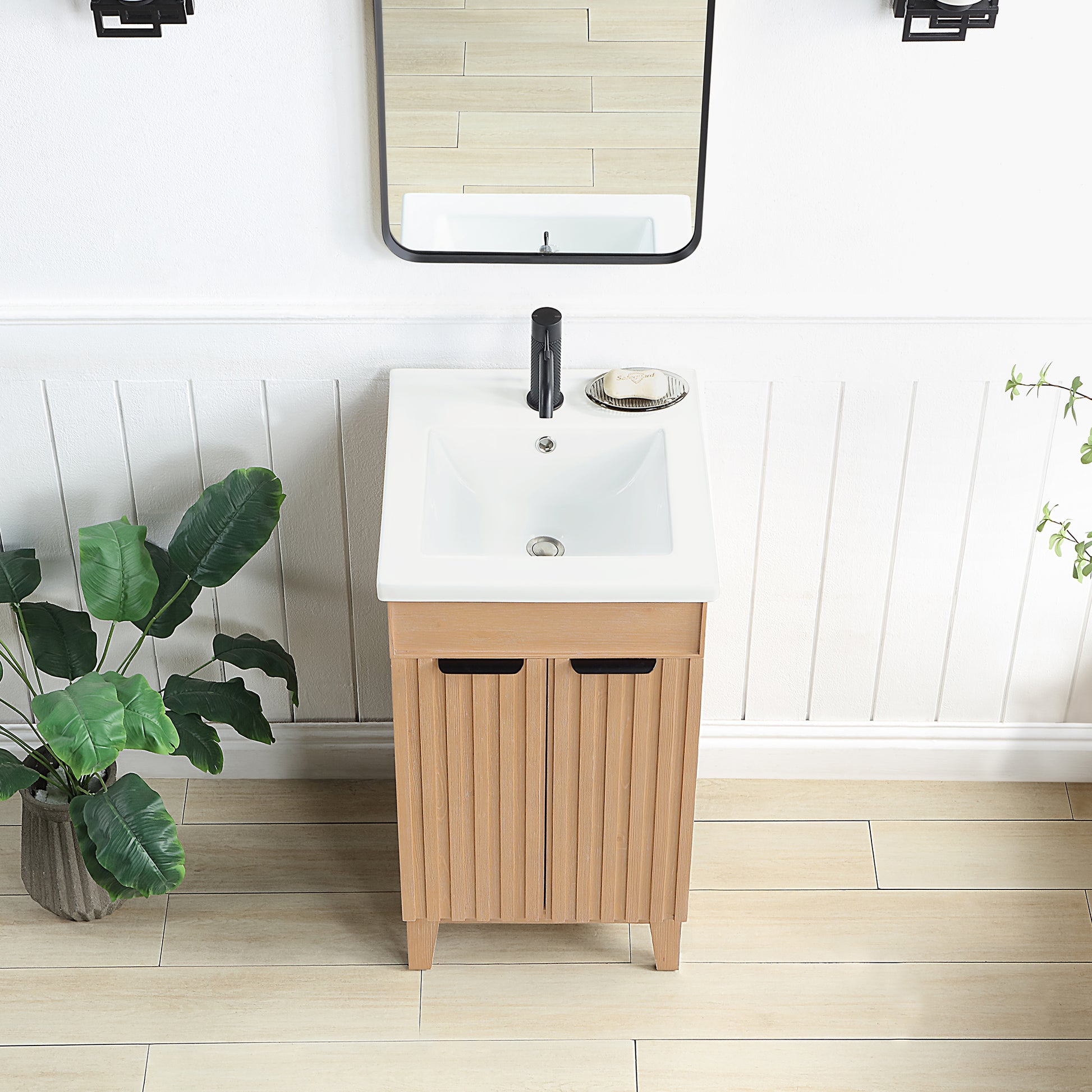 Vinnova, Palos 18" Free-standing Single Bath Vanity in Fir Wood Brown with Drop-In White Ceramic Basin Top and Mirror