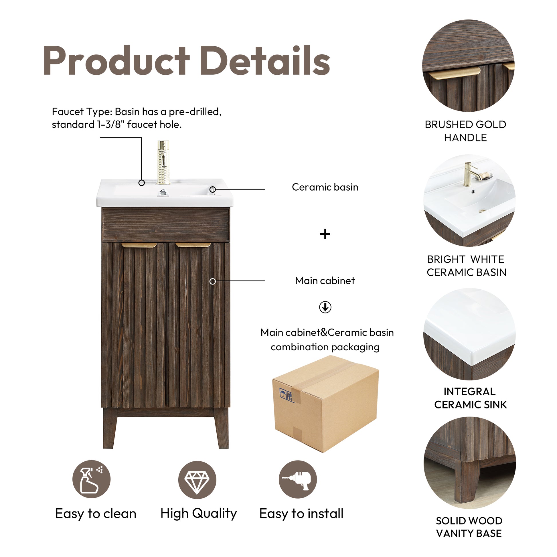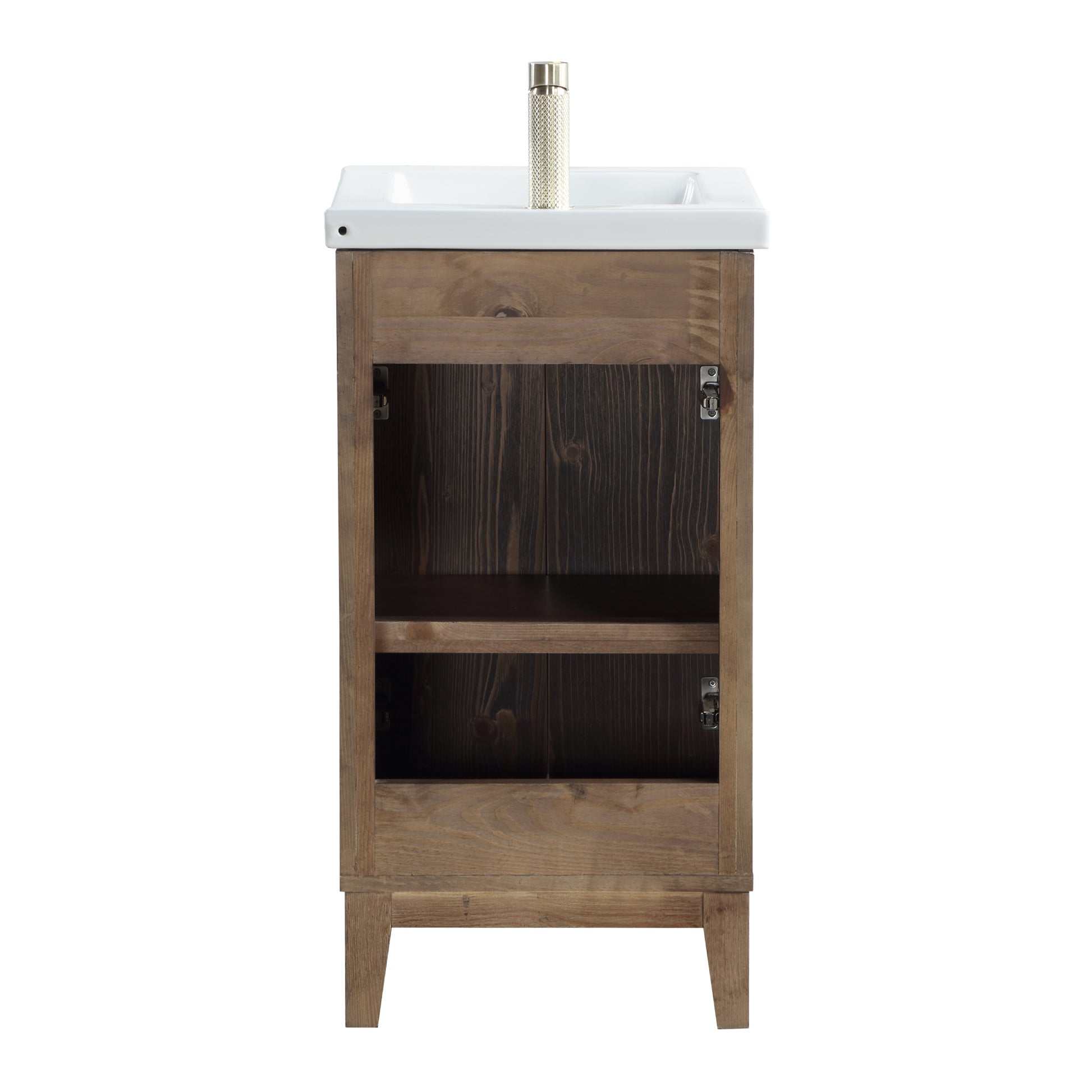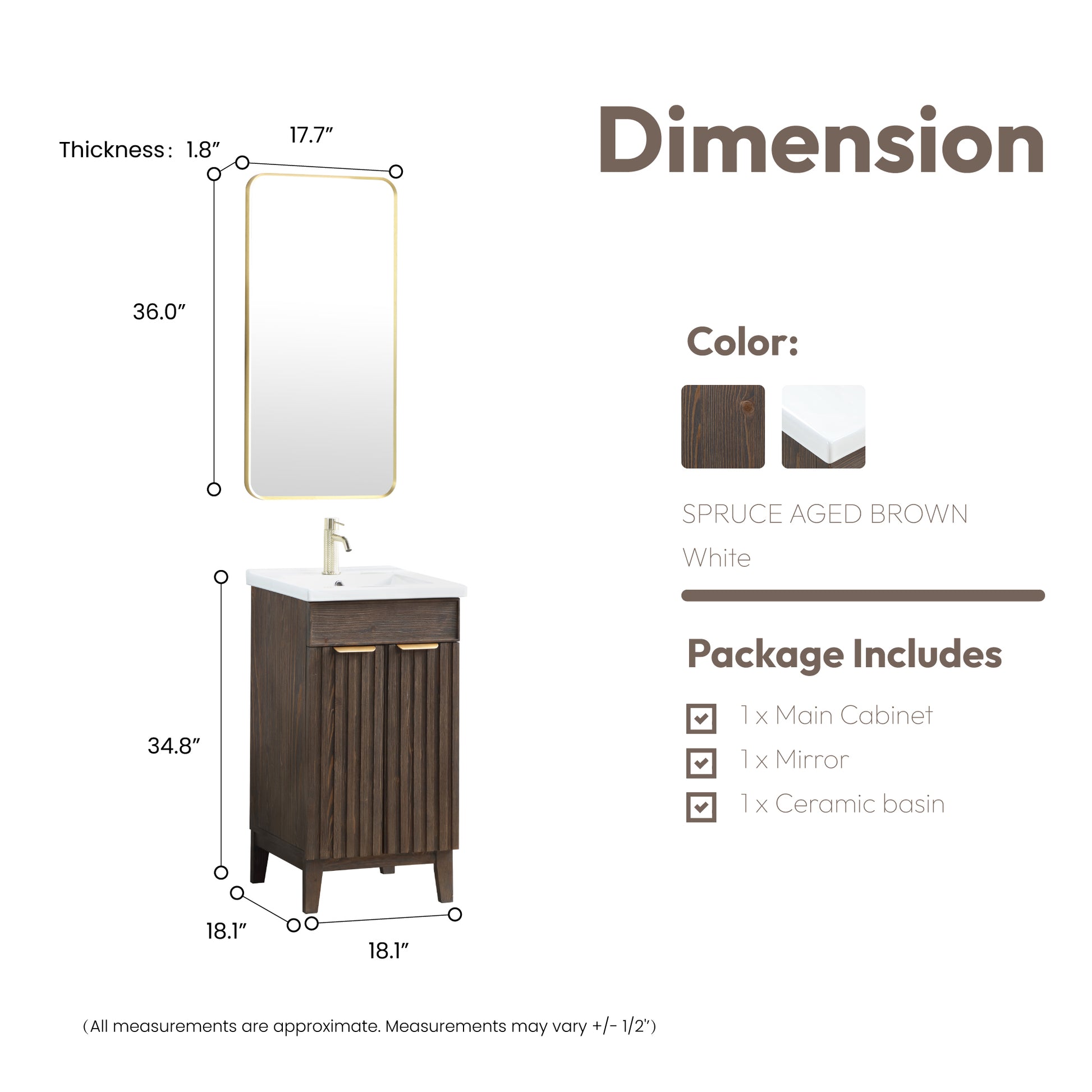 Transform your bathroom with the Palos 18 Free-standing Single Bath Vanity in Spruce Aged Brown with Drop-In White Ceramic Basin Top and Mirror today!