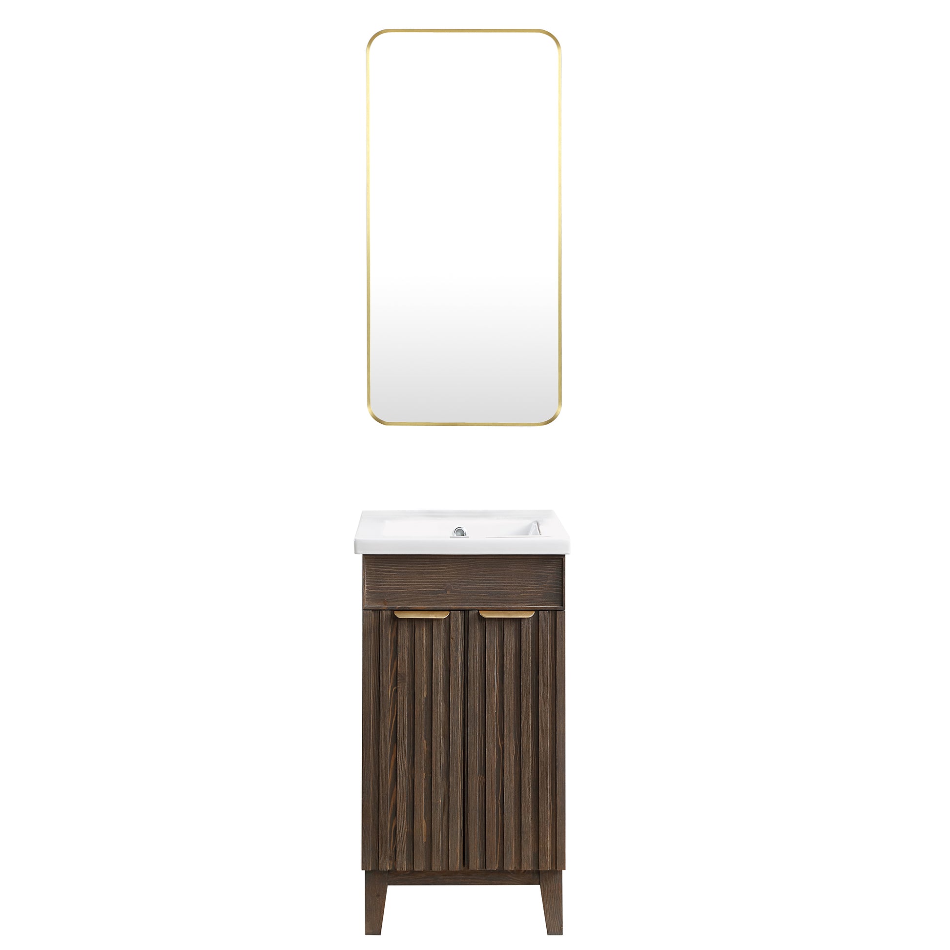 Vinnova, Palos 18" Free-standing Single Bath Vanity in Spruce Aged Brown with Drop-In White Ceramic Basin Top and Mirror