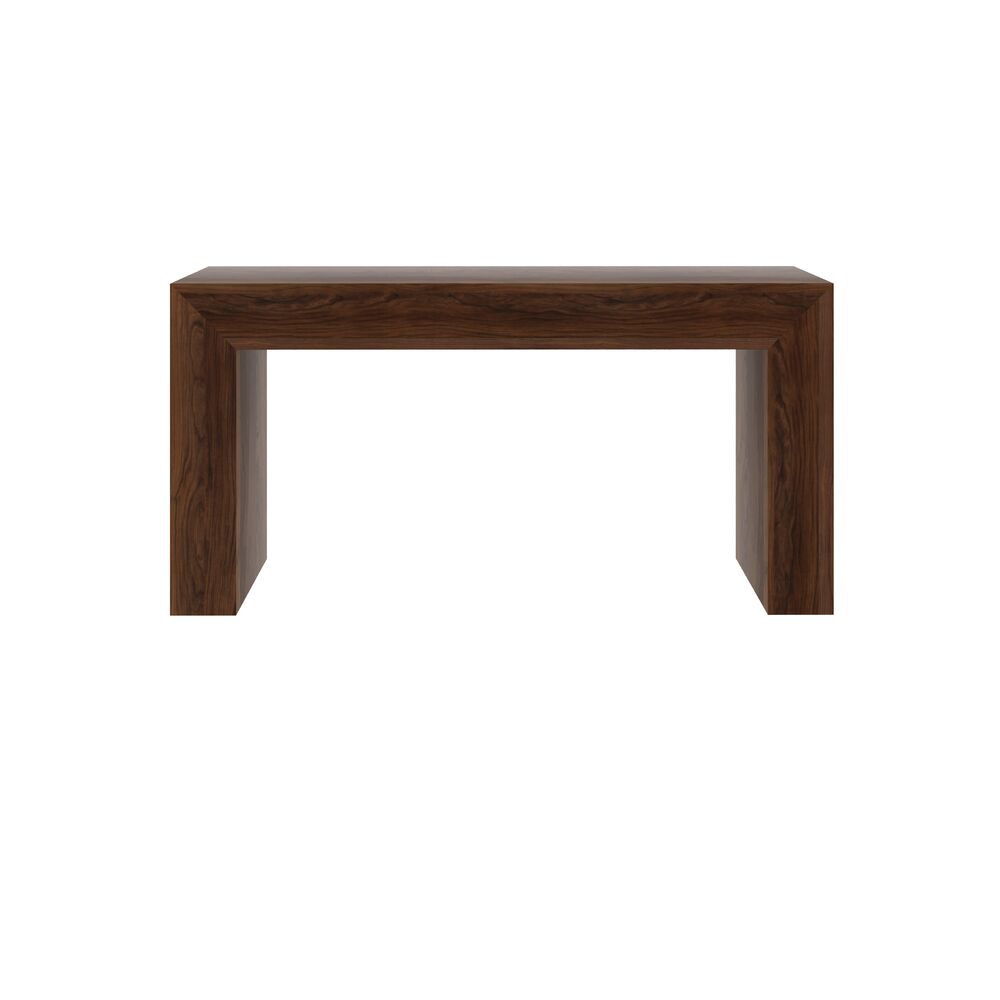 Embrace minimalist design with the Bridgeway Console Table. Meticulously crafted with miter joints, the wood's natural grain flows seamlessly from the tabletop down each side, creating a stunning waterfall effect. Supported by 6" thick legs, this console embodies refined simplicity. Available in American White Oak or Black Walnut and three sizes.