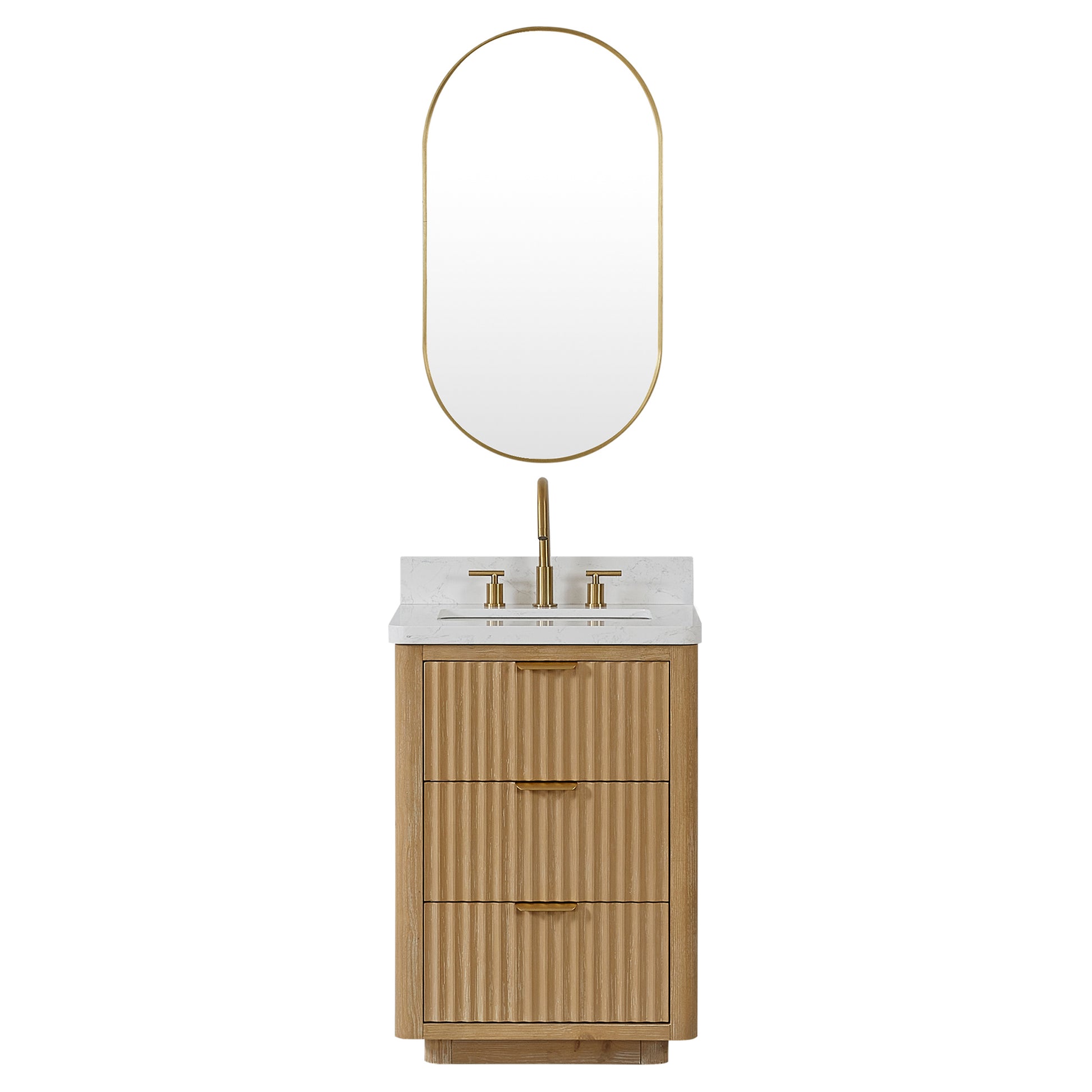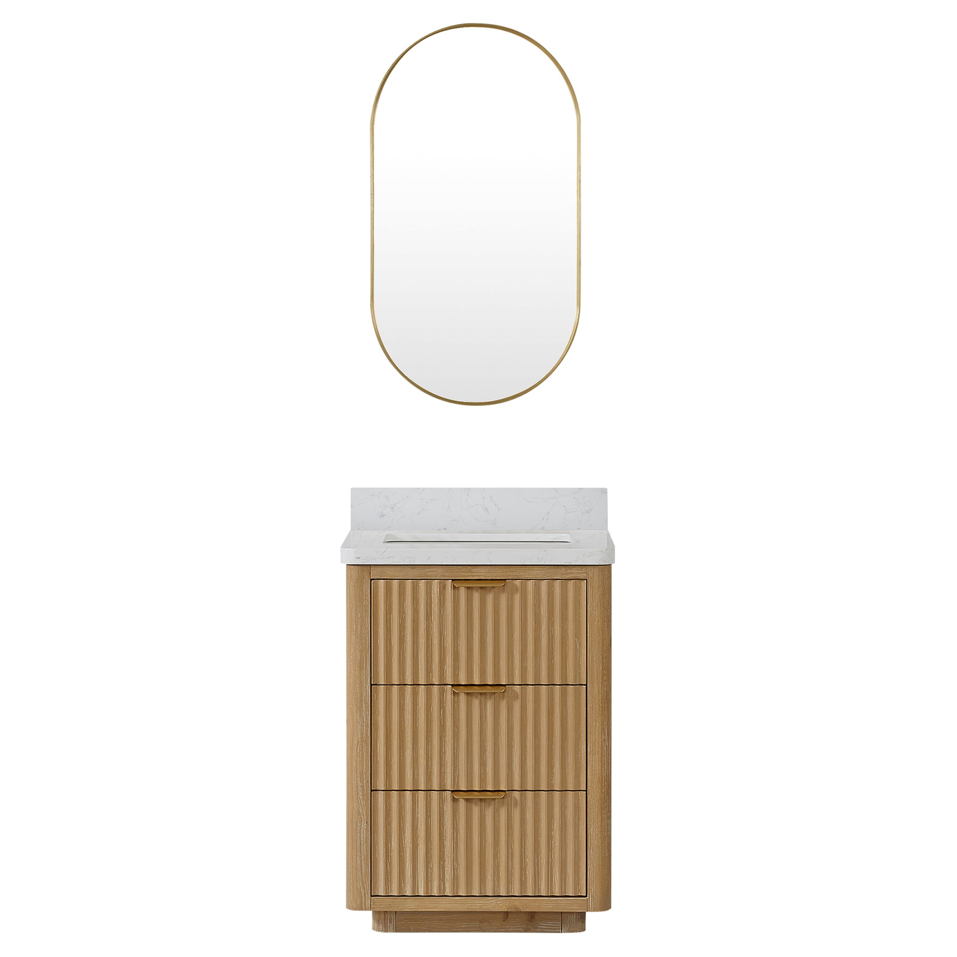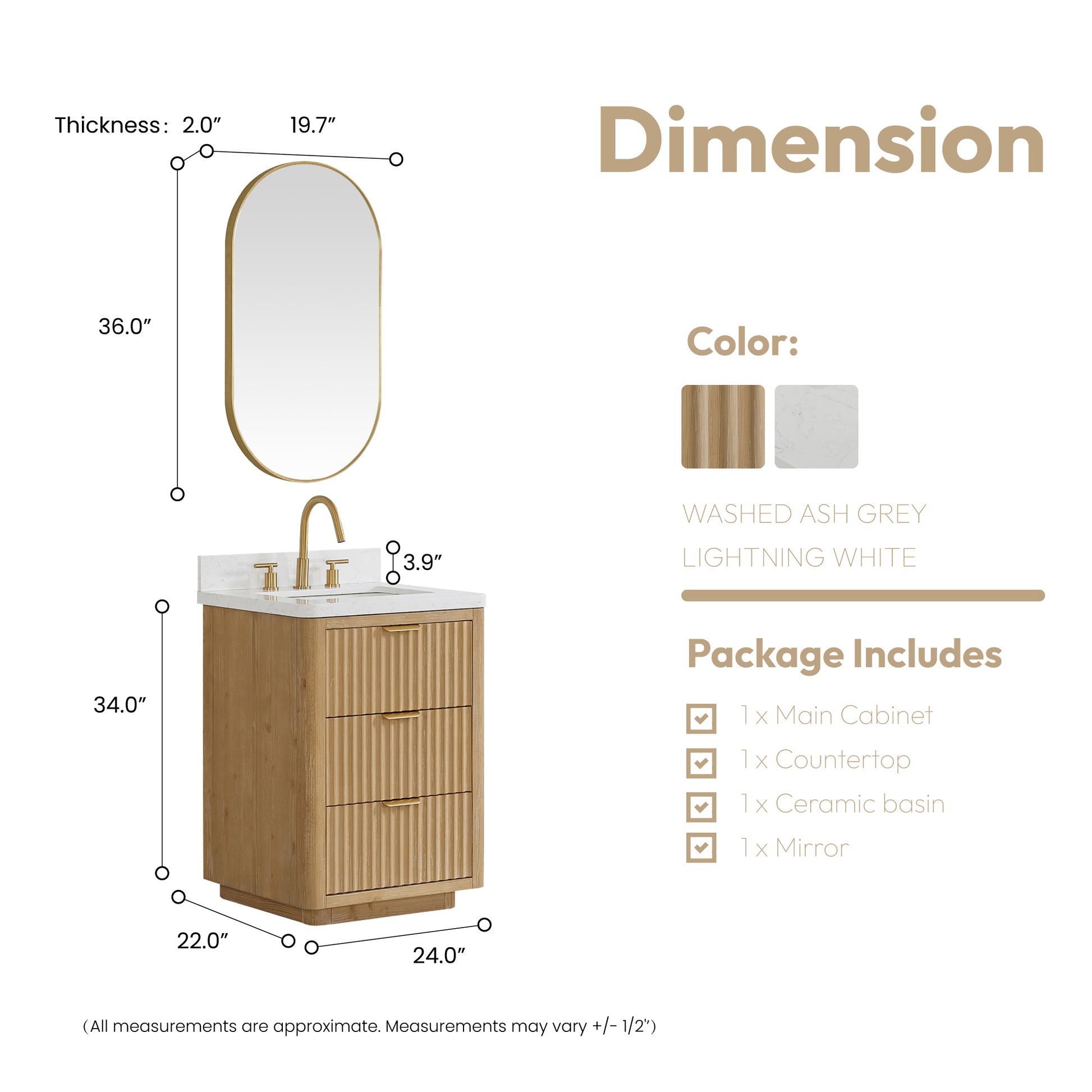 Vinnova, Cádiz 24in. Free-standing Single Bathroom Vanity in Washed Ash Grey with Composite top in Lightning White and Mirror