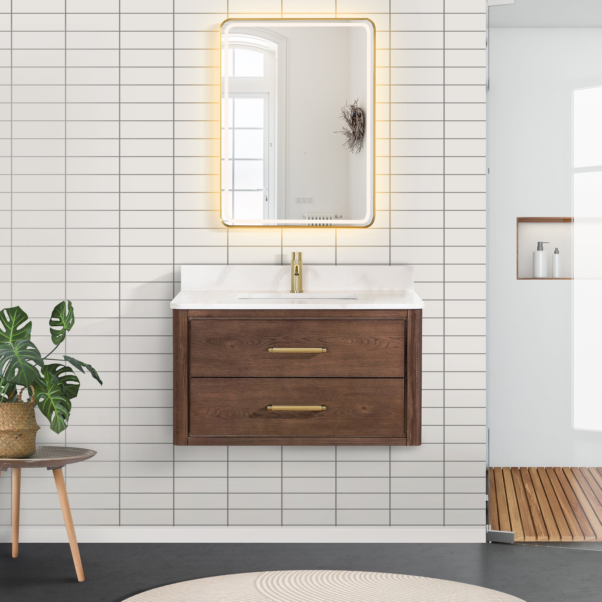- Ample storage space with a single vanity drawer for organization