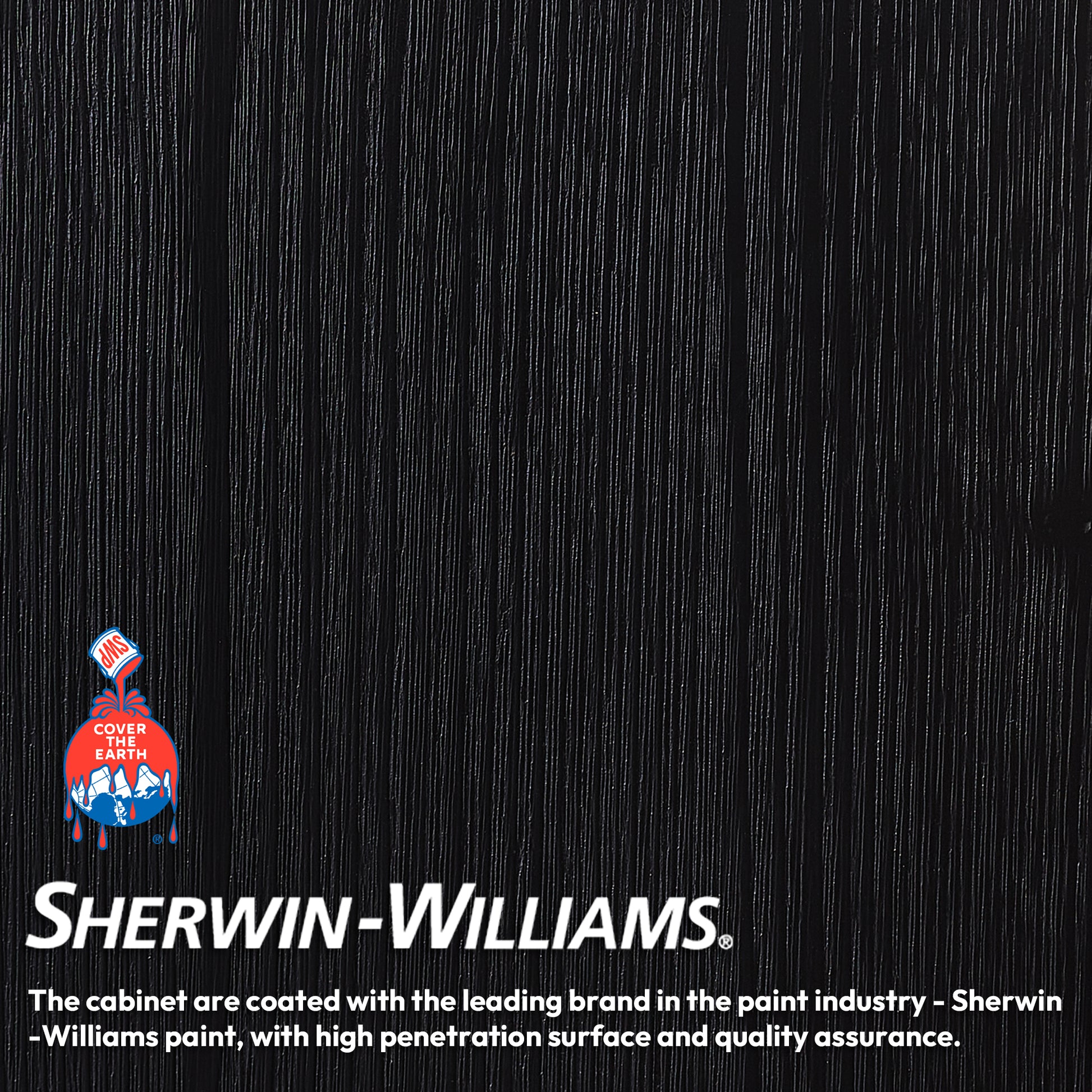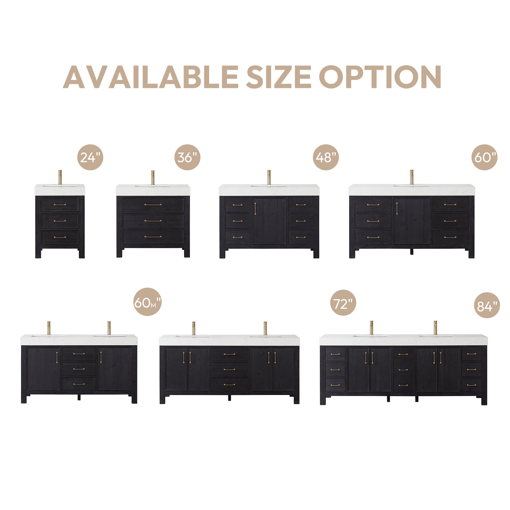 Revamp your bathroom with this stunning León 36in. Free-standing Single Bathroom Vanity in Fir Wood Black with Composite top in Lightning White. Its sleek design and high-quality materials make it a stylish and functional addition to any bathroom space.