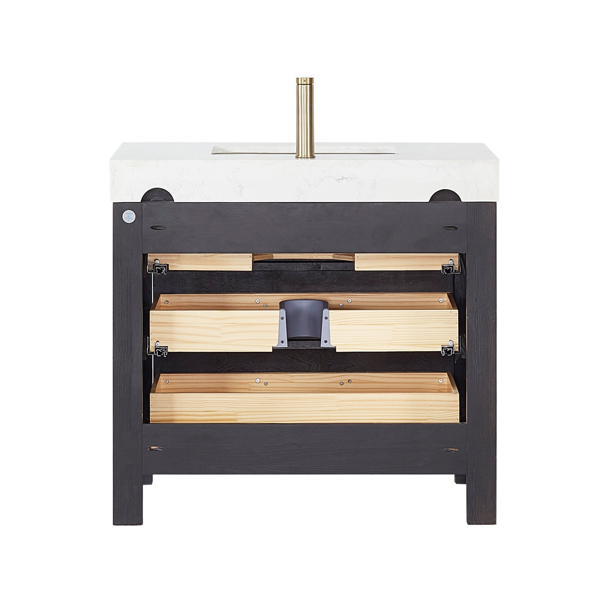 Vinnova, León 36in. Free-standing Single Bathroom Vanity in Fir Wood Black with Composite top in Lightning White