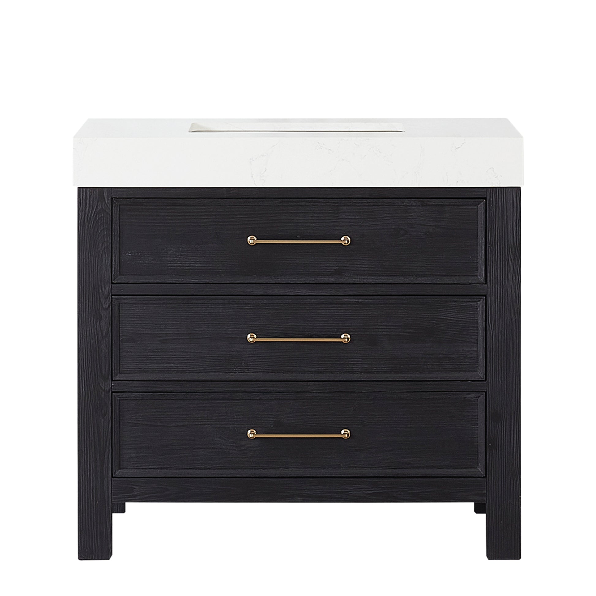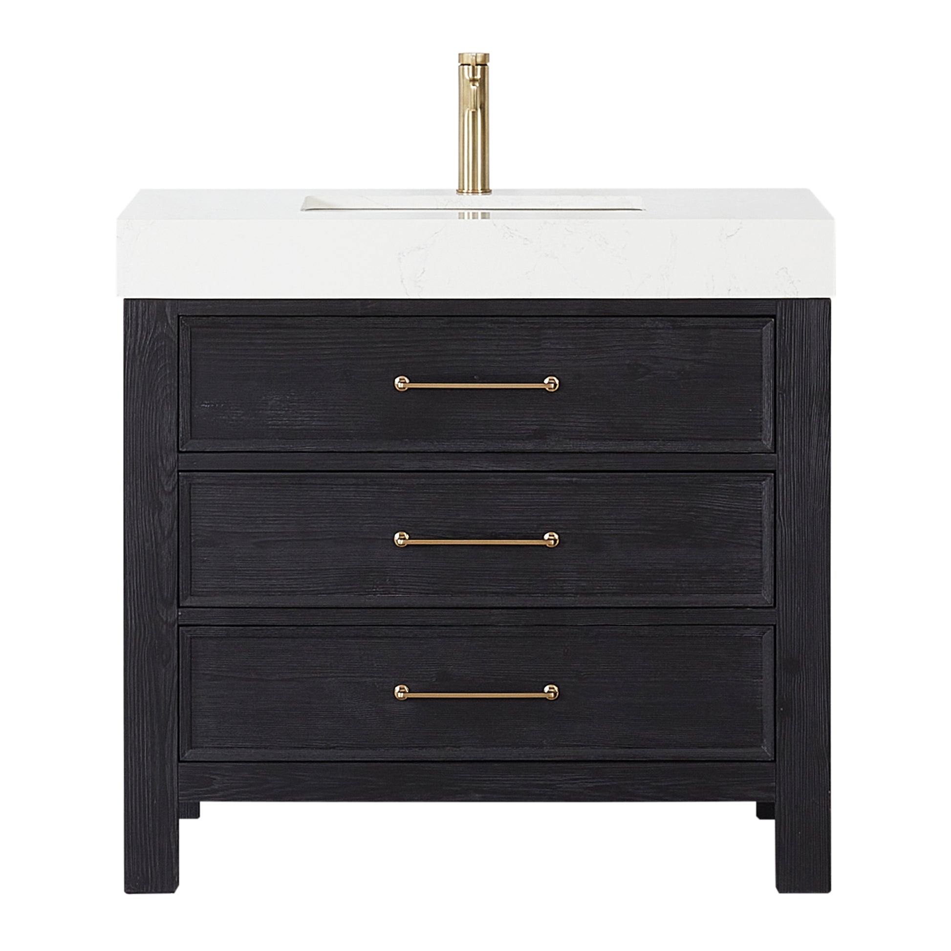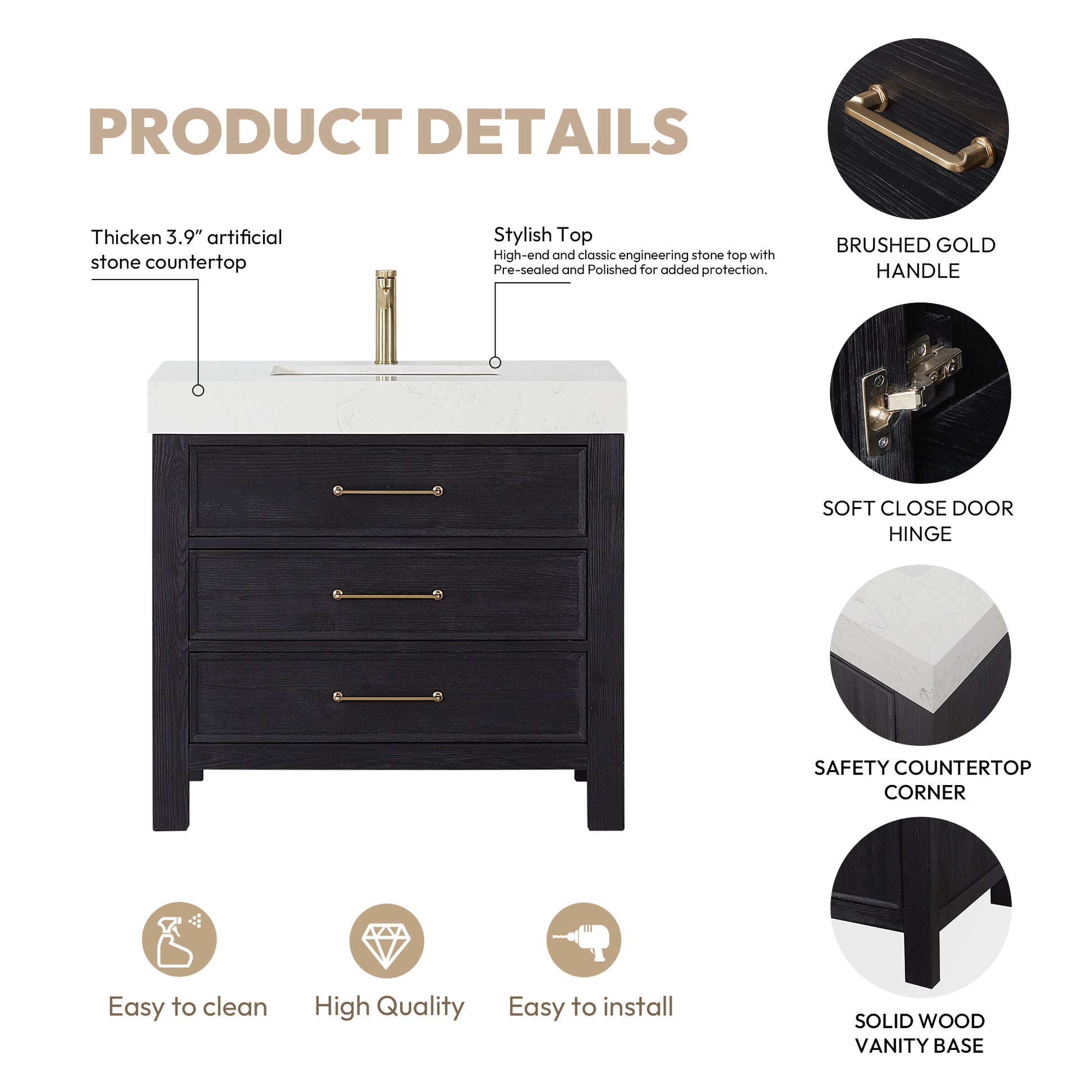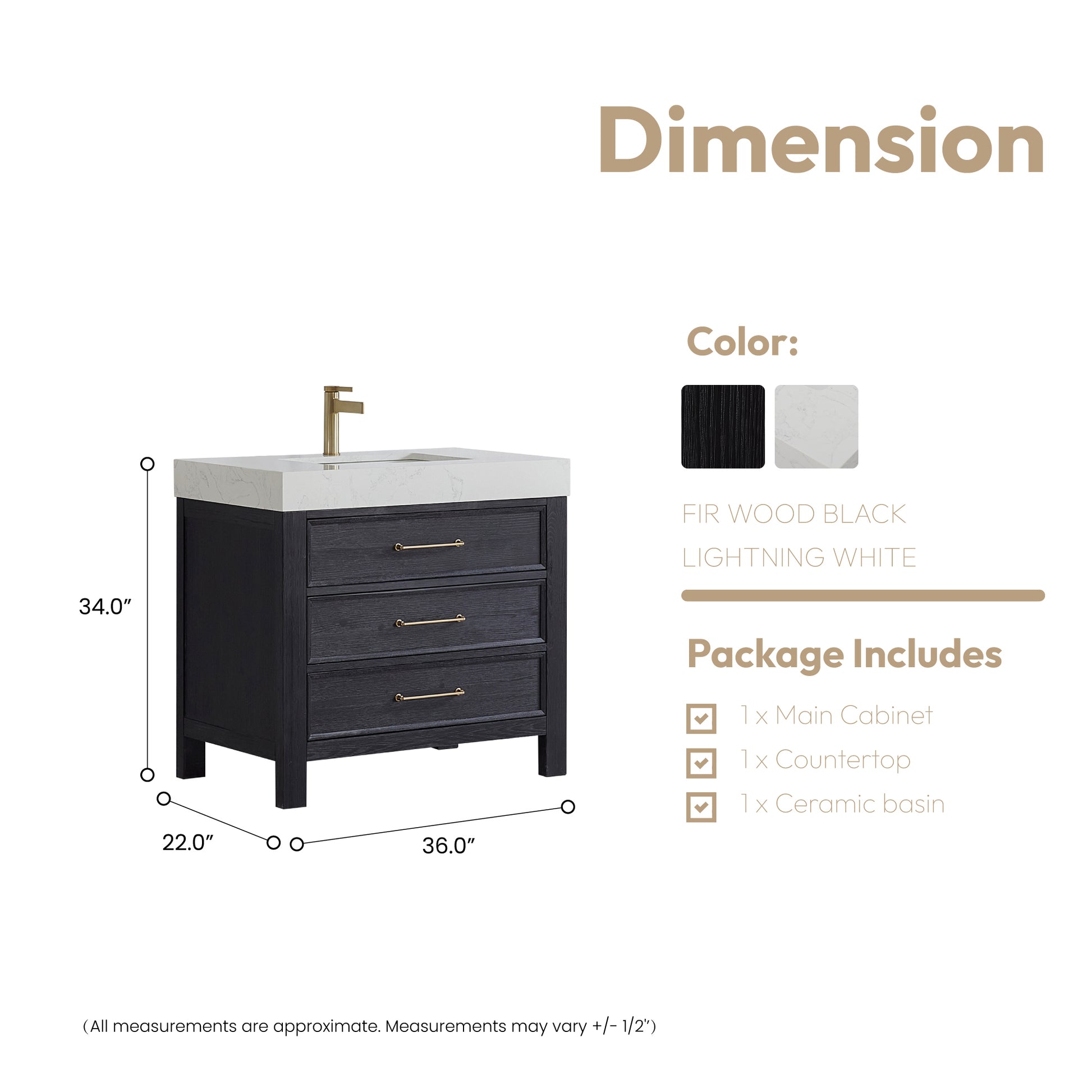 Upgrade Your Bathroom with the León 36in. Free-standing Single Bathroom Vanity in Fir Wood Black with Composite top in Lightning White