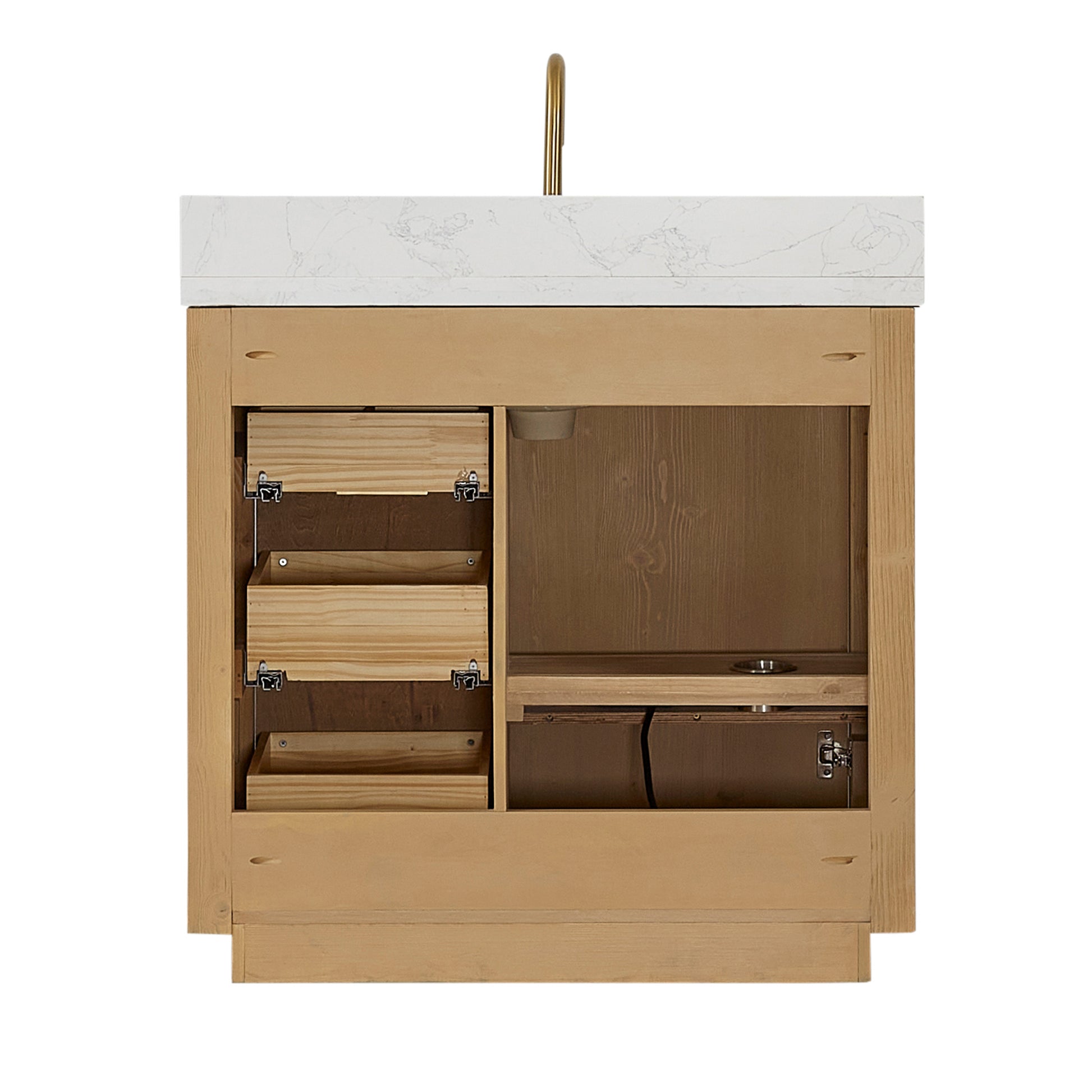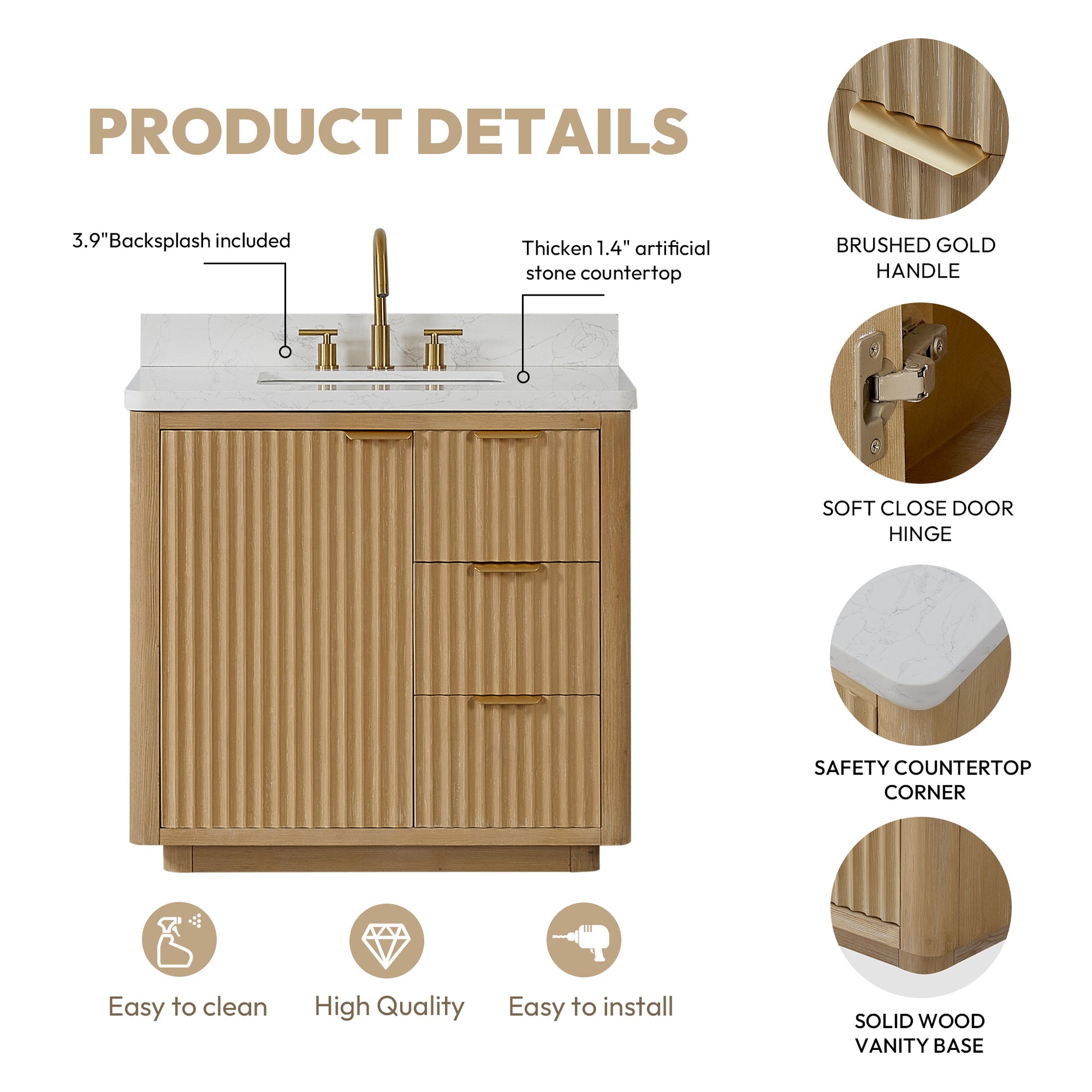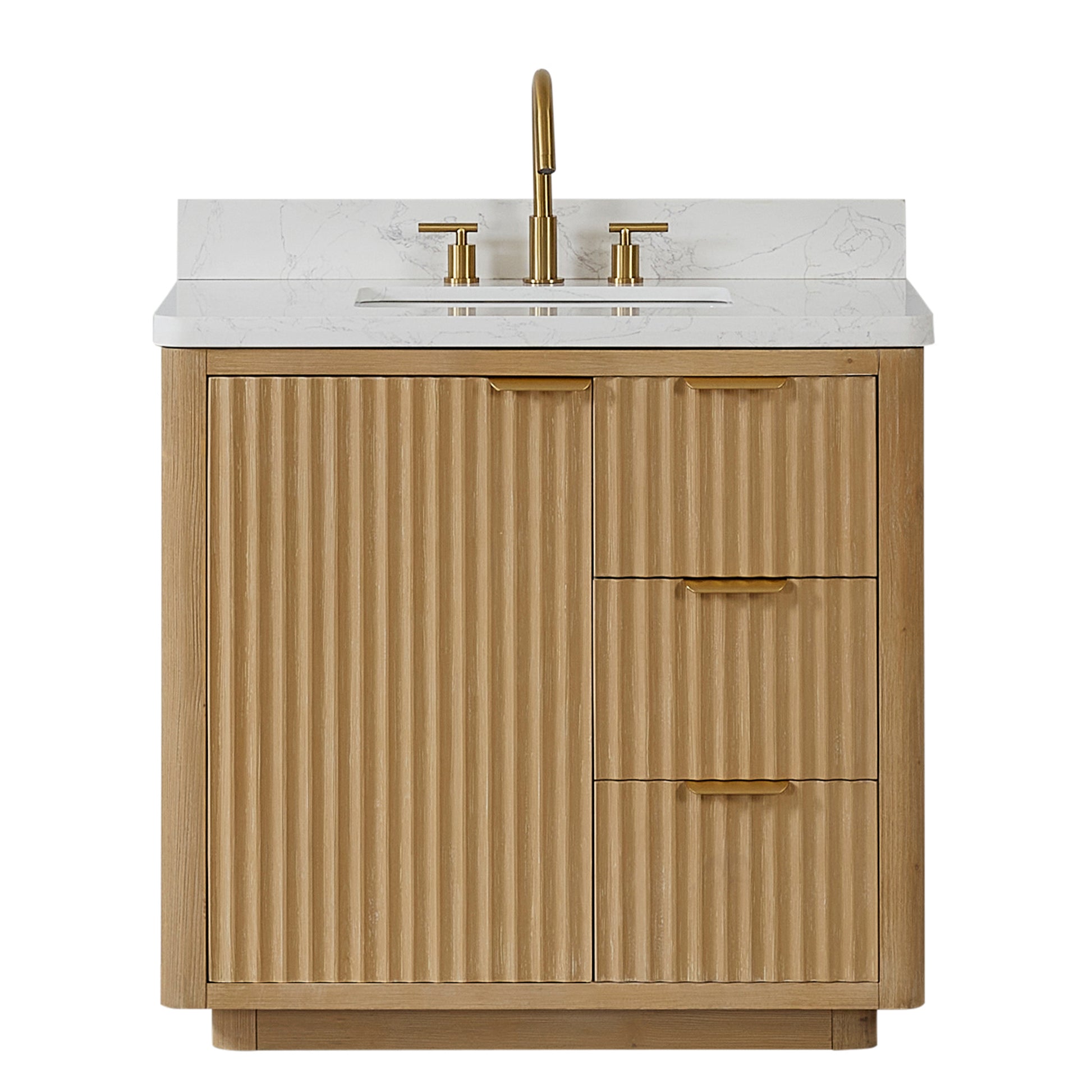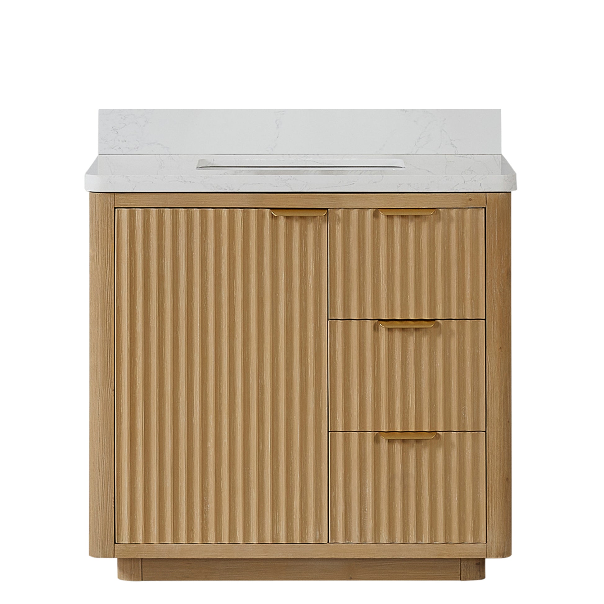 Vinnova, Cádiz 36in. Free-standing Single Bathroom Vanity in Washed Ash Grey with Composite top in Lightning White
