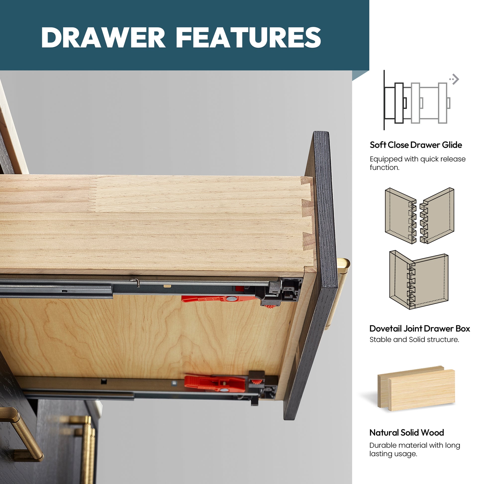 Introducing the Stunning "Gara 36" Free-standing Single Bath Vanity in Fir Wood Black with White Grain Composite Stone Top
