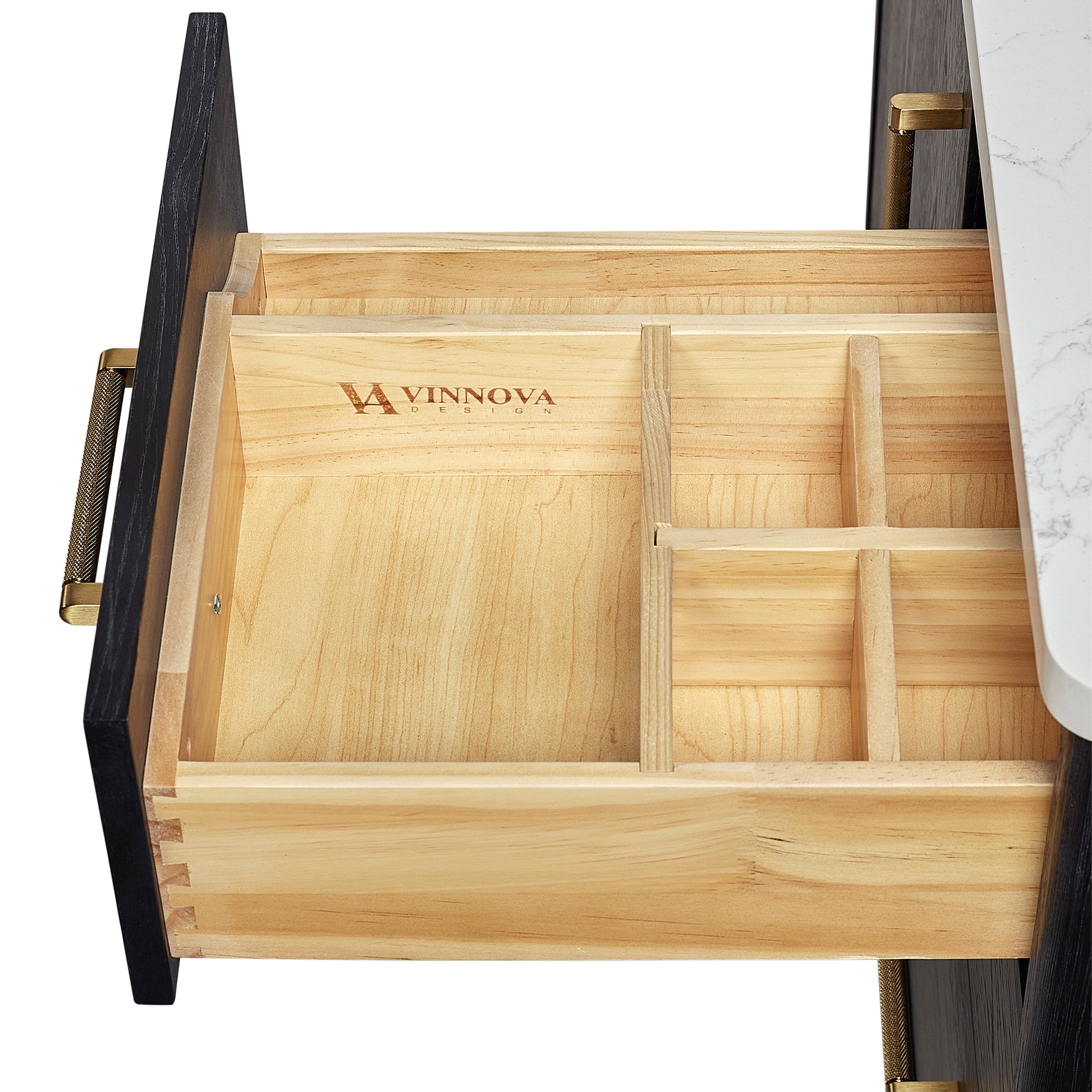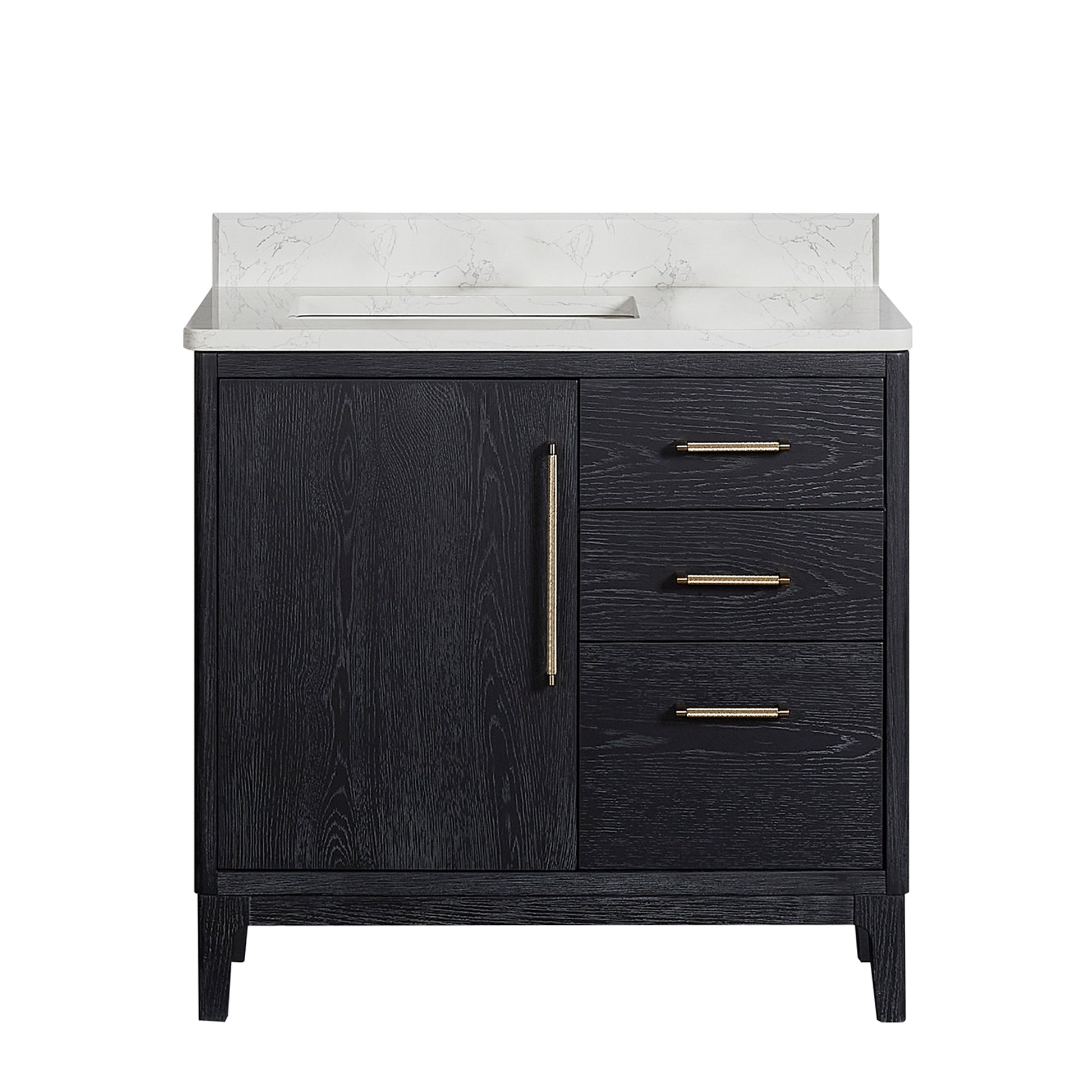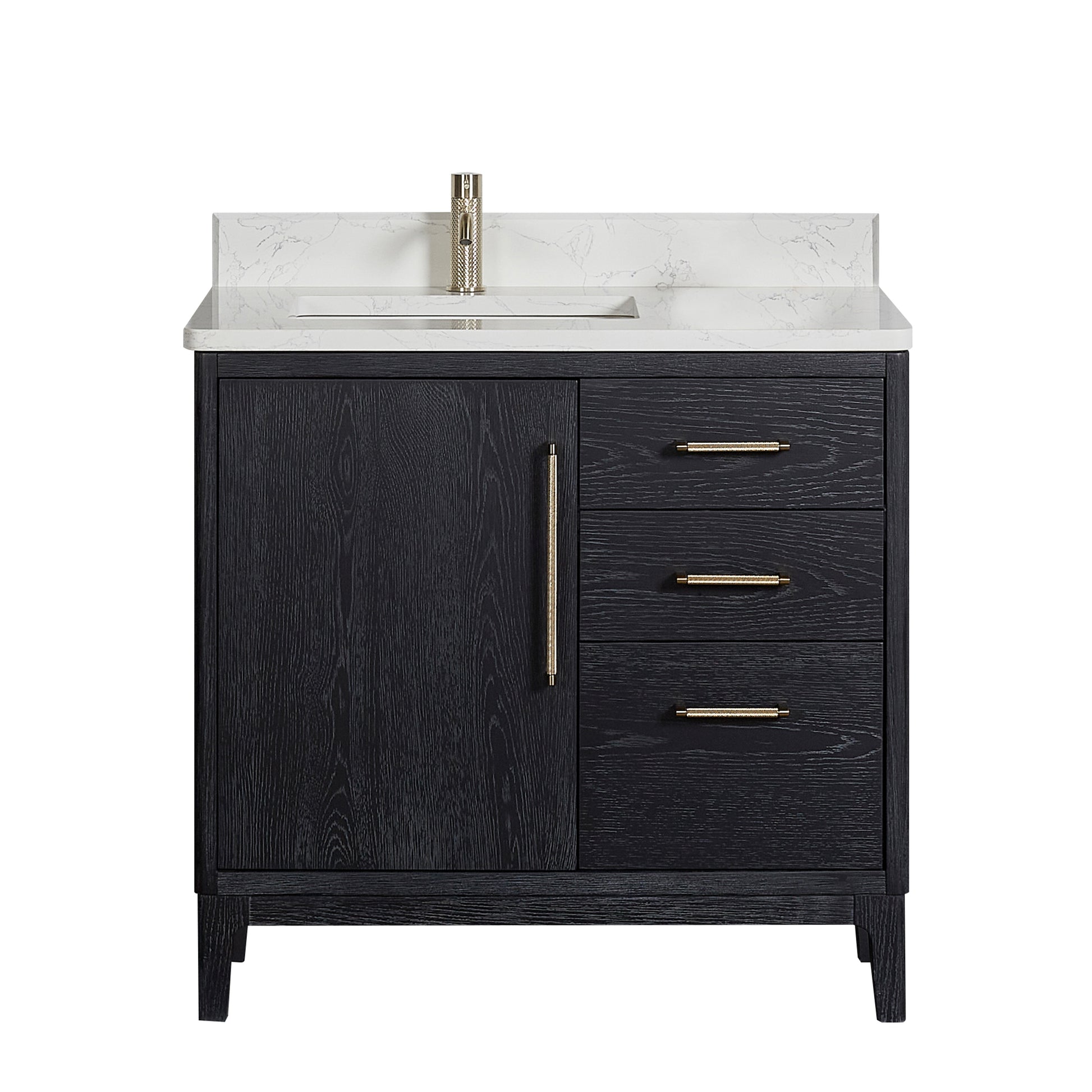 Vinnova, Gara 36" Free-standing Single Bath Vanity in Fir Wood Black with White Grain Composite Stone Top