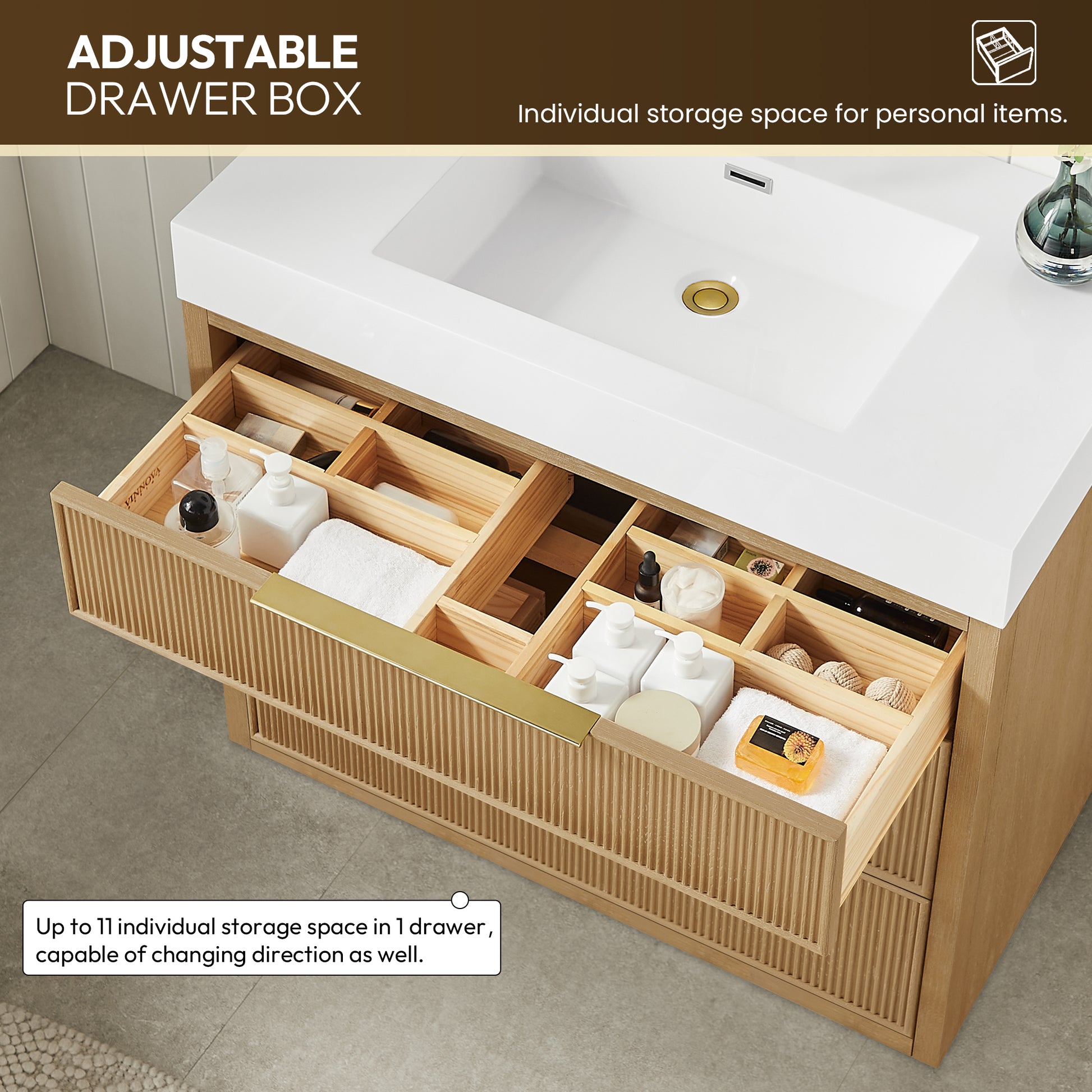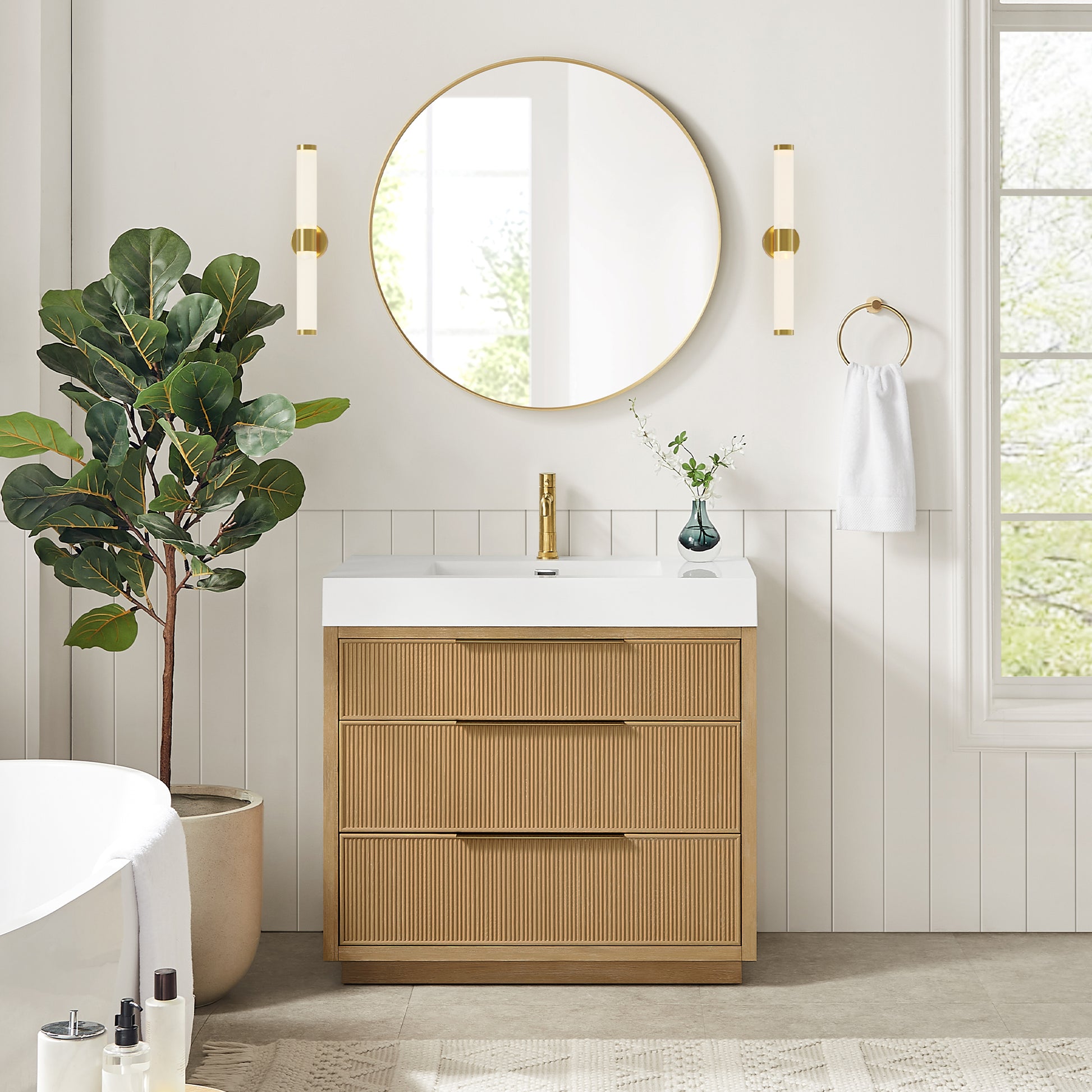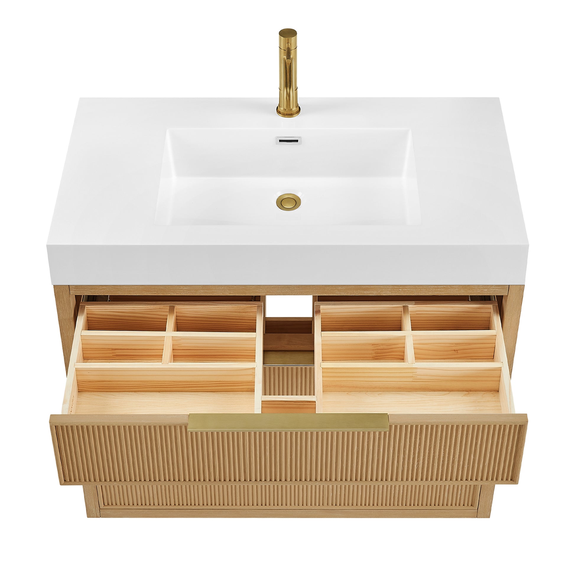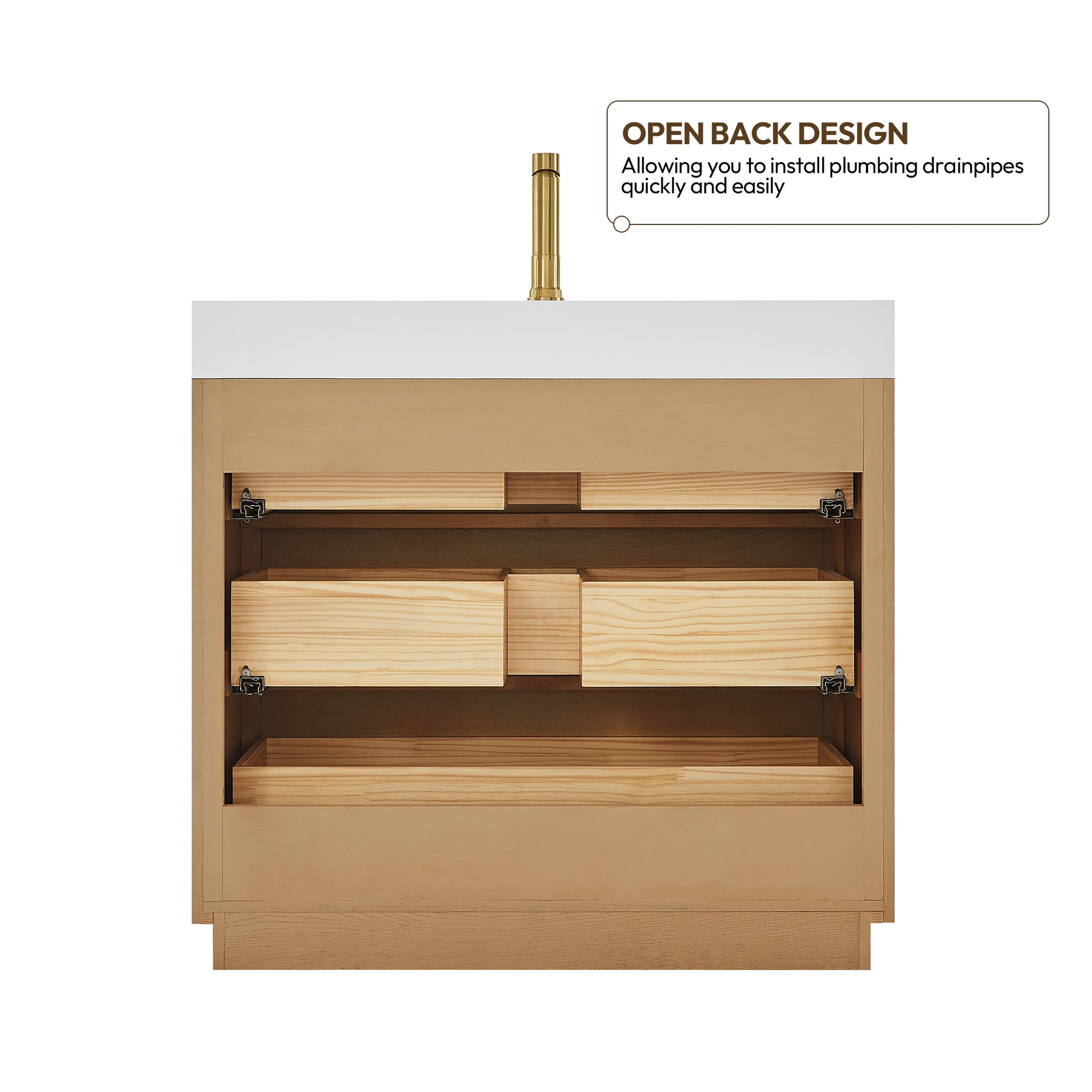 Vinnova, Hohhot 36" Free-standing Single Bath Vanity in Washed Ash Grey with White Integrated Stone Sink Top