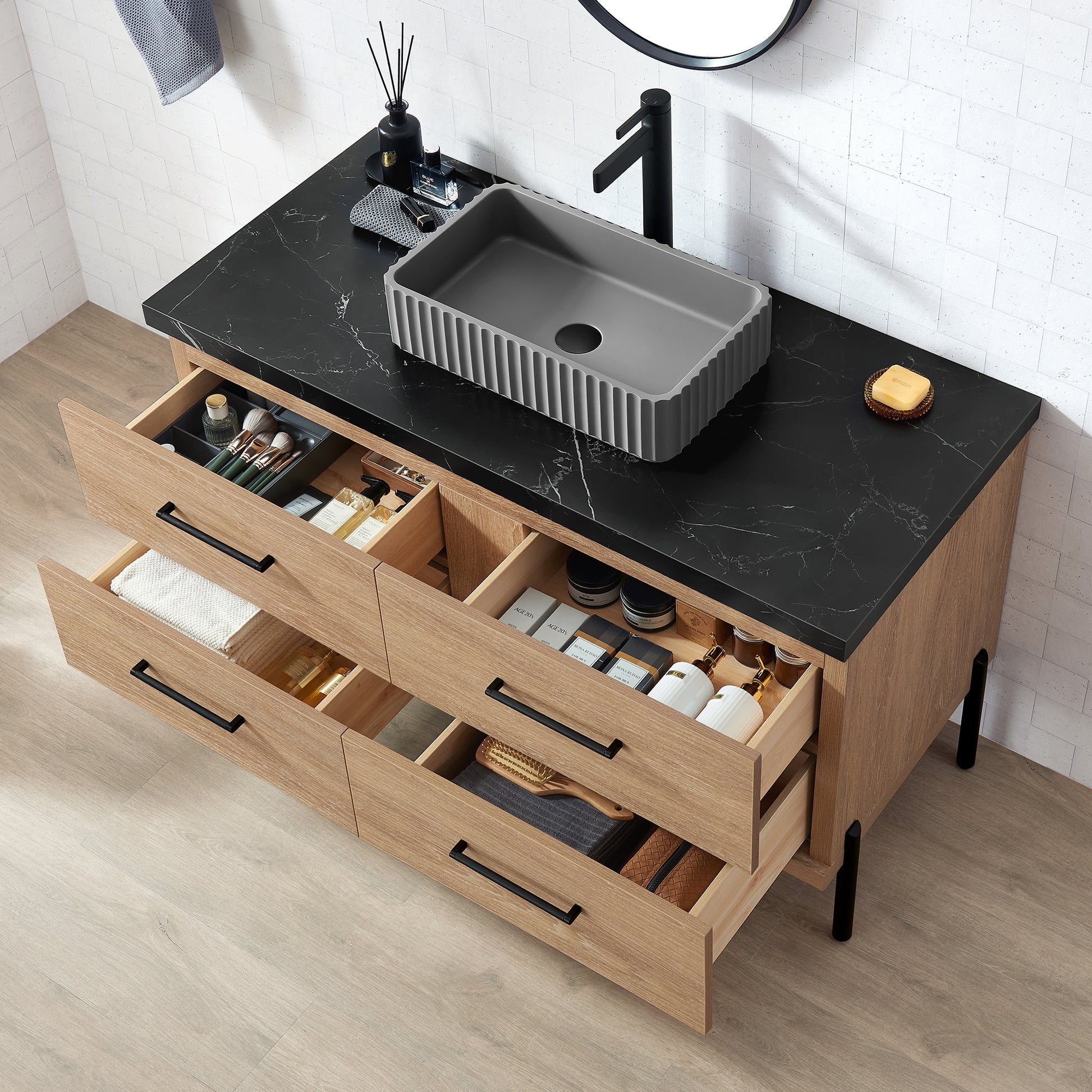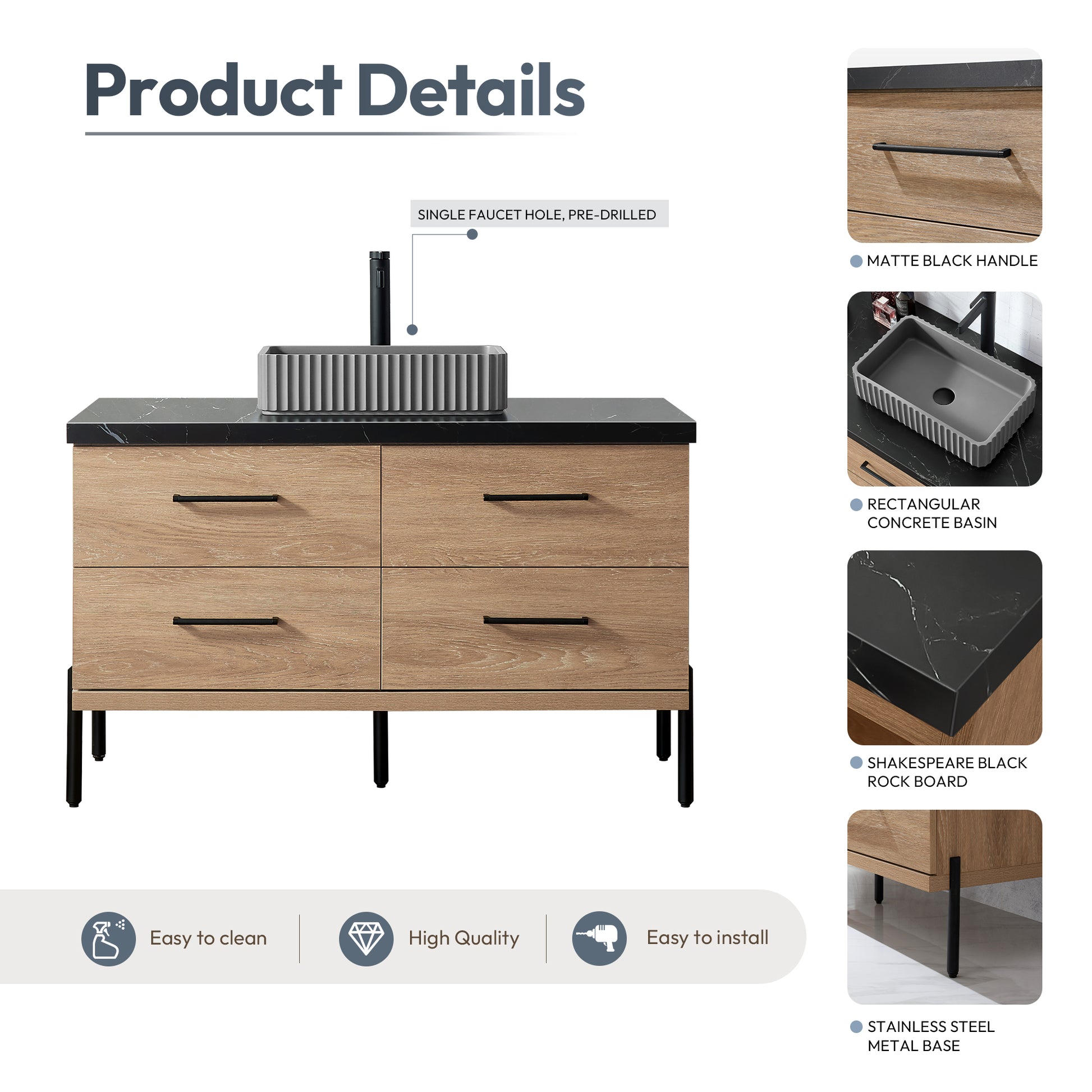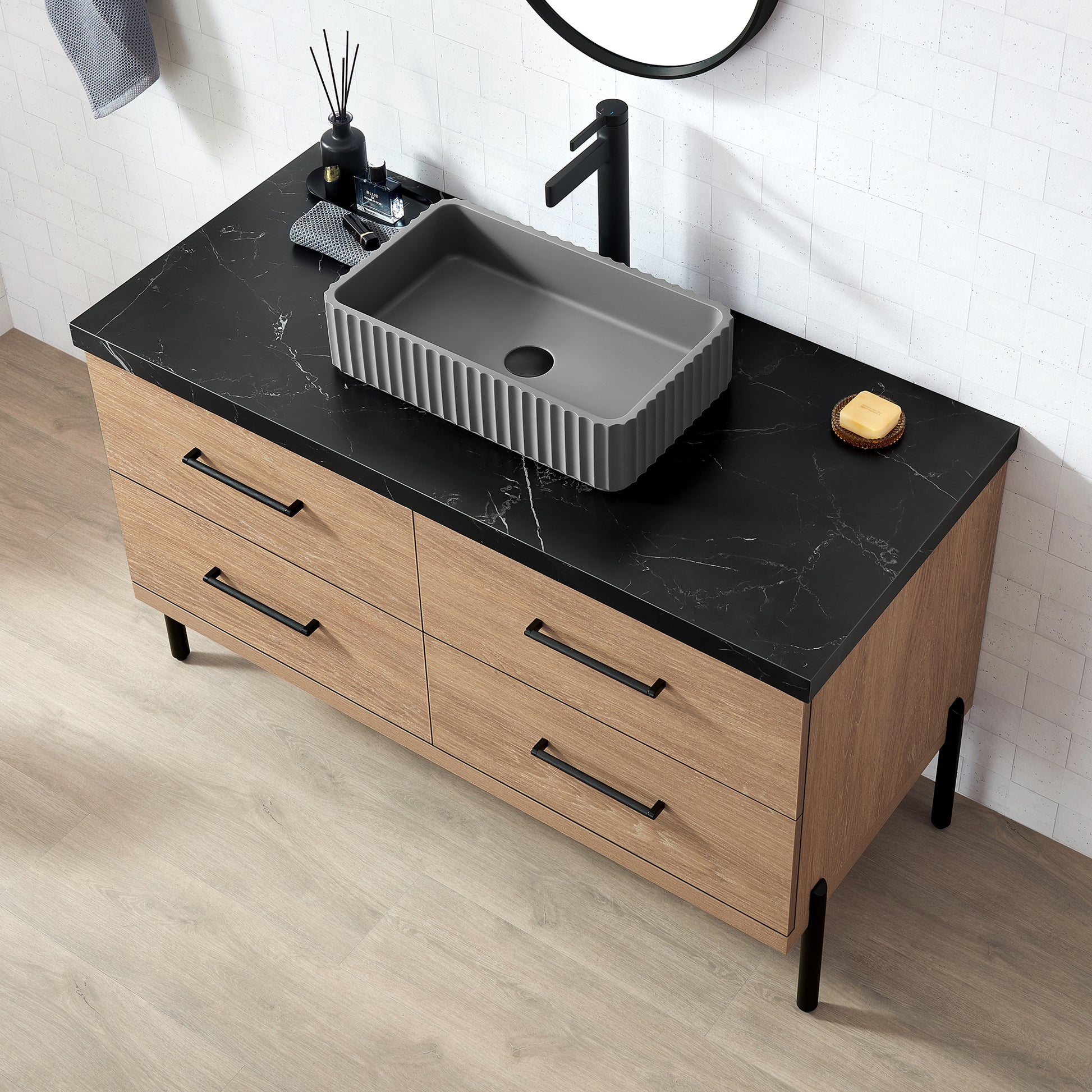 Vinnova, Trento 48A" Single Sink Bath Vanity in North American Oak with Black Sintered Stone Top with Concrete Sink
