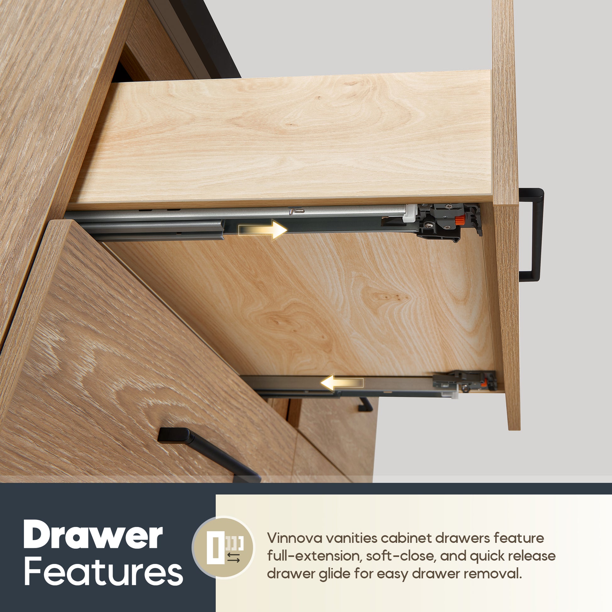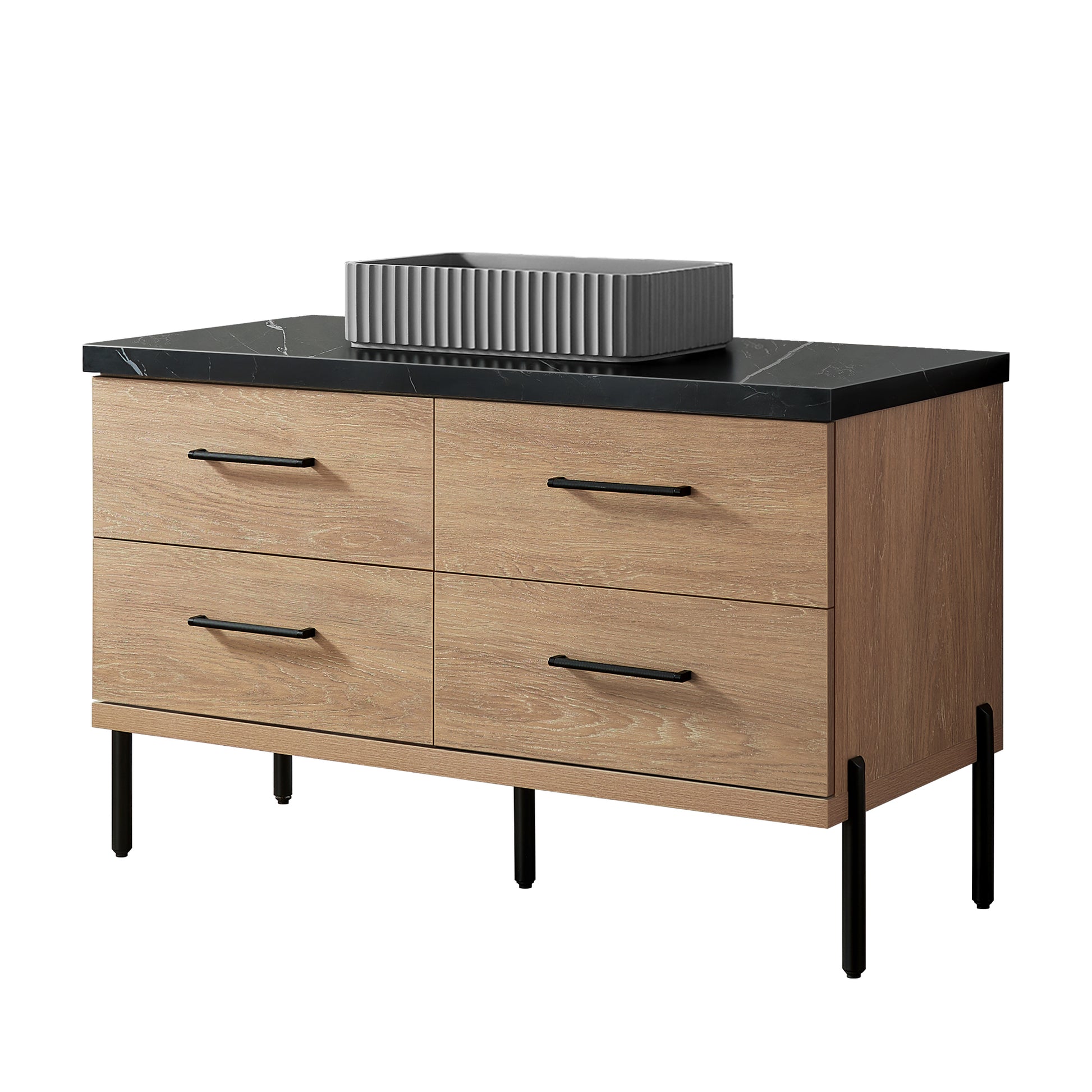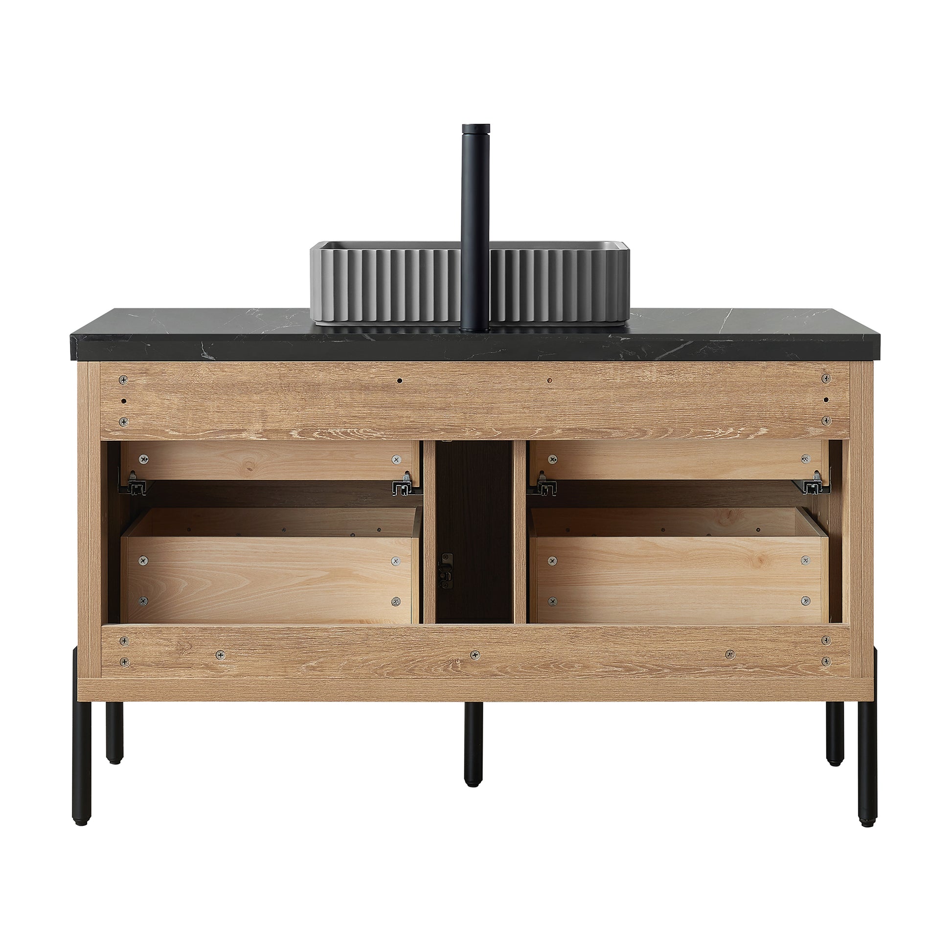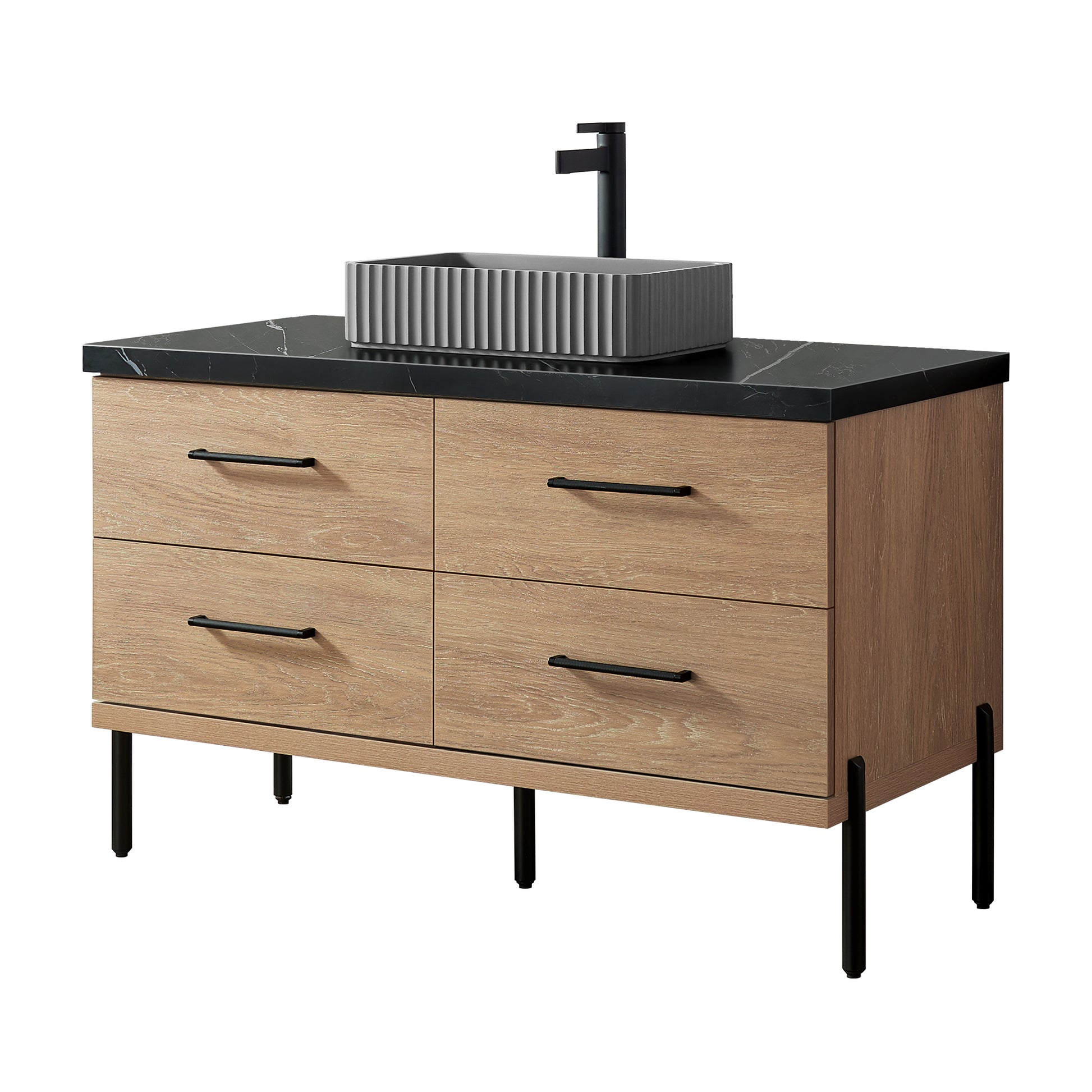 Vinnova, Trento 48A" Single Sink Bath Vanity in North American Oak with Black Sintered Stone Top with Concrete Sink