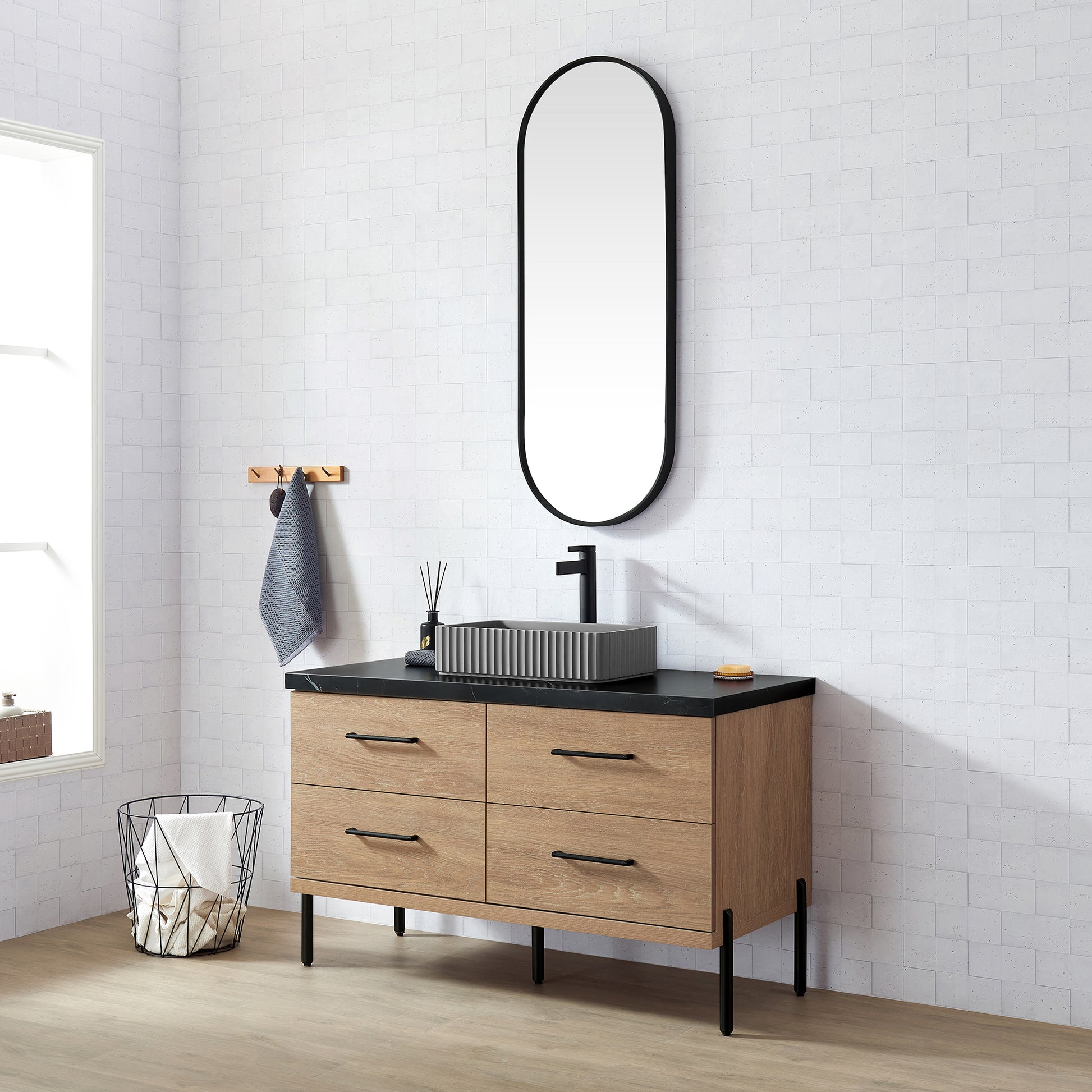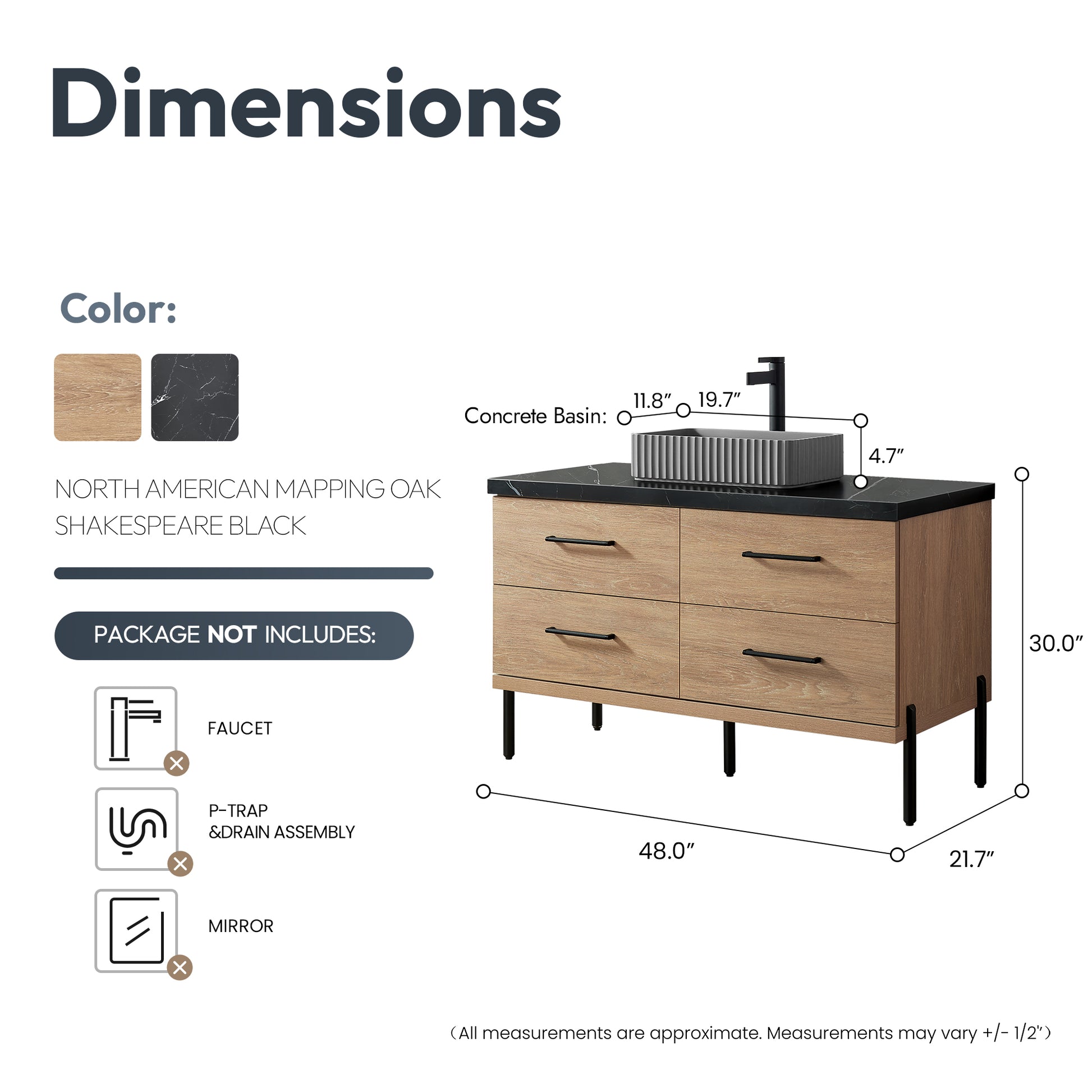 Upgrade your bathroom with the "Trento 48A" Single Sink Bath Vanity in North American Oak with Black Sintered Stone Top with Concrete Sink today.