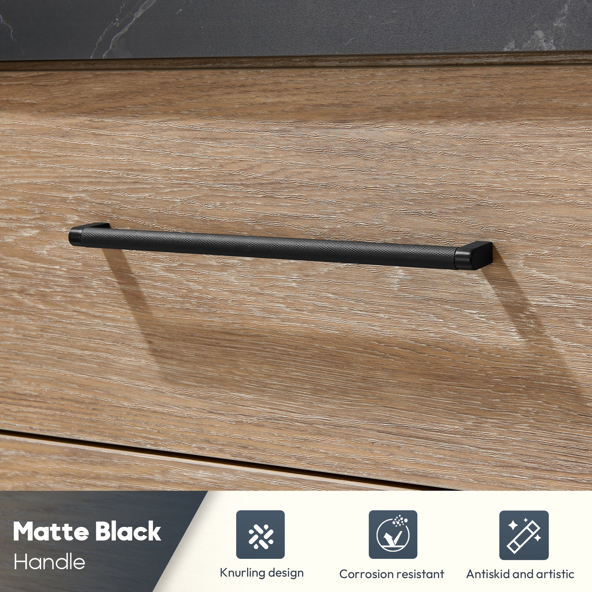 Elevate your bathroom with the "Trento 60A" Double Sink Bath Vanity in North American Oak featuring a sleek Black Sintered Stone Top with a Concrete Sink and Mirror. This stunning set combines elegance and functionality, perfect for any modern bathroom space.