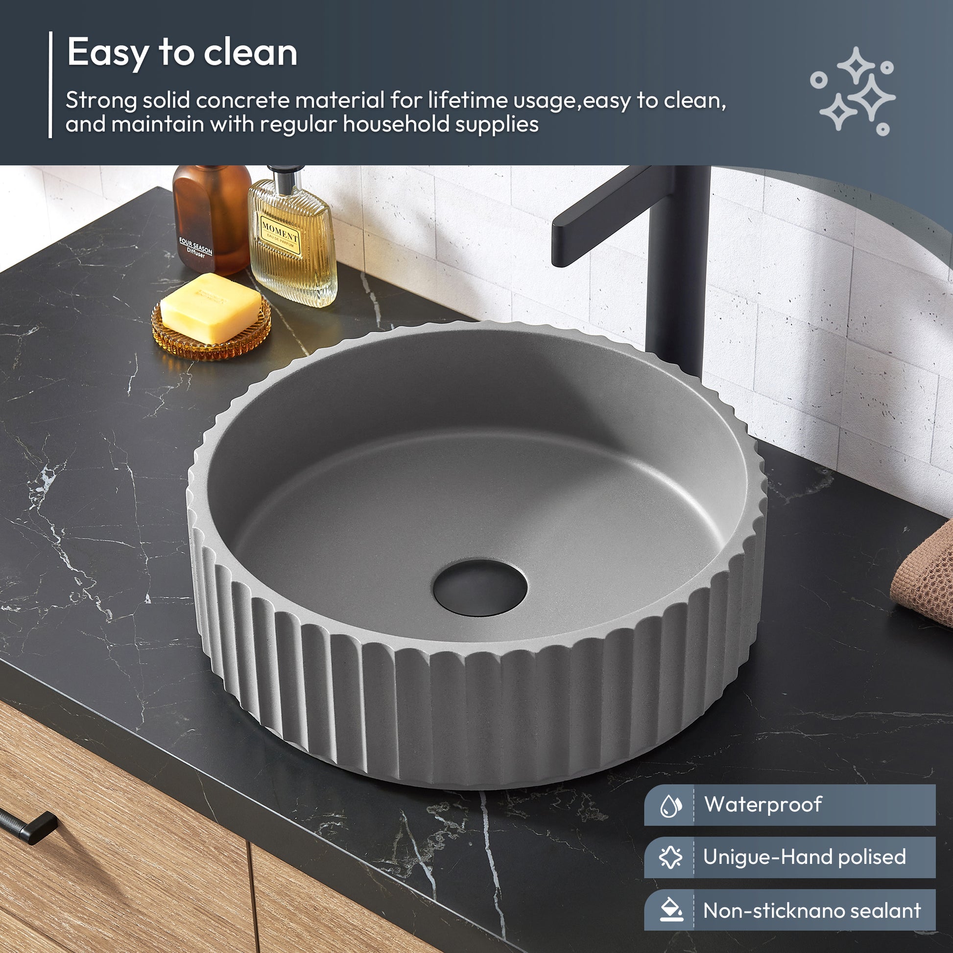 - Black Sintered Stone Top with Concrete Sink for a contemporary look