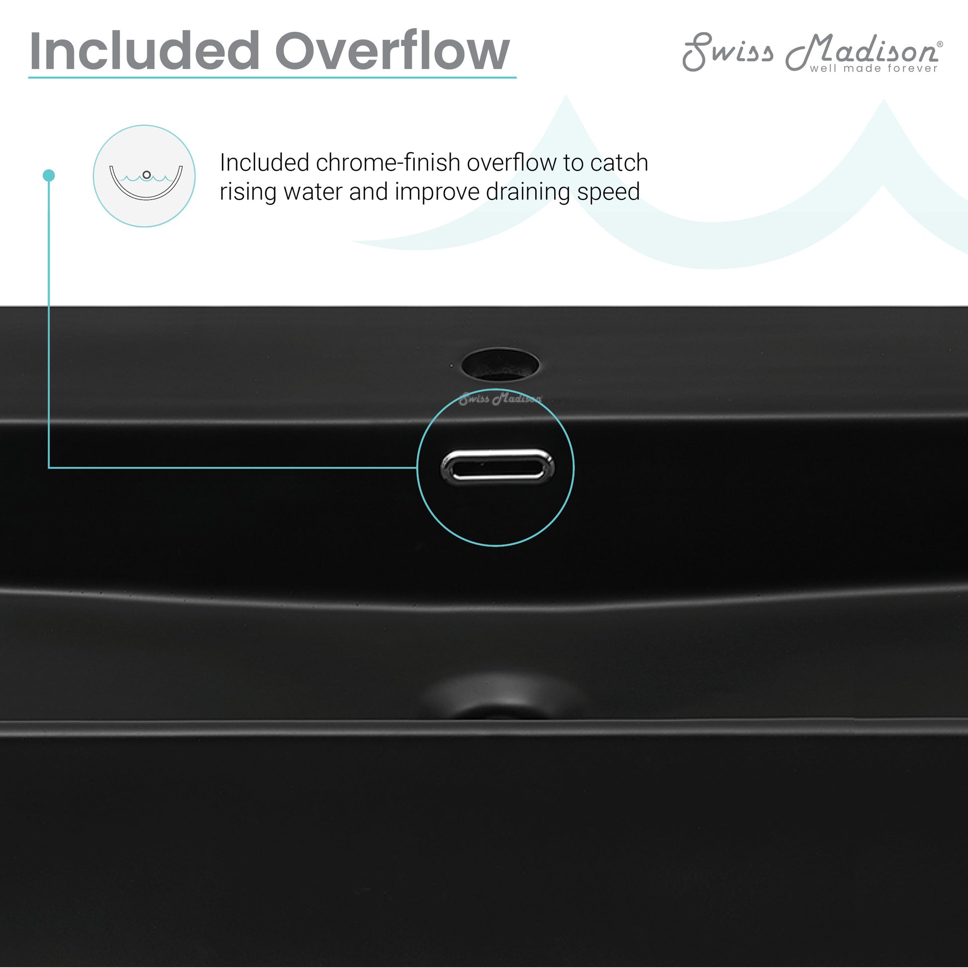 Elevate your bathroom with the timeless elegance of the Swiss Madison, Claire 30 Ceramic Console Sink Matte Black Basin Chrome Legs. This stunning piece from the Claire collection effortlessly combines vintage charm with a minimalist design, creating a unique and sophisticated look for your space. The matte black finish adds a touch of modernity to the classic design, making it the perfect statement piece for any bathroom. Redefine sophistication and elevate your decor with the Claire console sink.