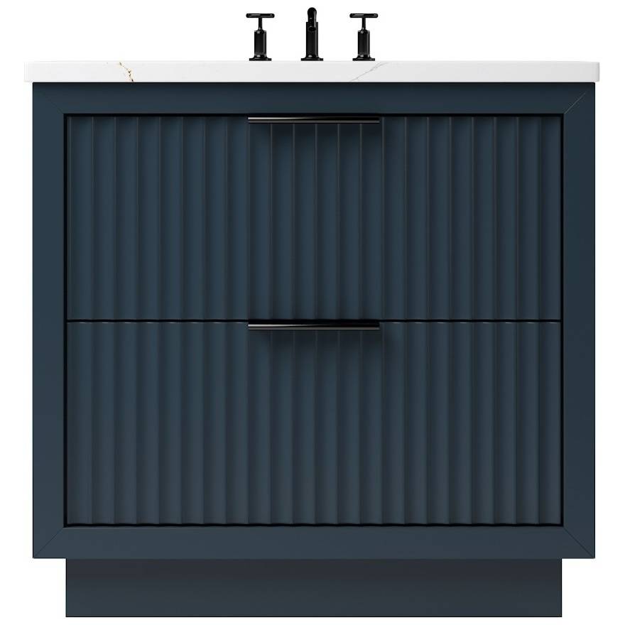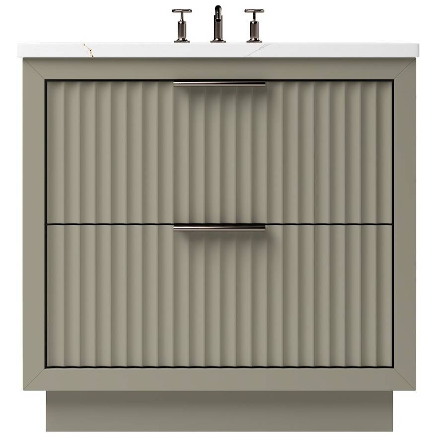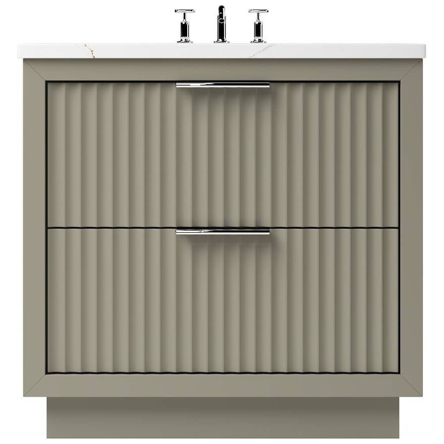 The LeCrieú vanity displays a contemporary aesthetic with sleek scalloped details that refreshes any space. It creates a unique style with great functionality that's built to last. Our freestanding vanity features a bold two inch frame built proud of the soft-close doors and drawers, and is finished in satin varnish. Available in both single and double configurations, each offered in various sizes for any space. Available in 5 unique painted finishes and 4 sizes.