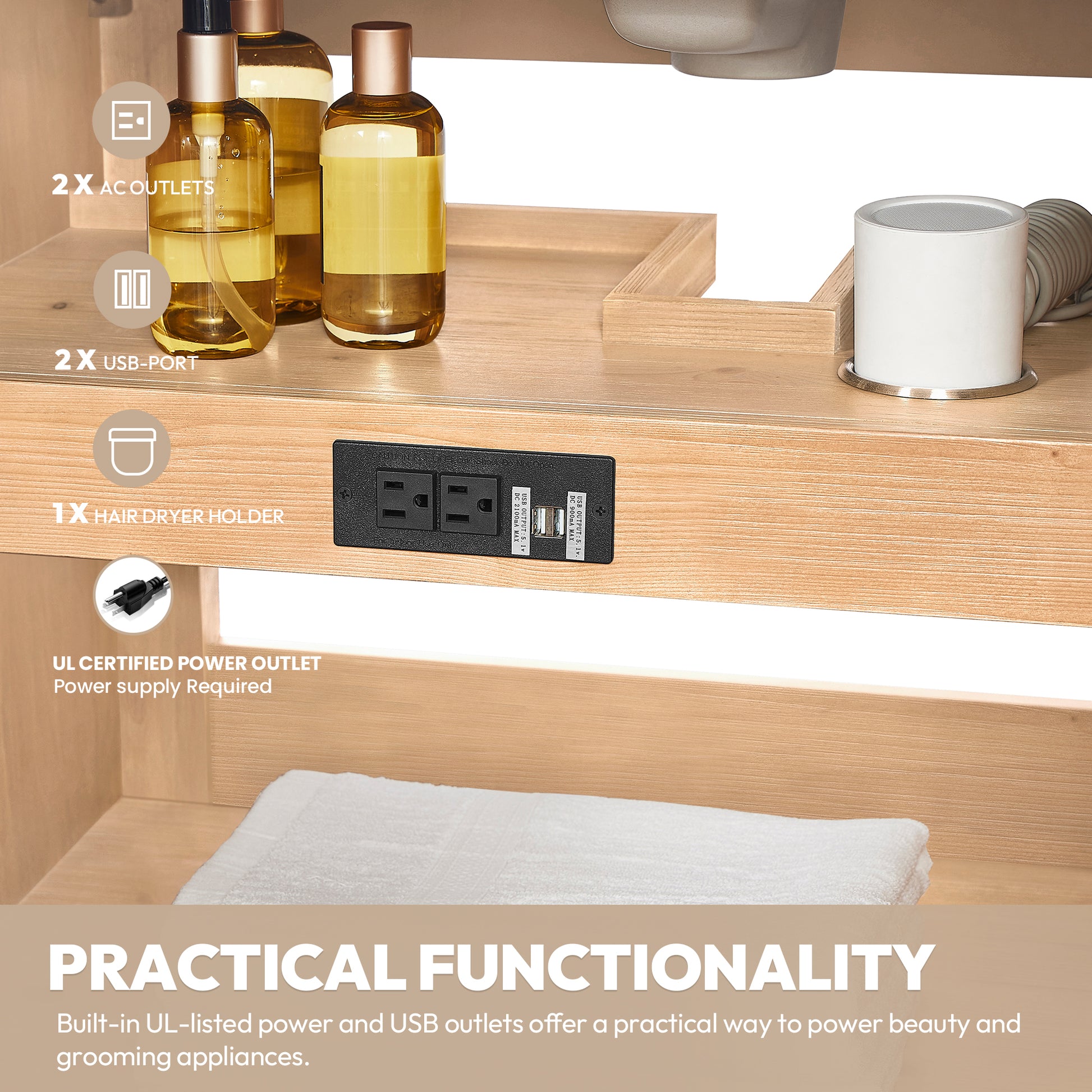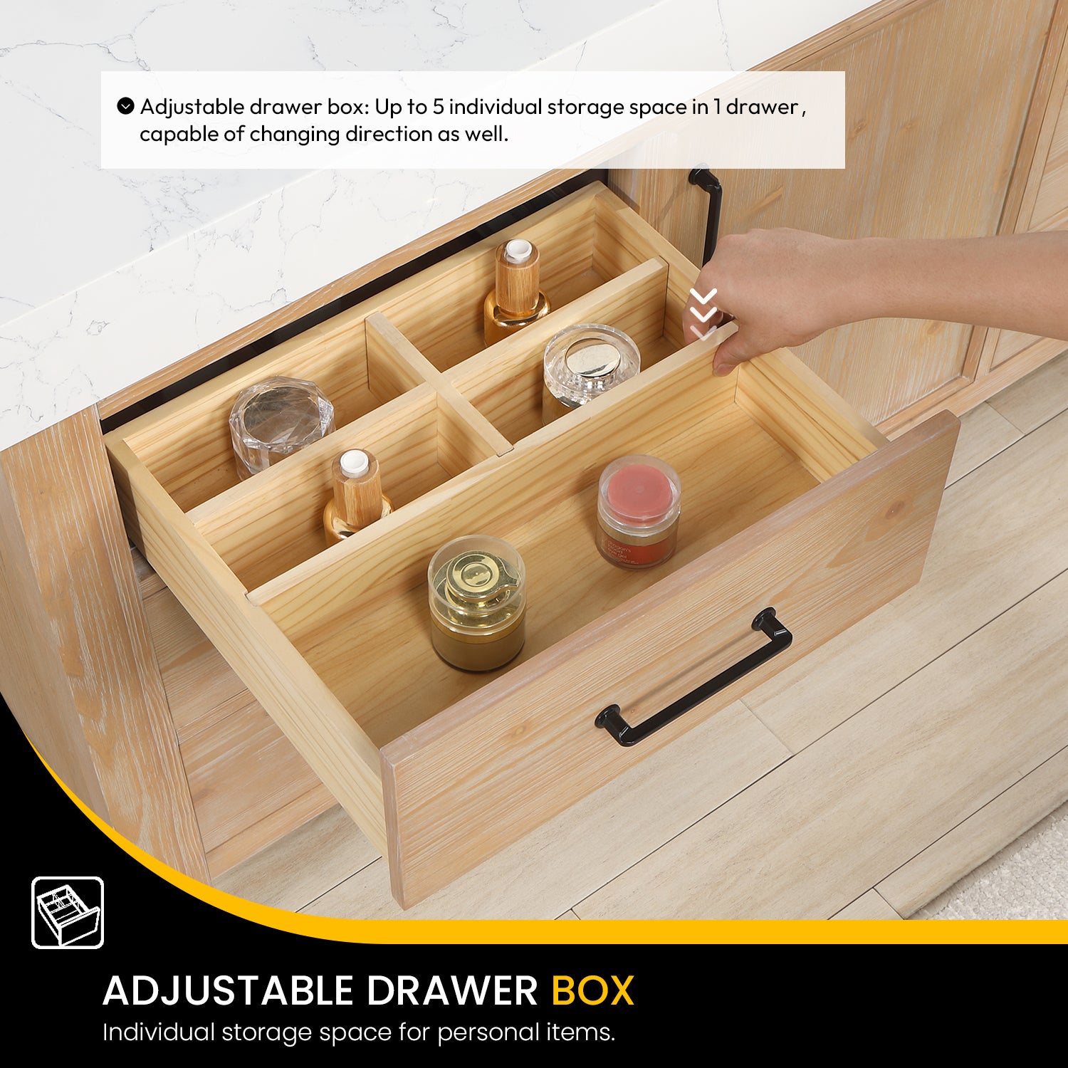 Elevate your bathroom decor with the León 60in. Free-standing Single Bathroom Vanity in Fir Wood Brown with Composite top in Lightning White. This stunning vanity combines a classic fir wood finish with a modern lightning white composite top for a stylish and functional addition to any bathroom.