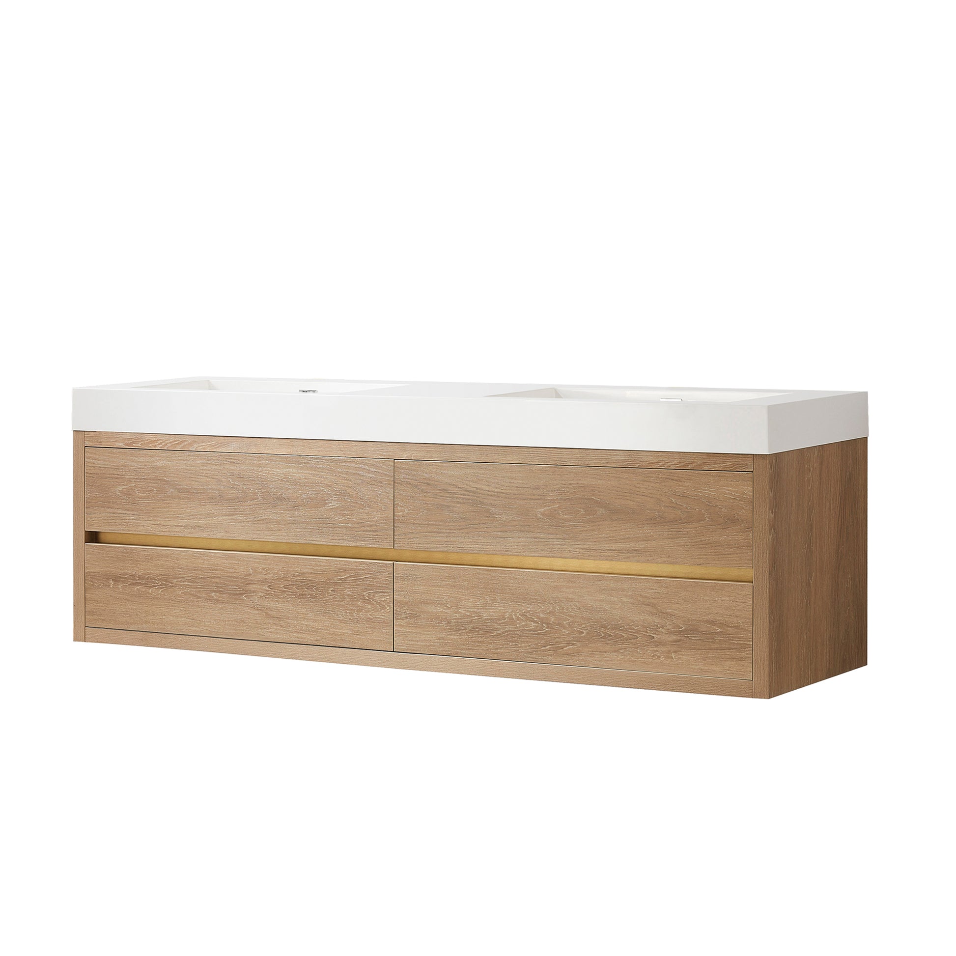 Vinnova, Palencia 72" Double Sink Wall-Mount Bath Vanity in North American Oak with White Composite Integral Square Sink Top