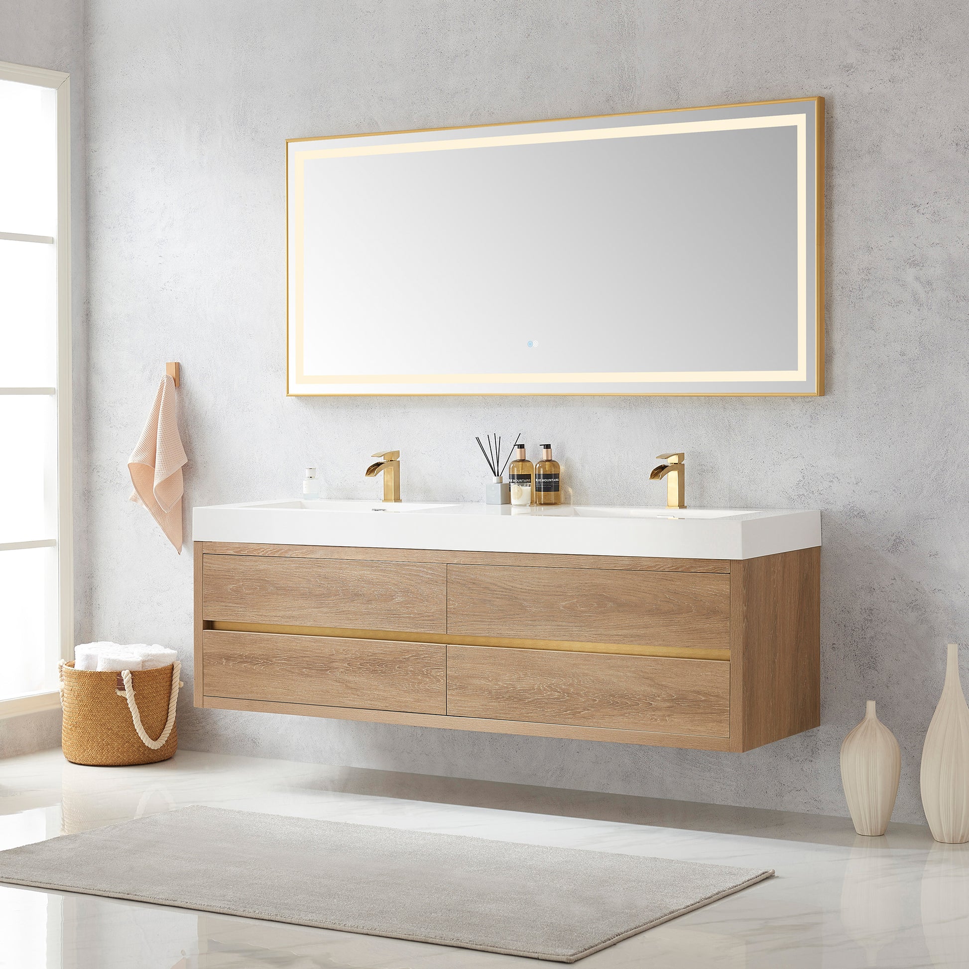 Upgrade Your Bathroom with the Palencia 72" Double Sink Wall-Mount Bath Vanity in North American Oak