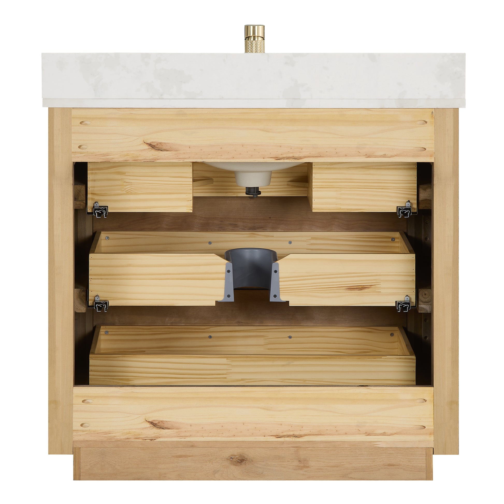- Fish Maw white quartz stone top adds a touch of sophistication