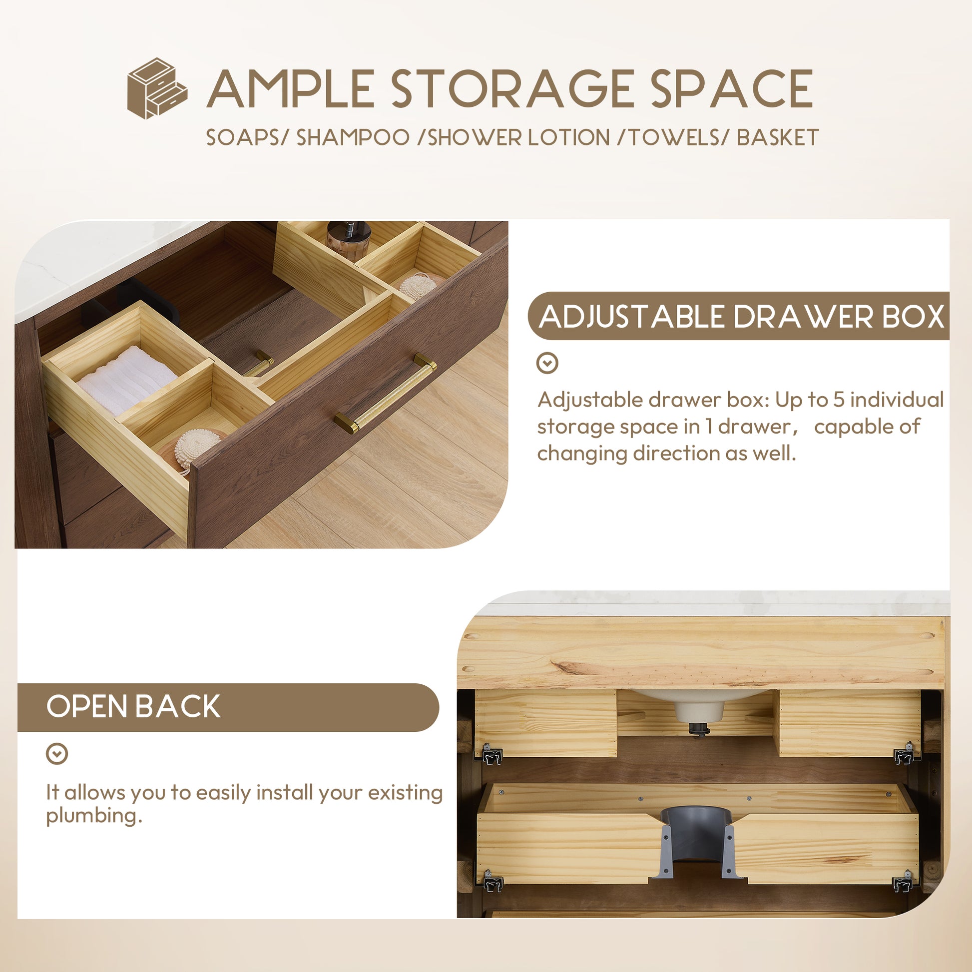 - Ample storage space for all your bathroom essentials