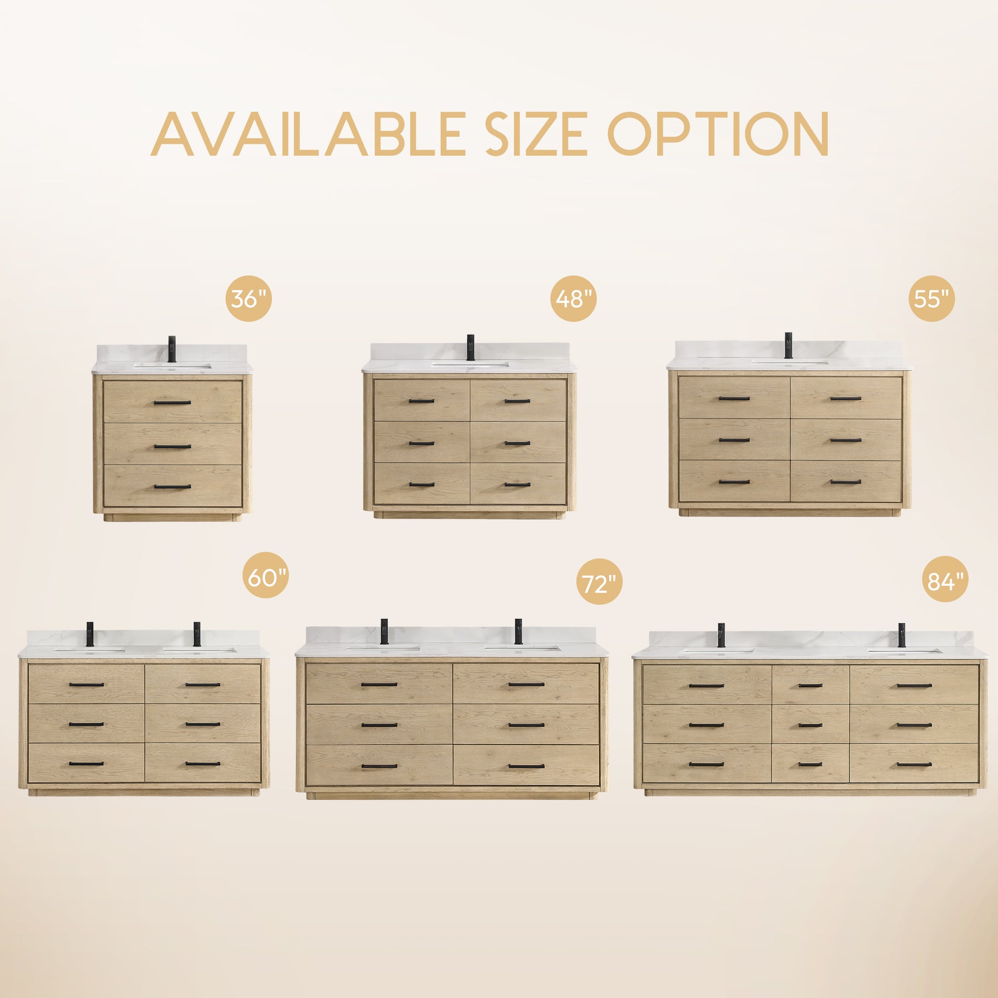 Elevate your bathroom aesthetic with the Porto 36 Free-standing Single Bath Vanity in Aged Natural Oak with Fish Maw White Quartz Stone Top. This stunning piece combines timeless design with high-quality materials for a luxurious addition to any home.