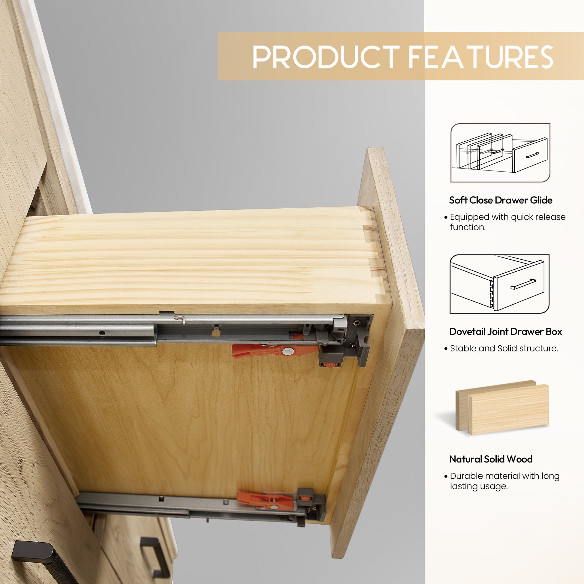 - Ample storage space with drawers and cabinet for all your bathroom essentials