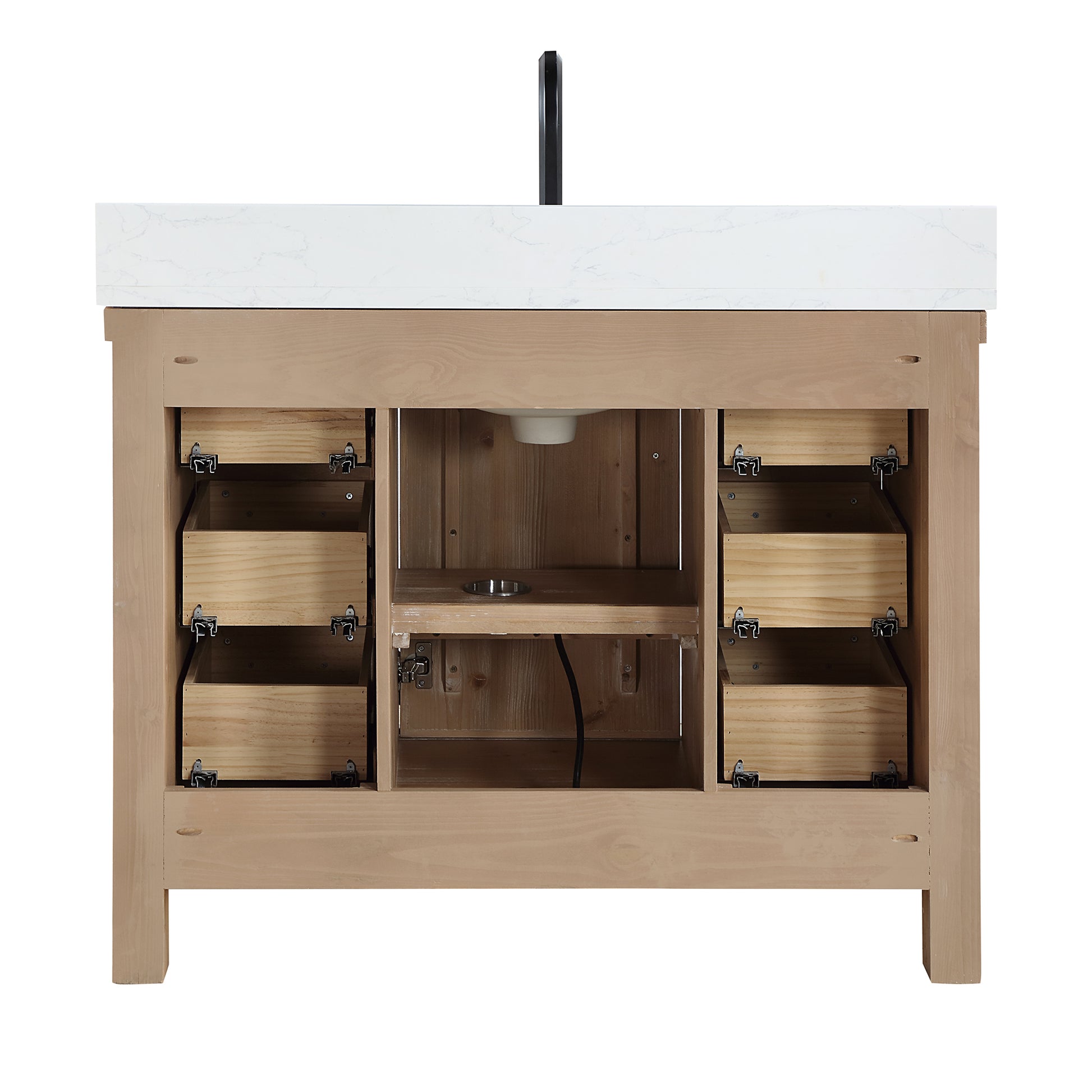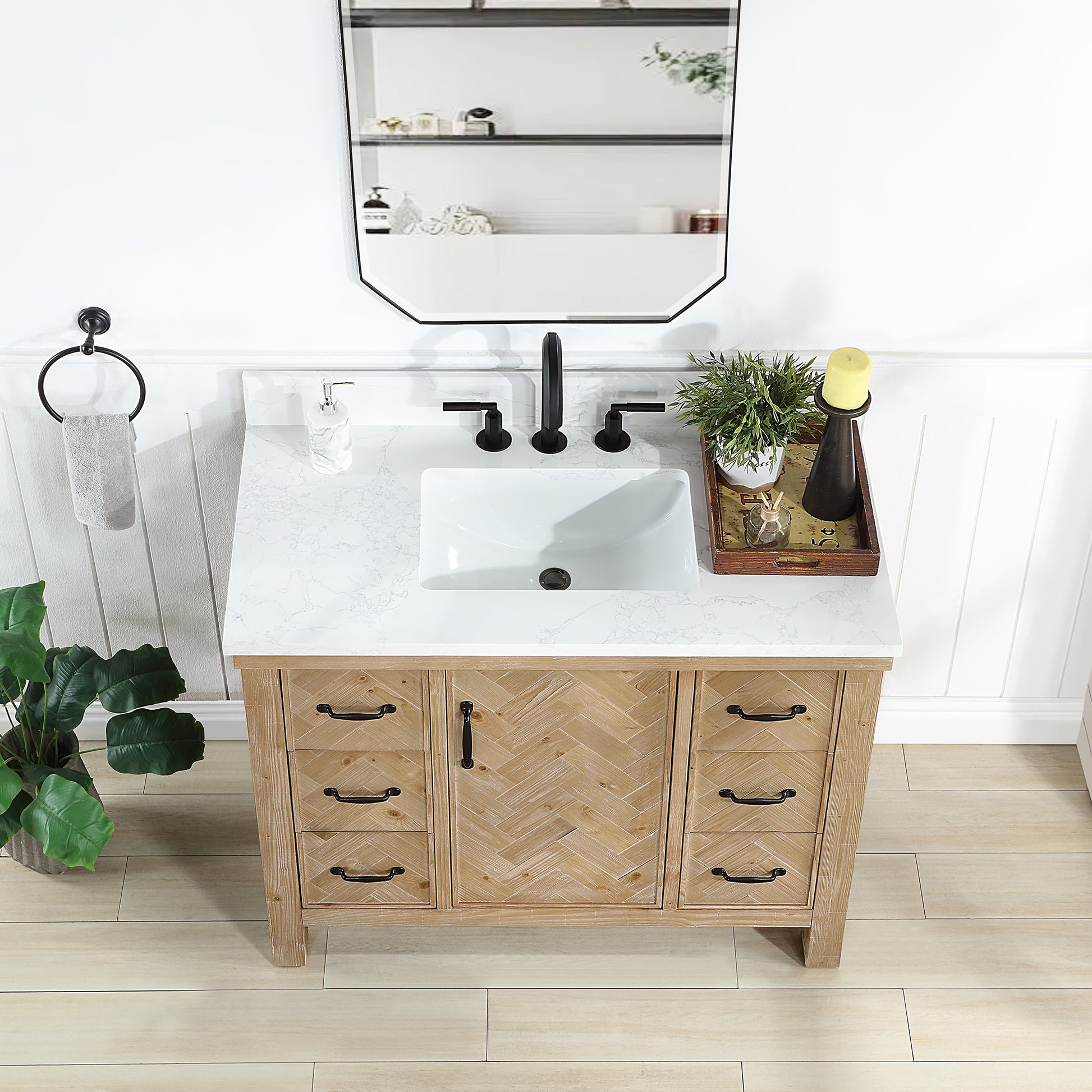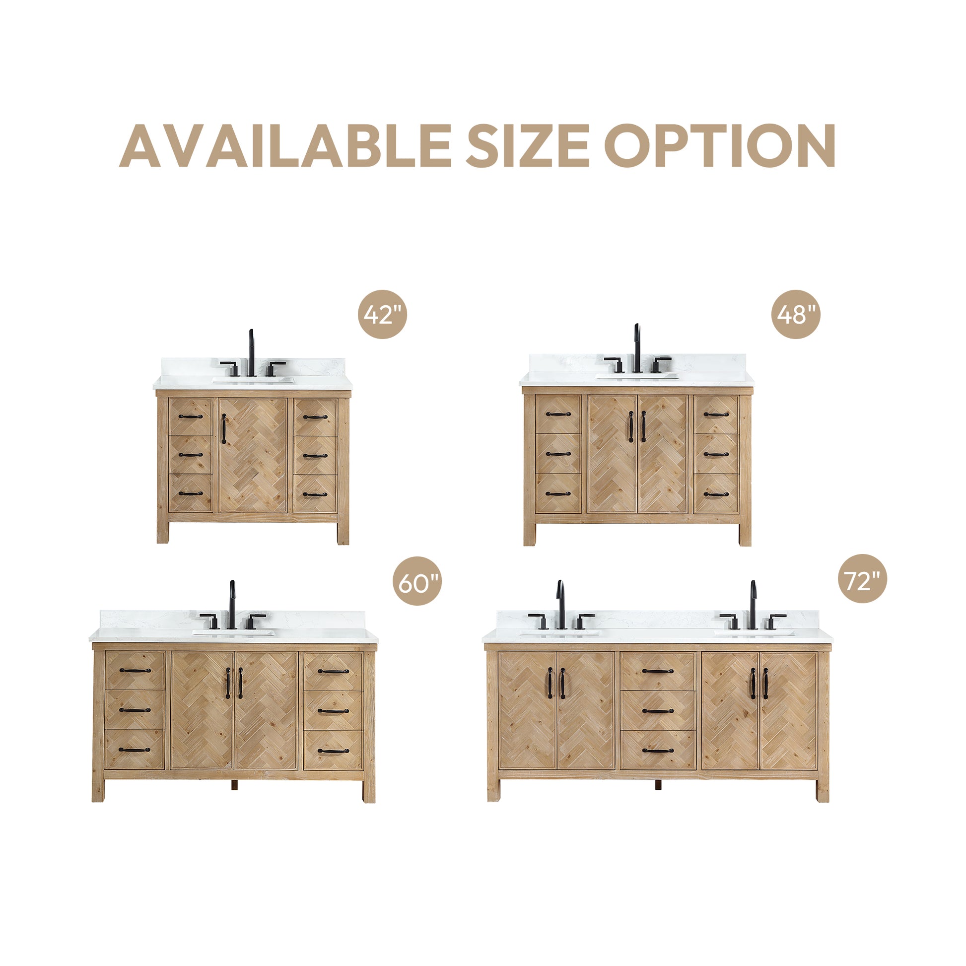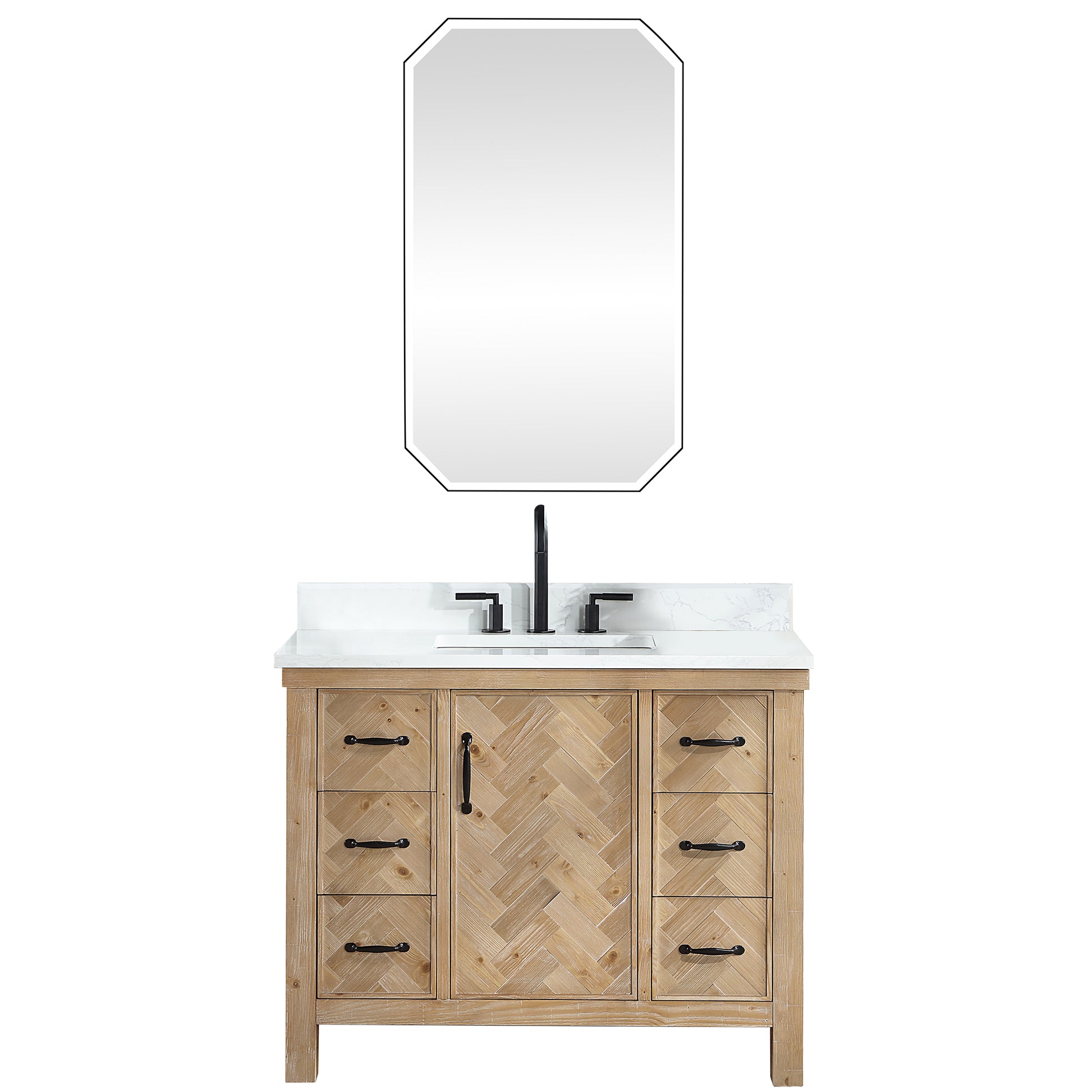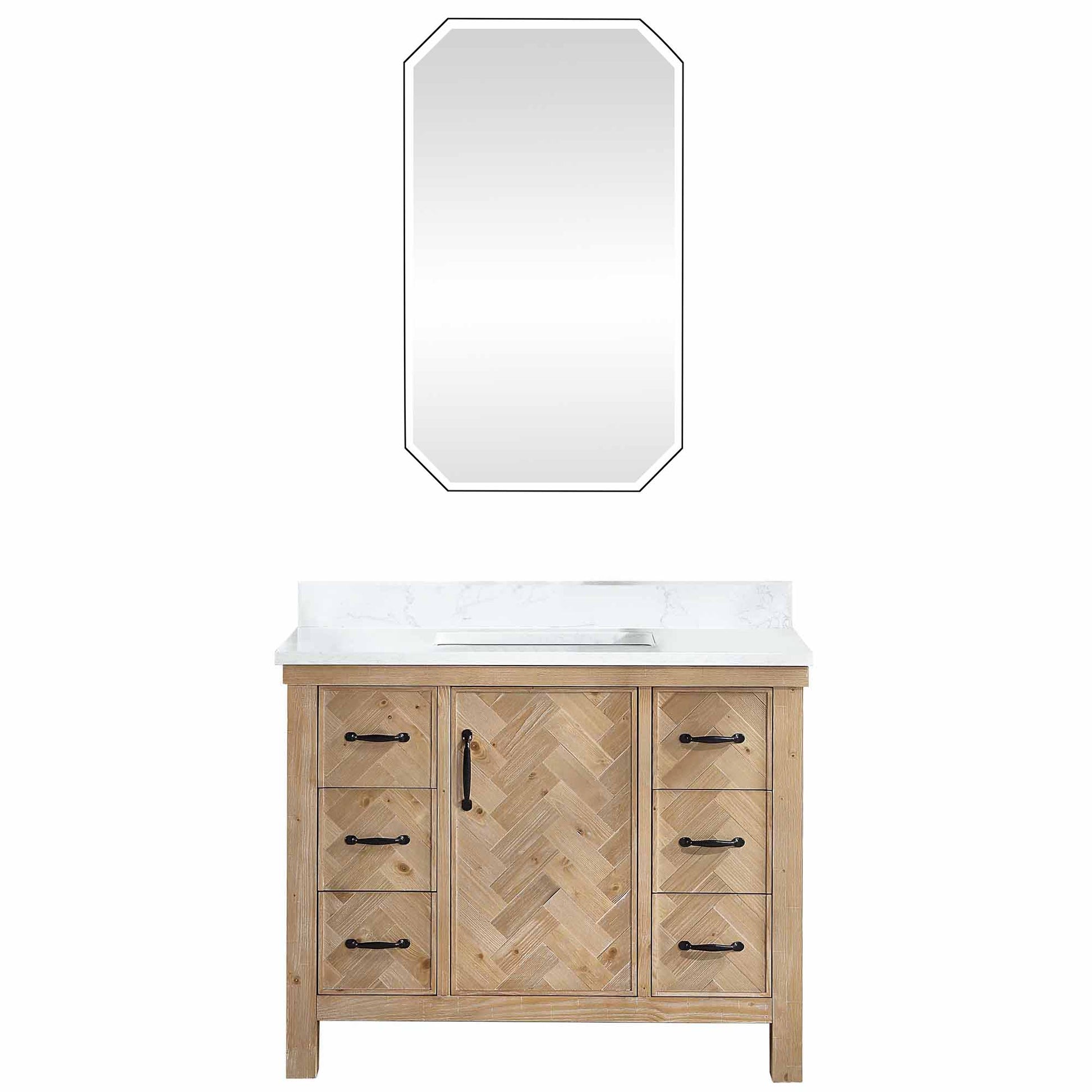 Vinnova, Javier 42" Free-standing Single Bath Vanity in Spruce Antique Brown with White Grain Composite Stone Top and Mirror