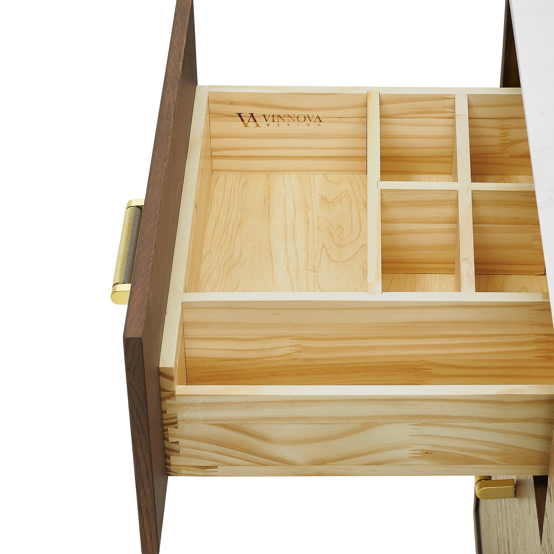 Vinnova, Cristo 48" Floating Single Bath Vanity in Aged Dark Brown Oak with Fish Maw White Quartz Stone Top and Mirror