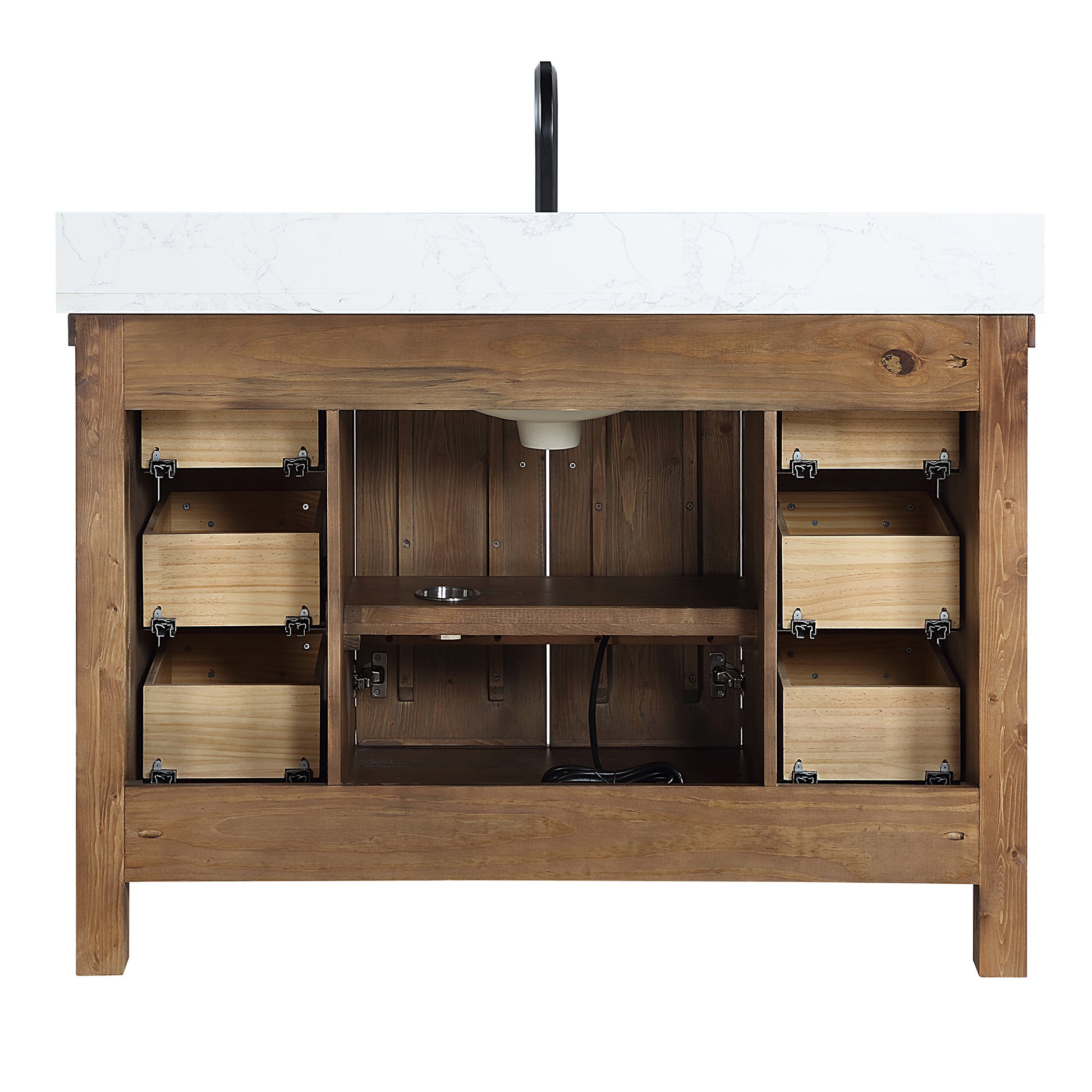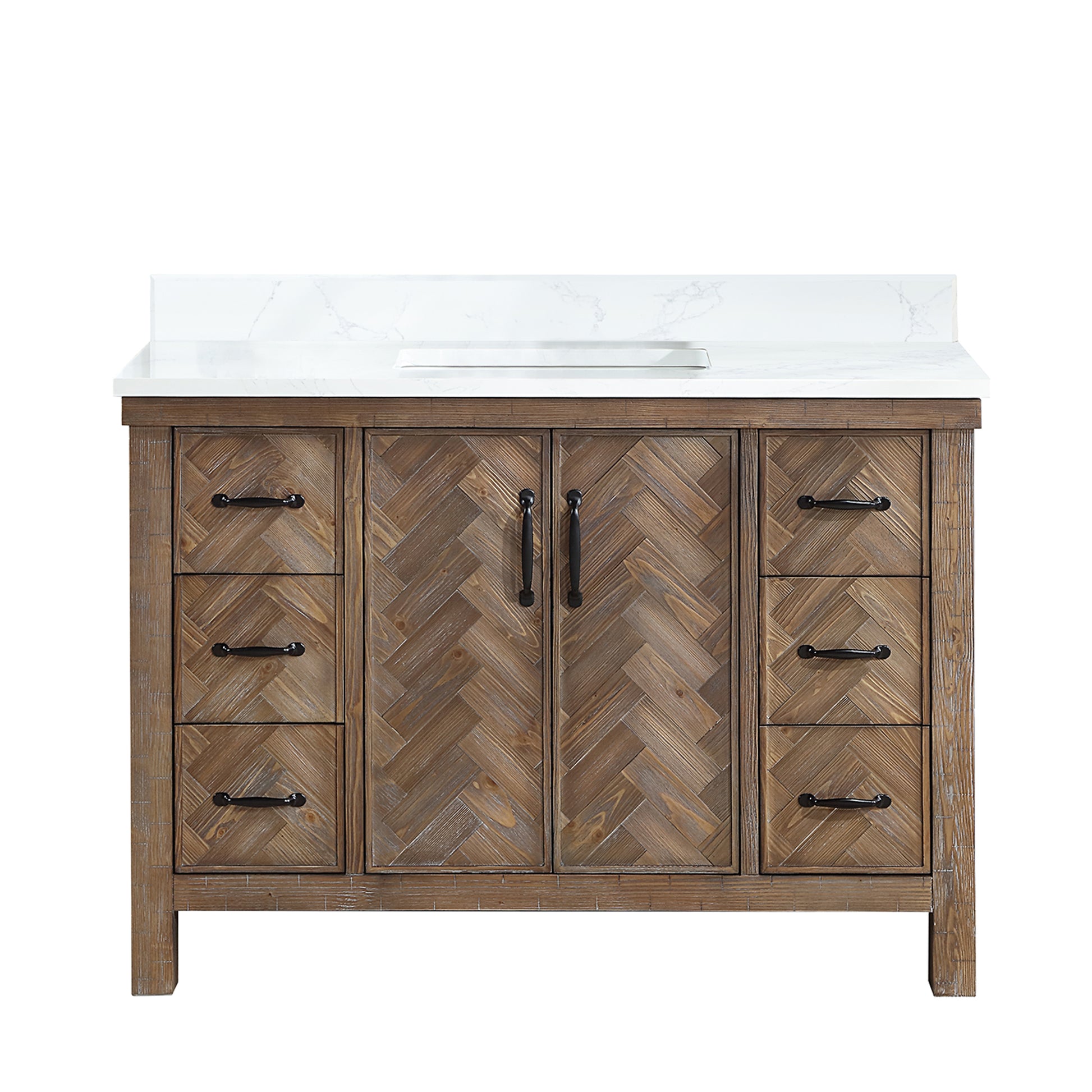 Vinnova, Javier 48" Free-standing Single Bath Vanity in Spruce Antique Gray with White Grain Composite Stone Top