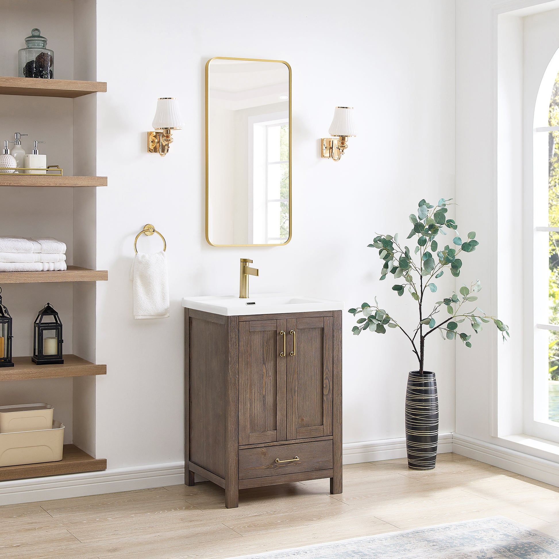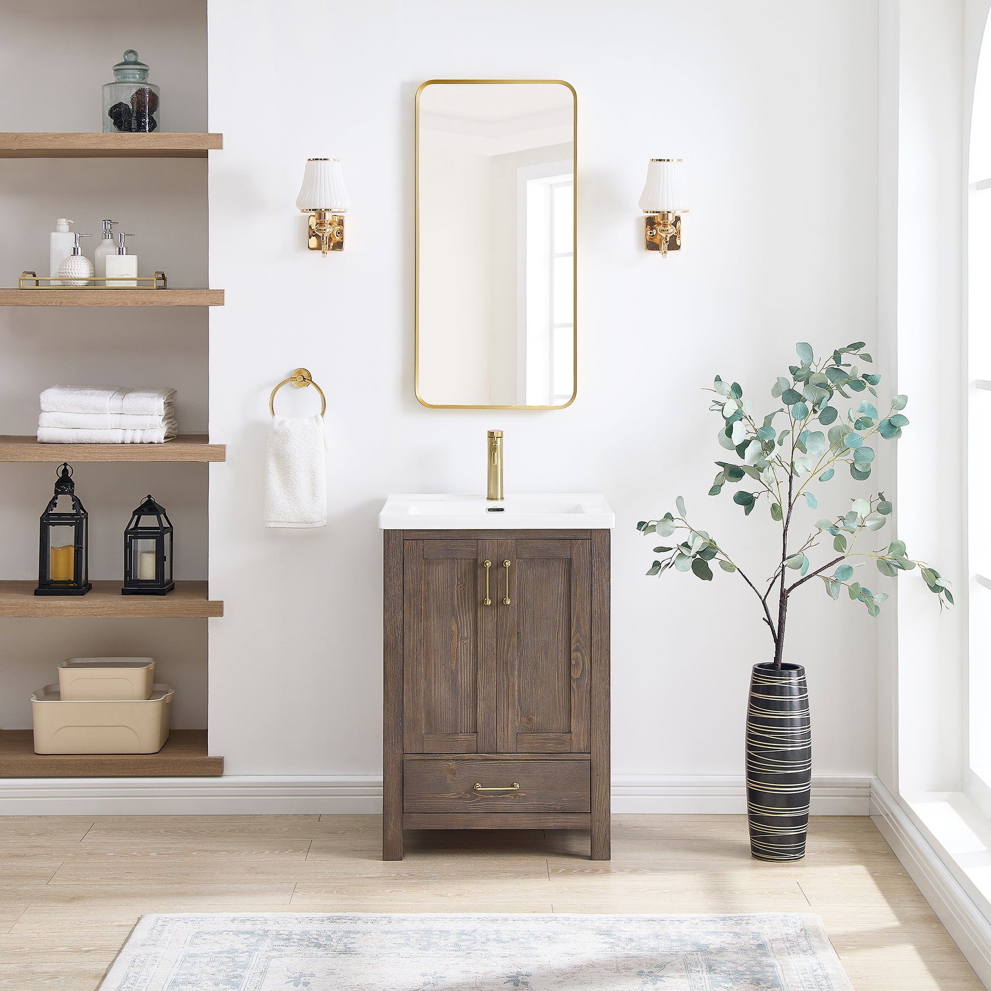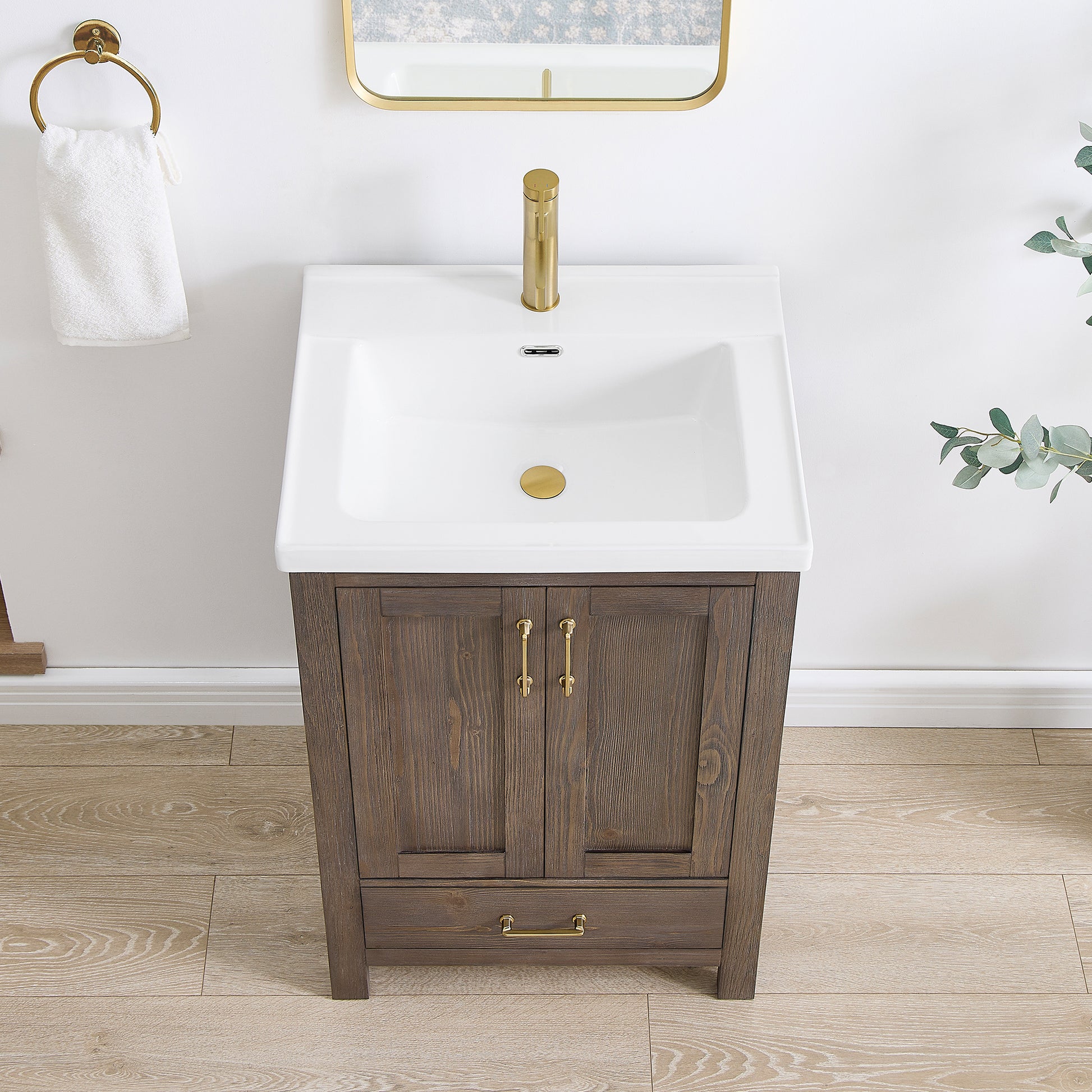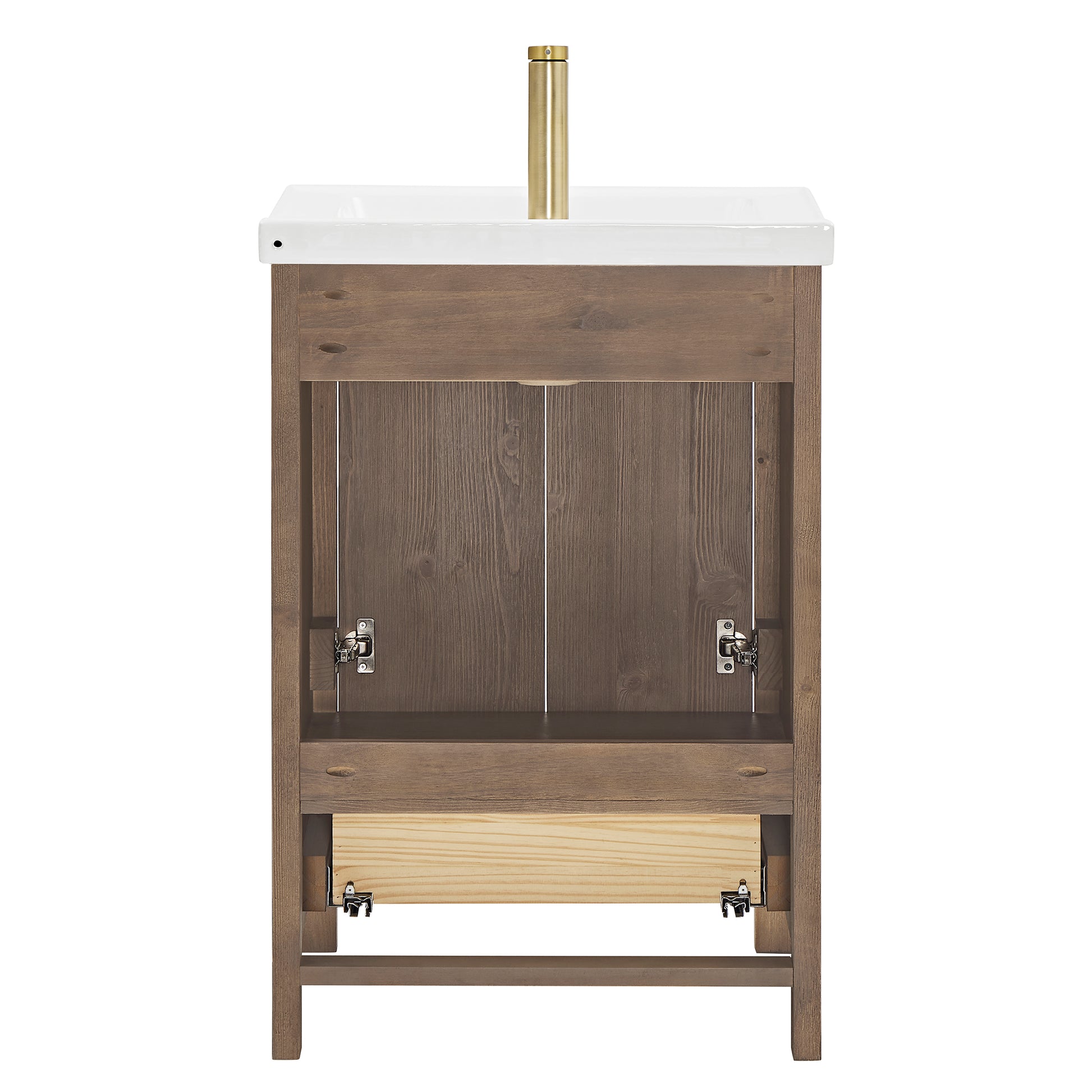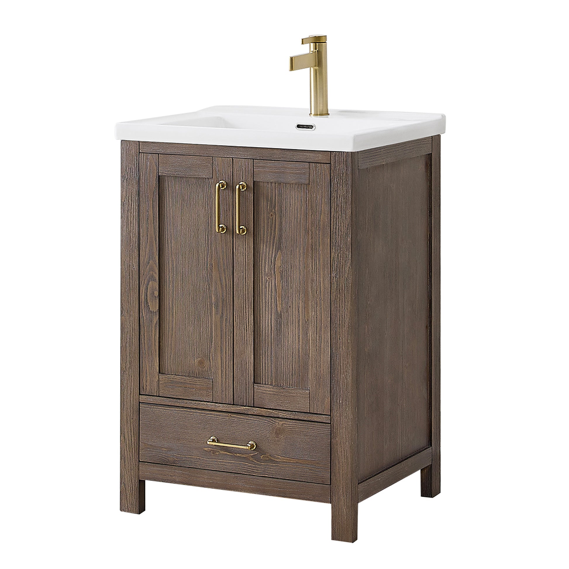 Upgrade Your Bathroom with the Gela 24 Single Sink Bath Vanity in Spruce Vintage Brown with Drop-In White Ceramic Basin
