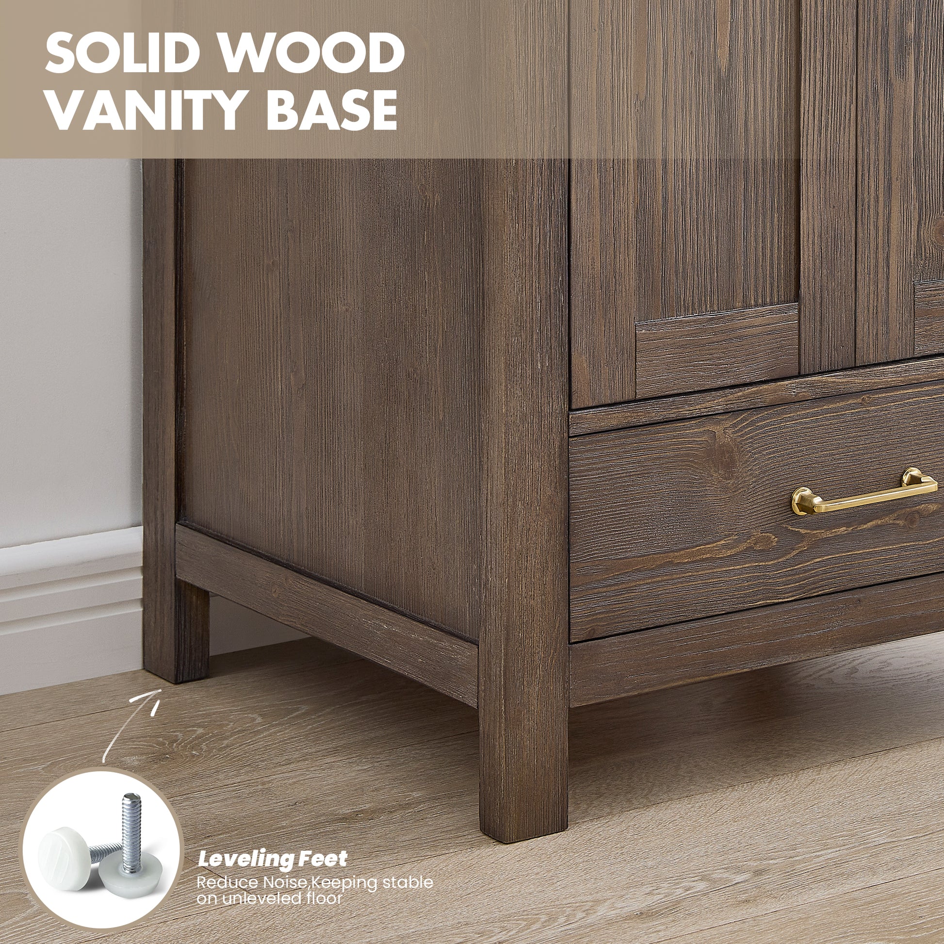 Vinnova, Gela 24" Single Sink Bath Vanity in Spruce Vintage Brown with Drop-In White Ceramic Basin