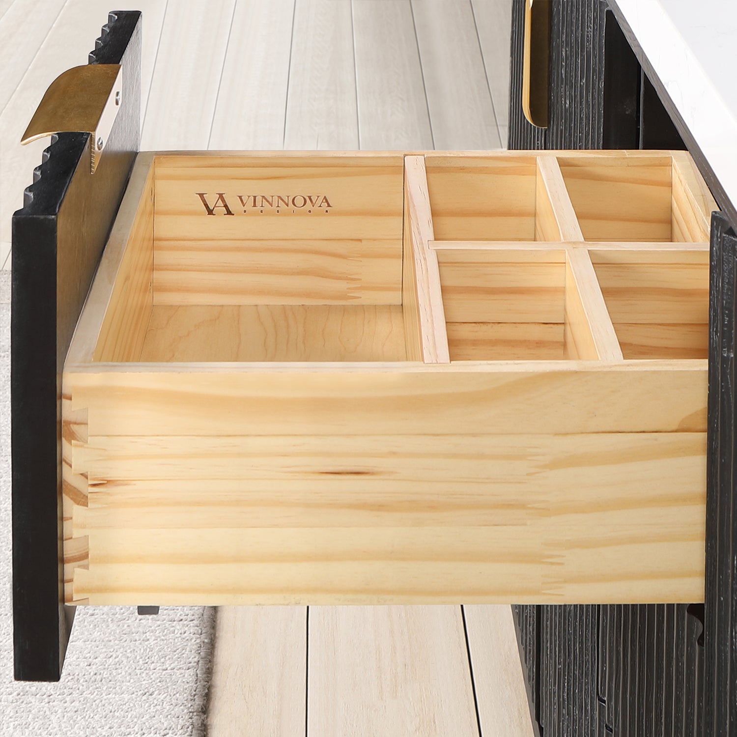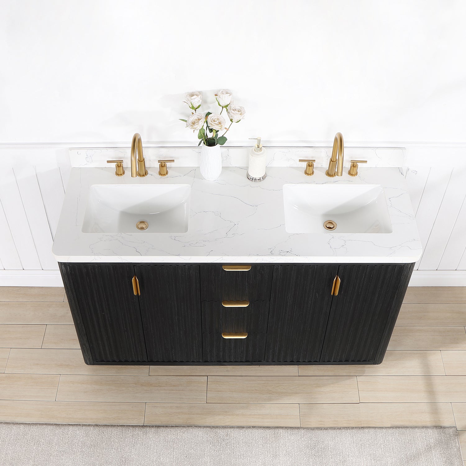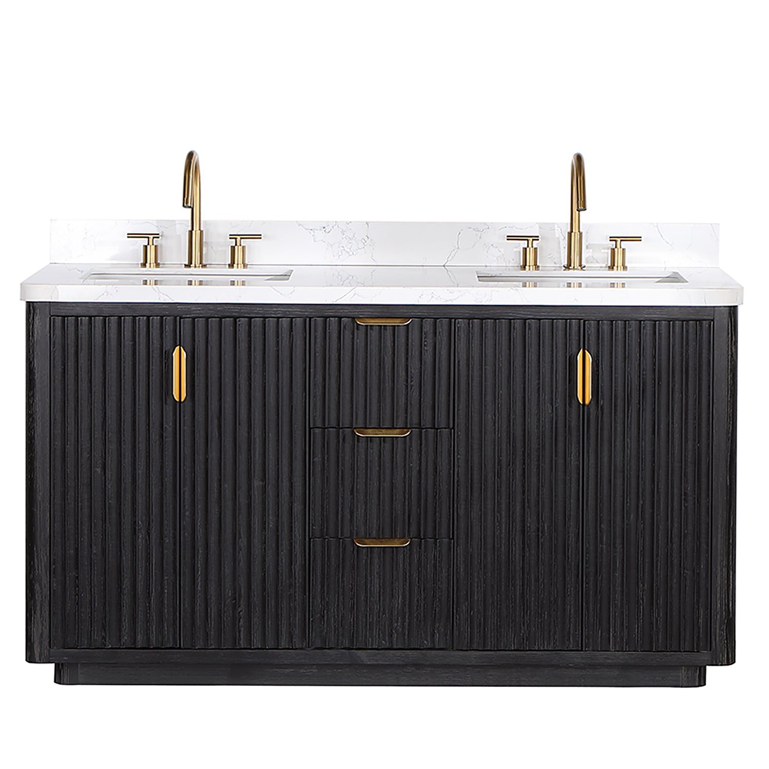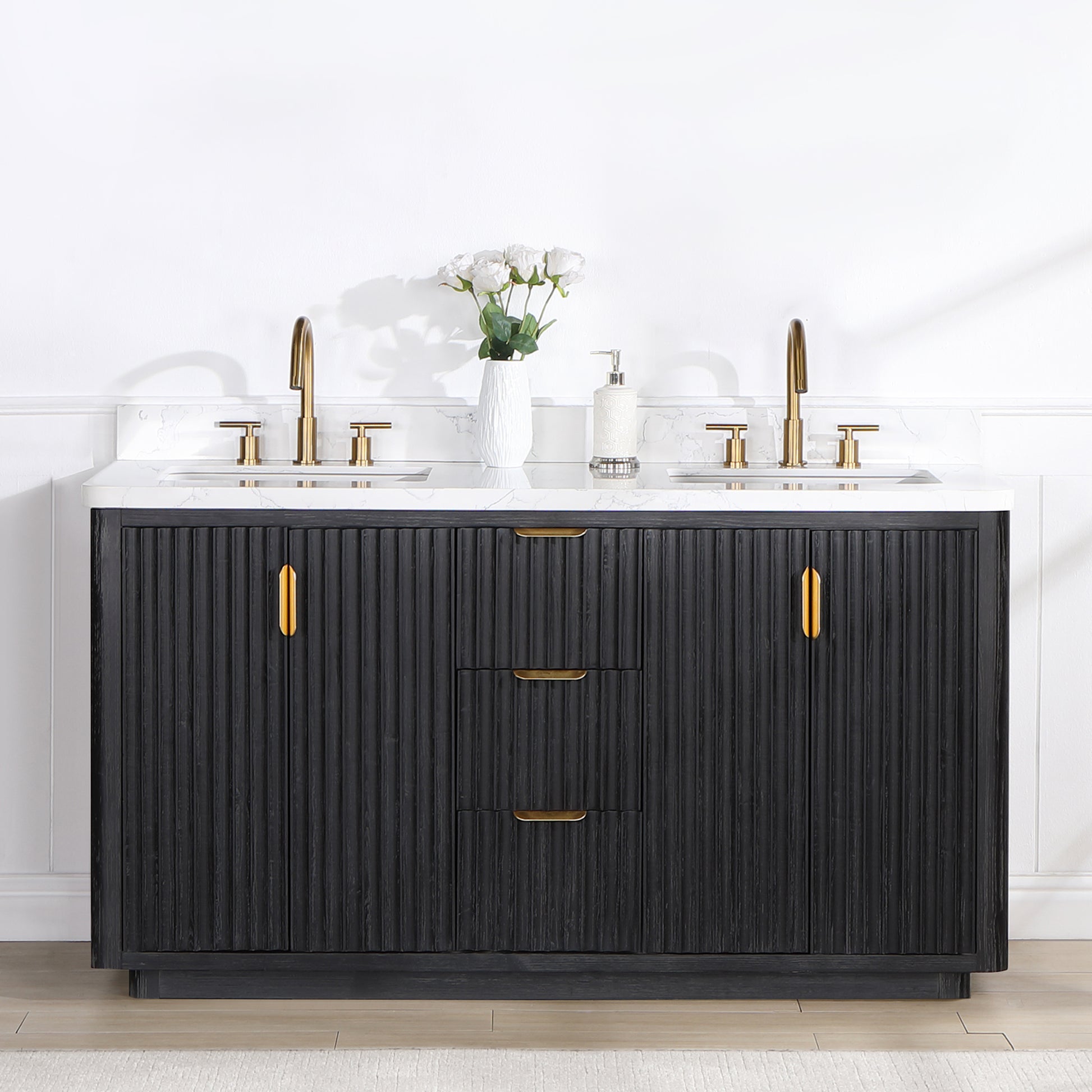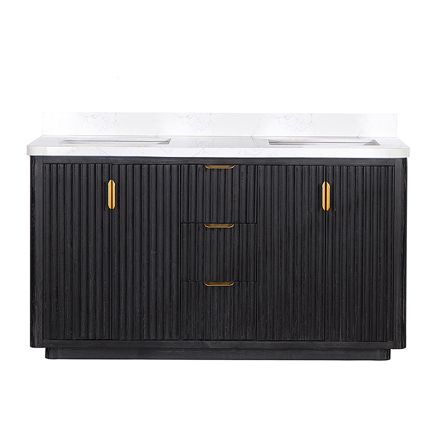 Vinnova, Cádiz 60in. Free-standing Double Bathroom Vanity in Fir Wood Black with Composite top in Lightning White