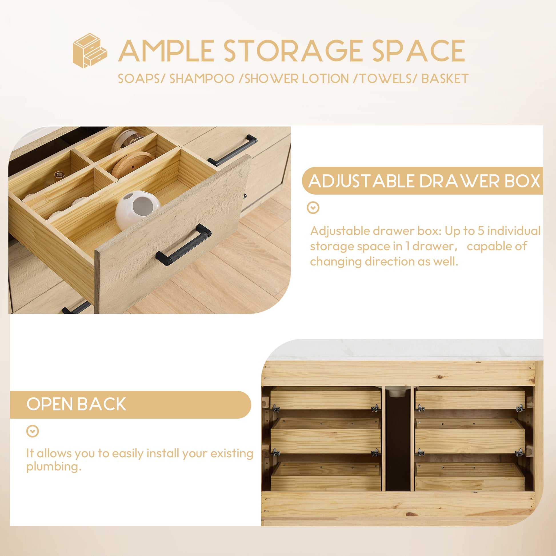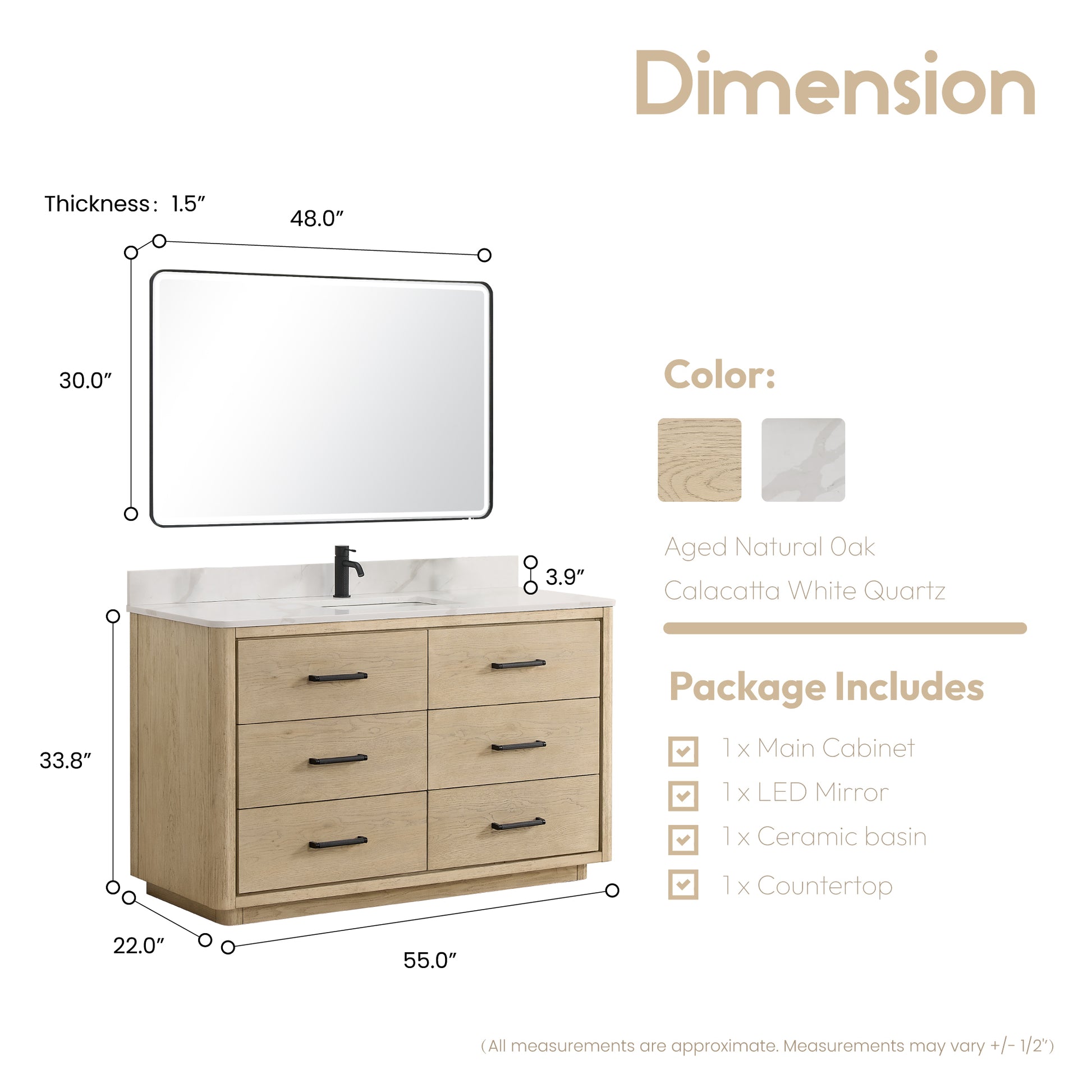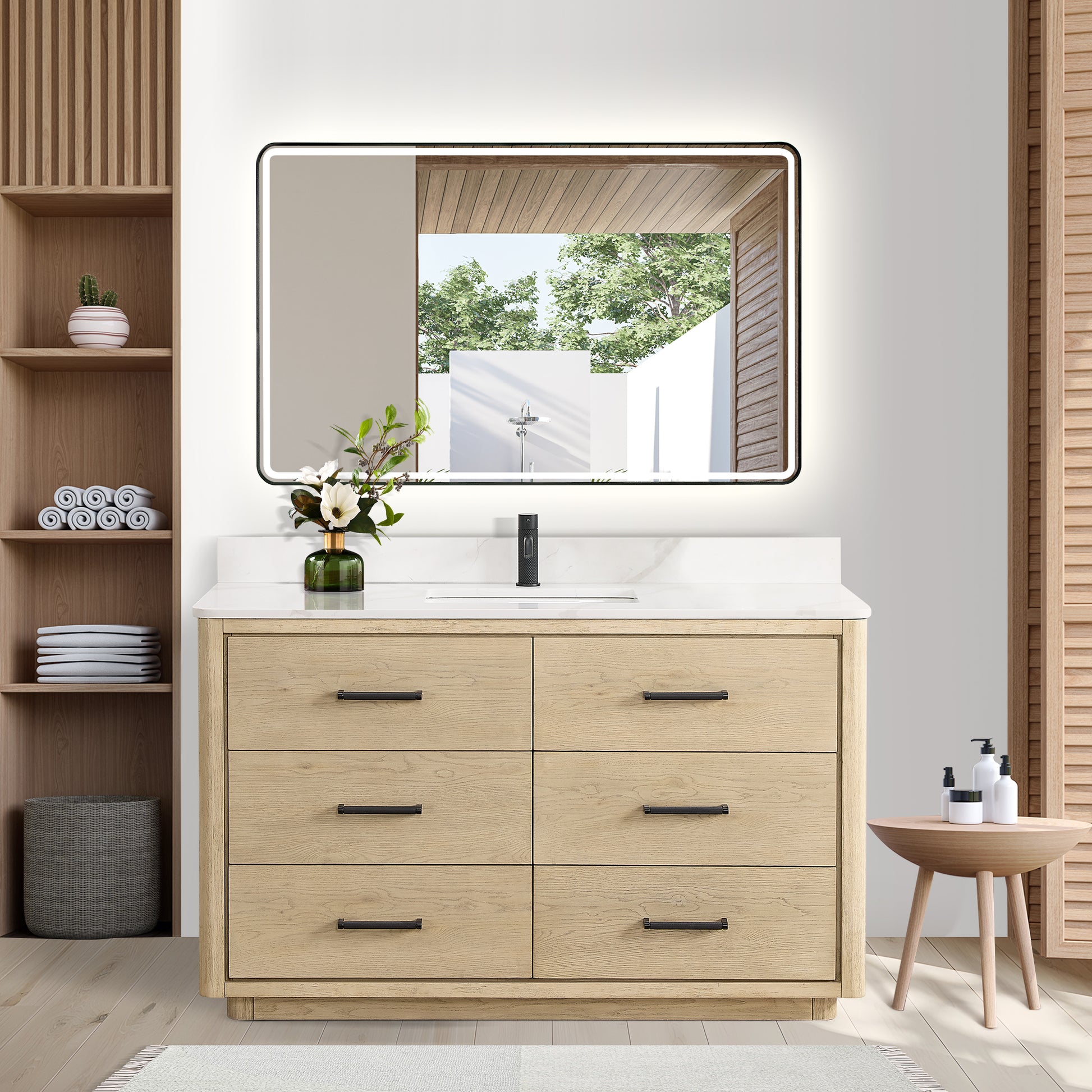 - Aged Natural Oak finish adds a touch of warmth and sophistication to your bathroom