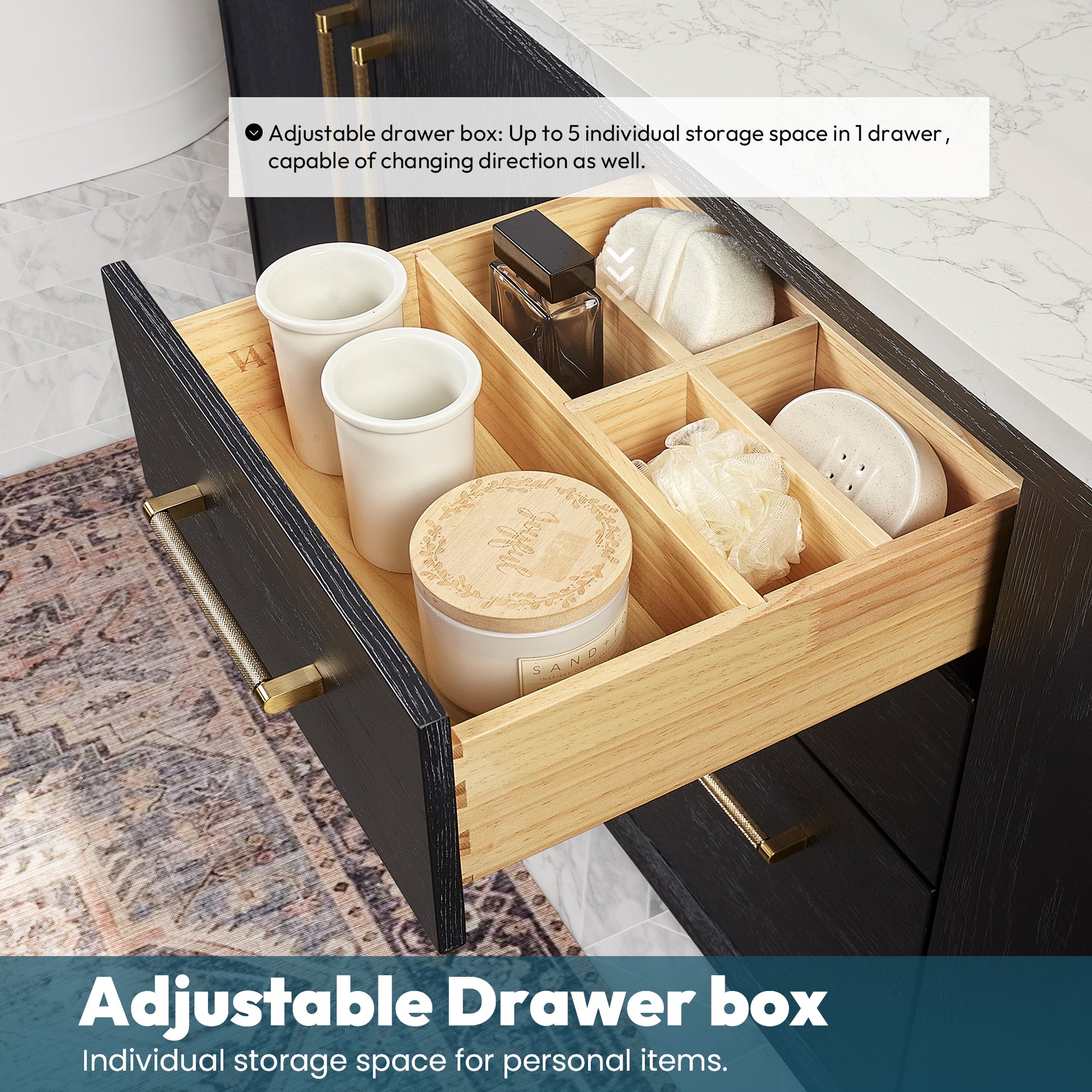 Introducing the Luxurious "Gara 72" Double Bath Vanity: Elevate your bathroom with this stunning free-standing double vanity in fir wood black with a white grain composite stone top.