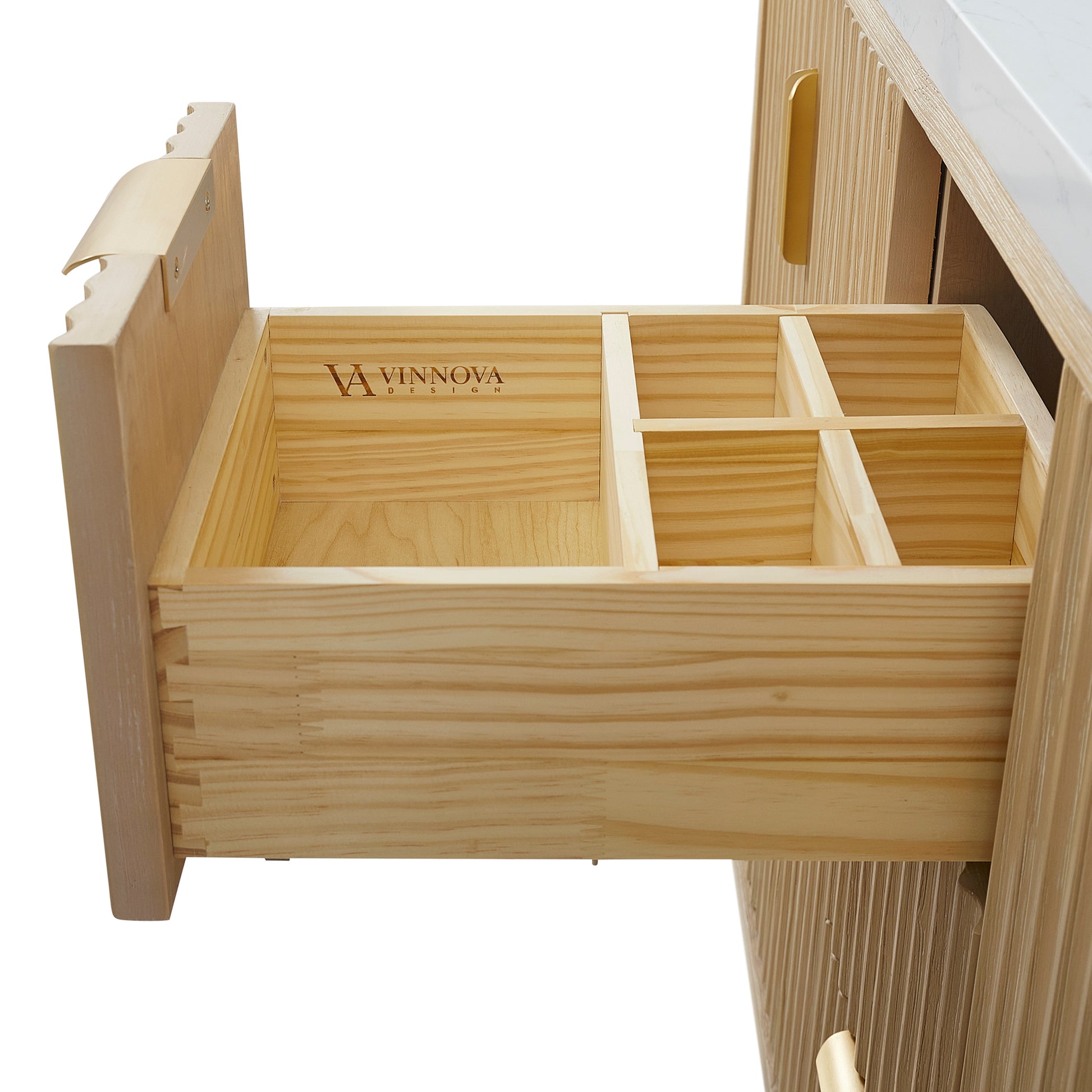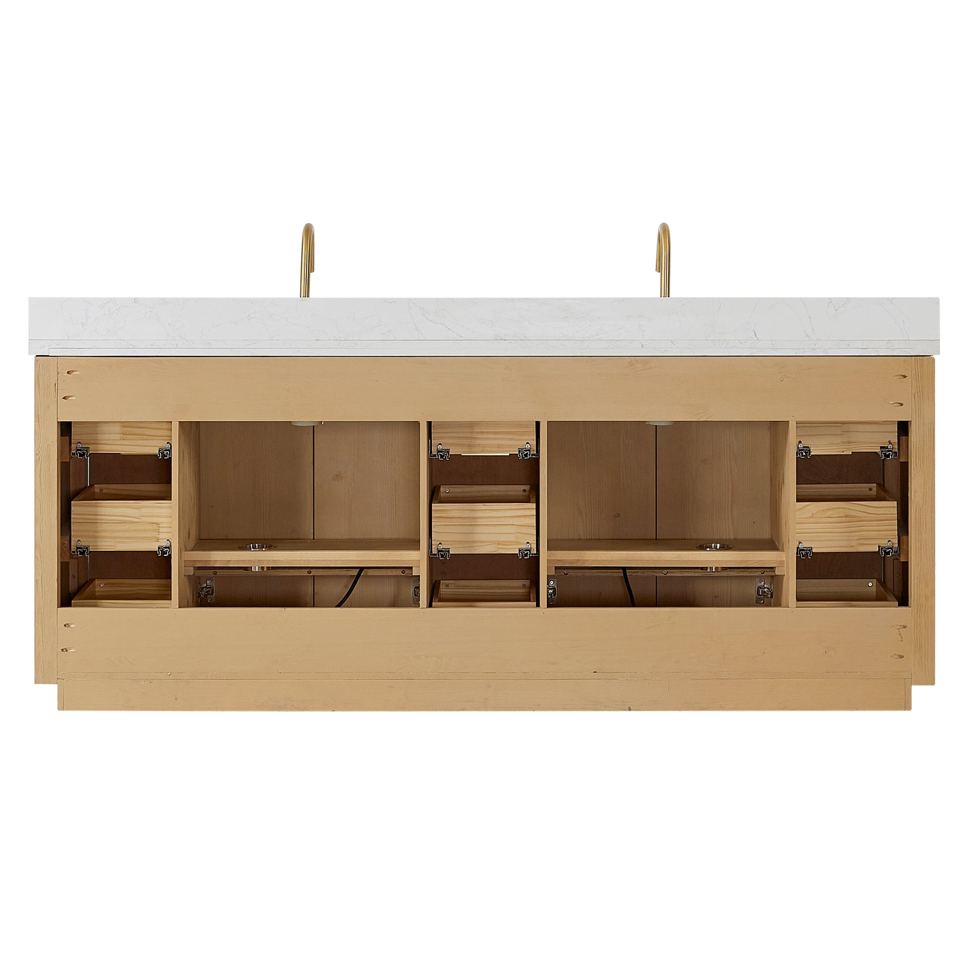 Vinnova, Cádiz 84in. Free-standing Double Bathroom Vanity in Washed Ash Grey with Composite top in Lightning White