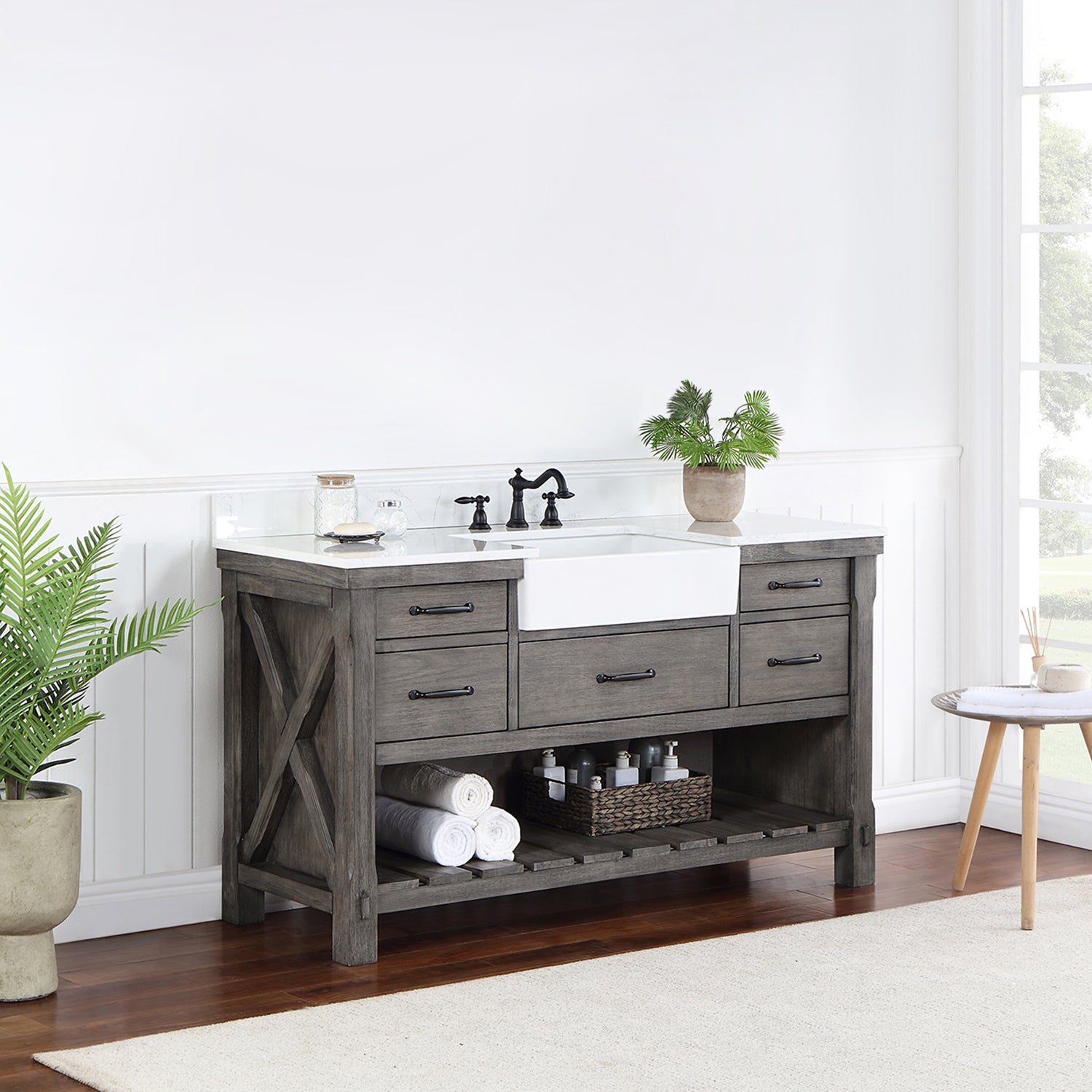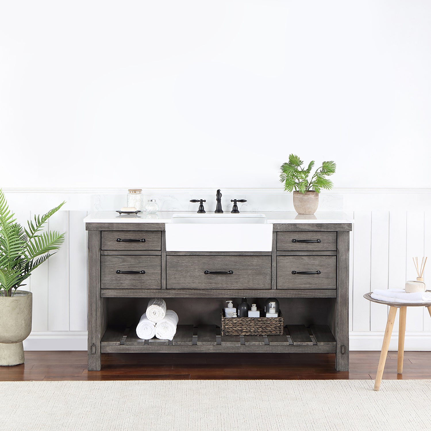Introducing the Stunning Villareal 60" Single Bath Vanity in Classical Grey with Composite Stone Top in White, White Farmhouse Basin