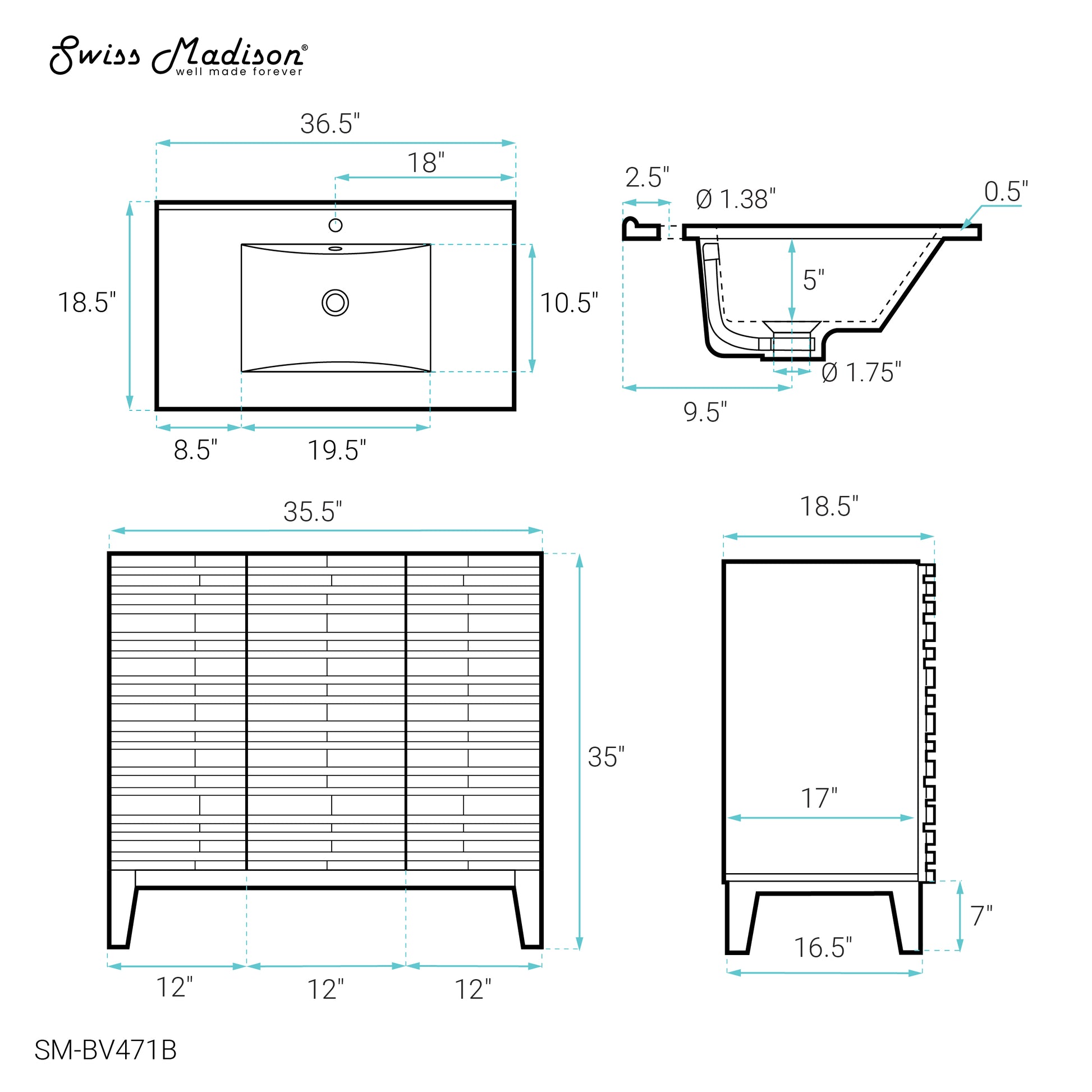 Swiss Madison, Cascade 36" Bathroom Vanity in Black