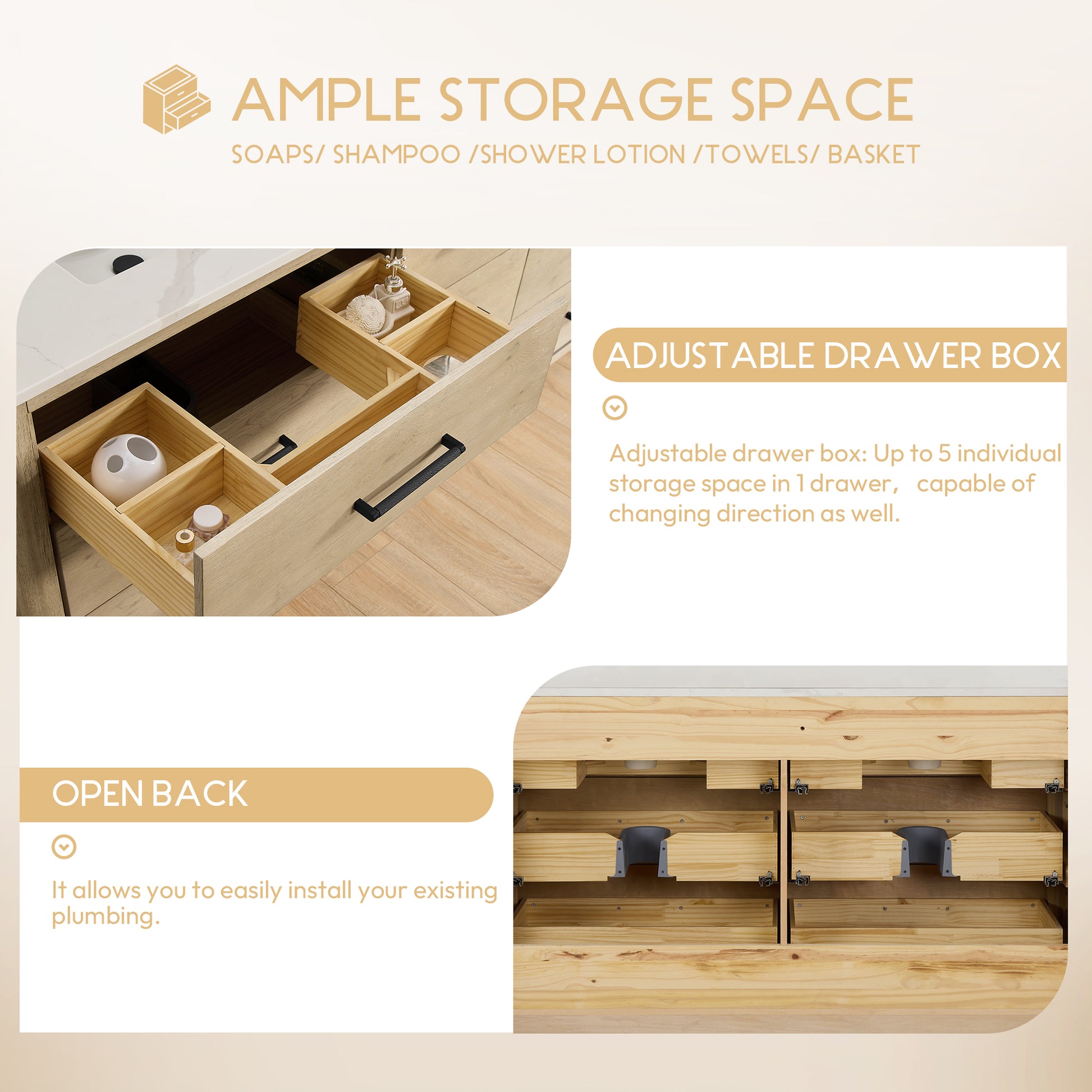 - Aged Natural Oak finish adds a rustic yet modern touch to your bathroom