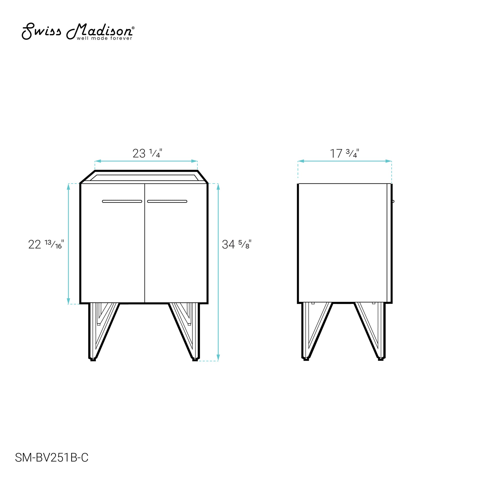Elevate your bathroom design with the Swiss Madison Annecy 24 Phantom Black Bathroom Vanity Cabinet (SM-BV251B). This stunning piece combines classic artistry with modern functionality, allowing you to create a customized look that suits your style. With a sleek black finish, this cabinet-only vanity is the perfect starting point for your dream bathroom. Pair it with a vanity top of your choice to complete the look. Upgrade your space with the Annecy collection and transform your bathroom into a luxurious retreat.