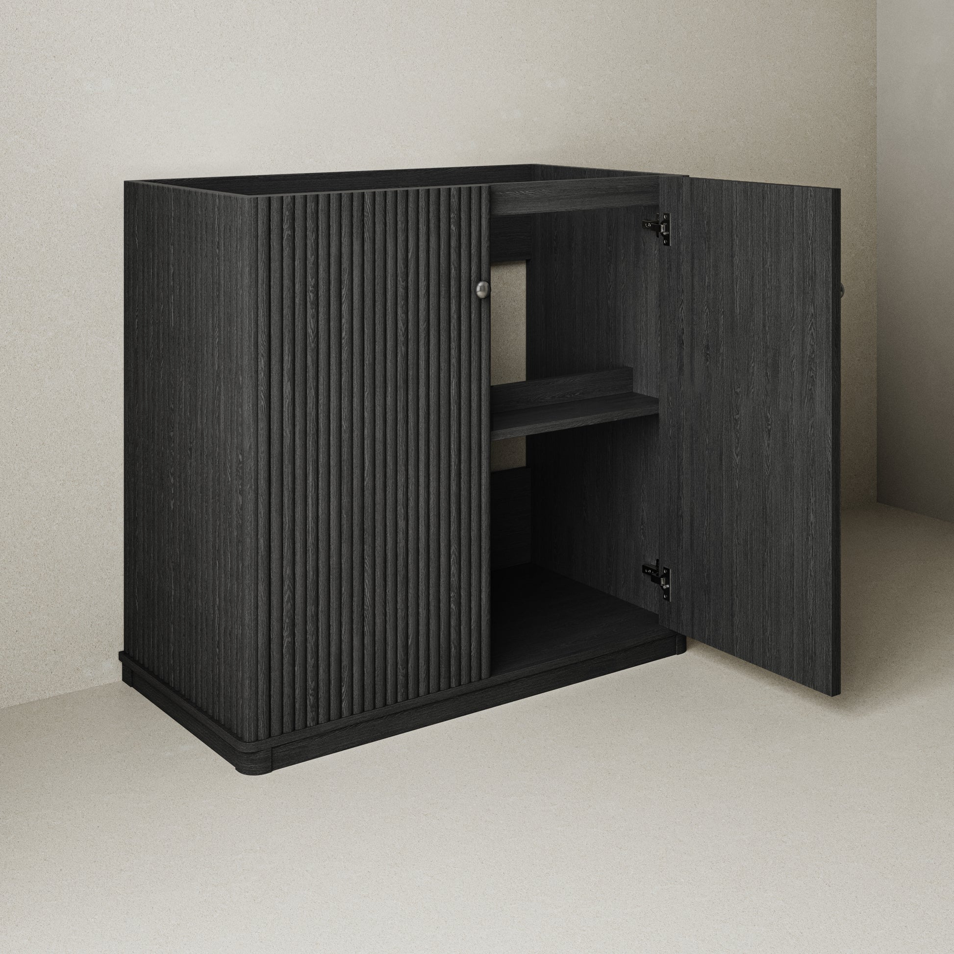 Transform your bathroom into a luxurious oasis with the Swiss Madison, Lafayette 36" Freestanding Bathroom Vanity Cabinet without Top in Black Oak. Part of the Lafayette collection, this timeless piece combines elegance with innovative design. Customize your vanity top to perfectly match your design vision and create a truly unique space. Elevate your home with this stunning black oak cabinet.