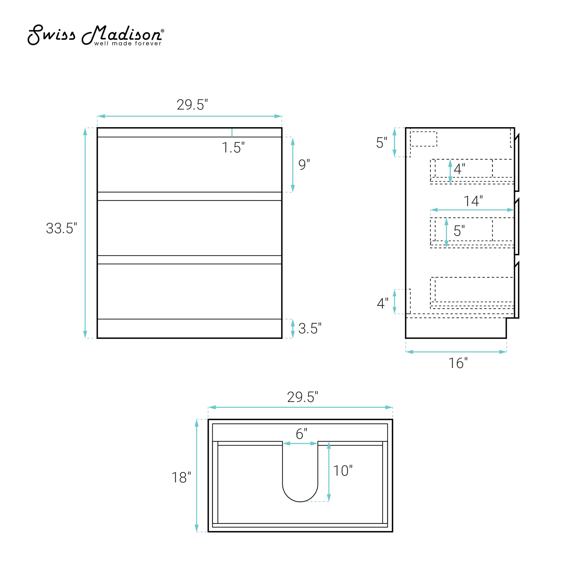 Swiss Madison, Liberte 30" Freestanding Bathroom Vanity Cabinet without Top in Natural Oak