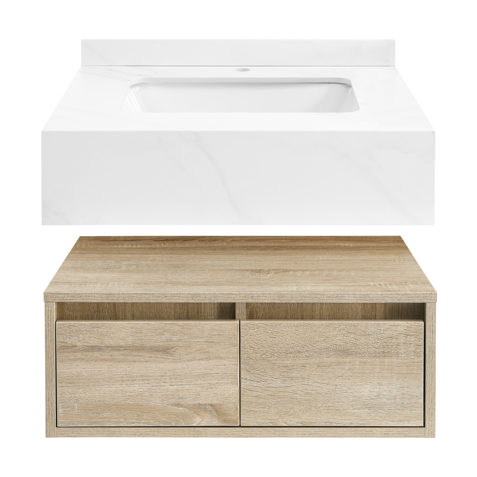 - Sink Material: Engineered composite or durable vanity material