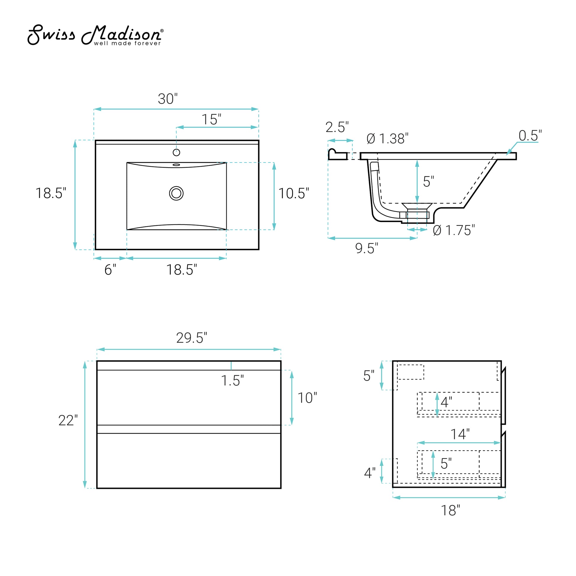 What are the dimensions of the Swiss Madison Liberte 30" vanity?