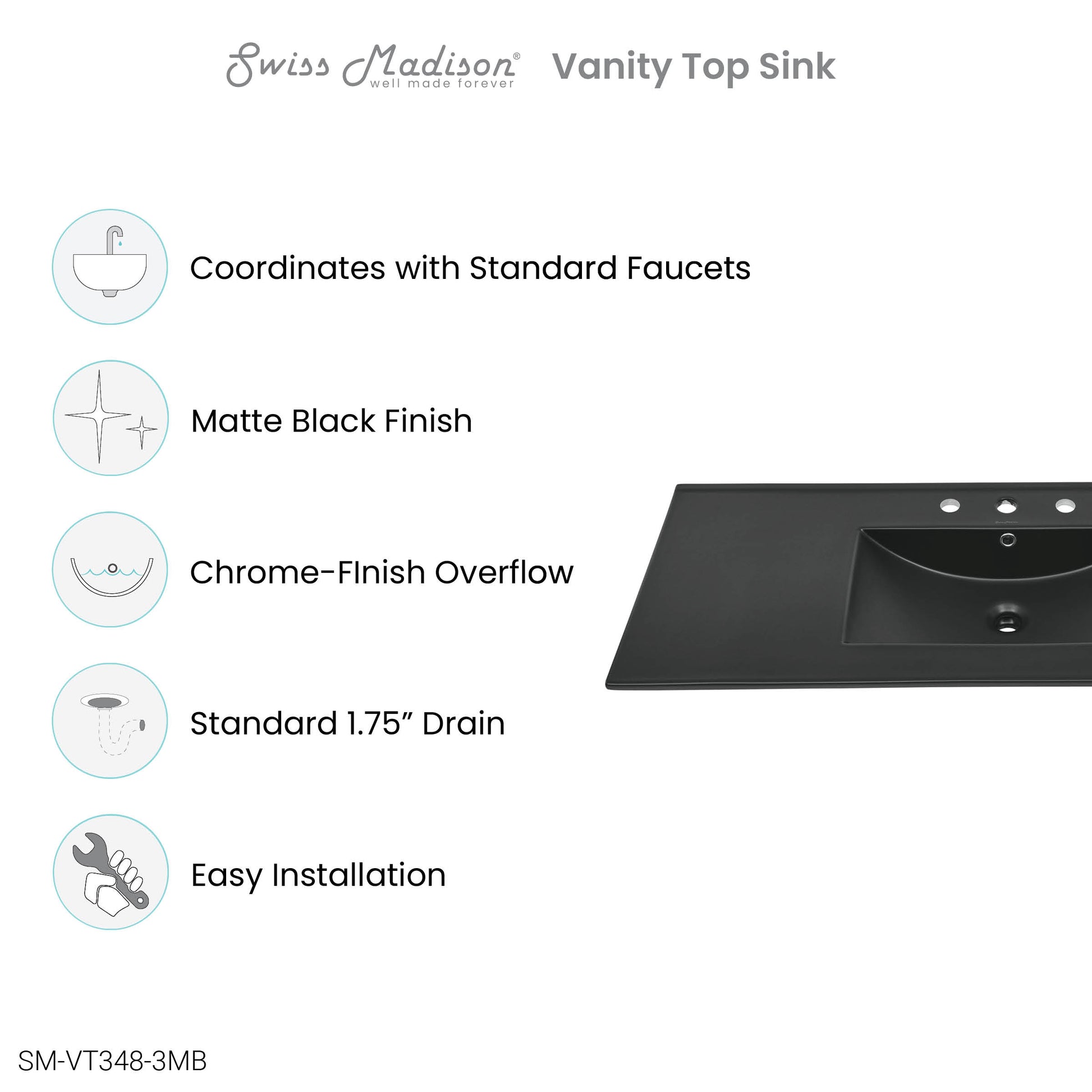 For homeowners and designers seeking a modern bathroom upgrade, the Swiss Madison 48" 3-Hole Widespread Vanity Sink Top in Matte Black delivers a sleek, contemporary aesthetic paired with effortless daily function, transforming your space with European-inspired style.