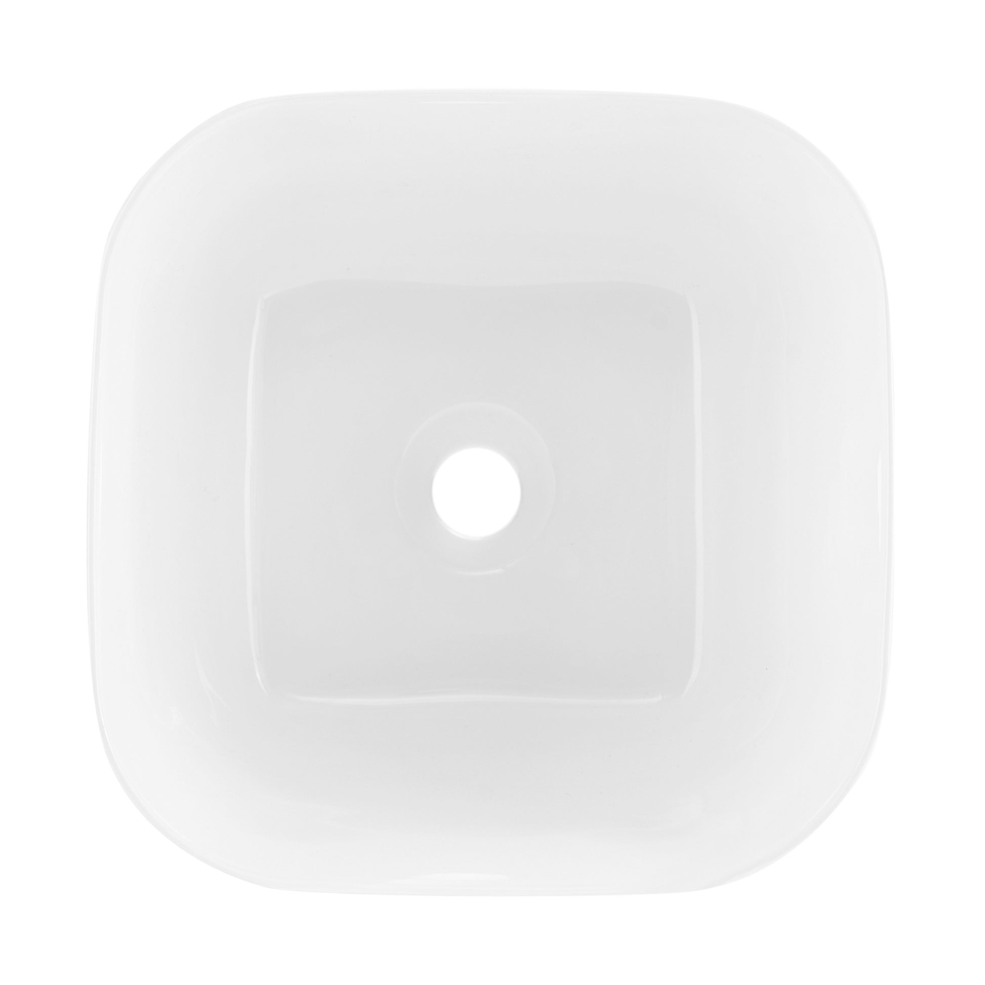 The Swiss Madison Carre vessel sink features a glossy white finish, designed to provide a bright, luxurious aesthetic that complements any modern bathroom decor.